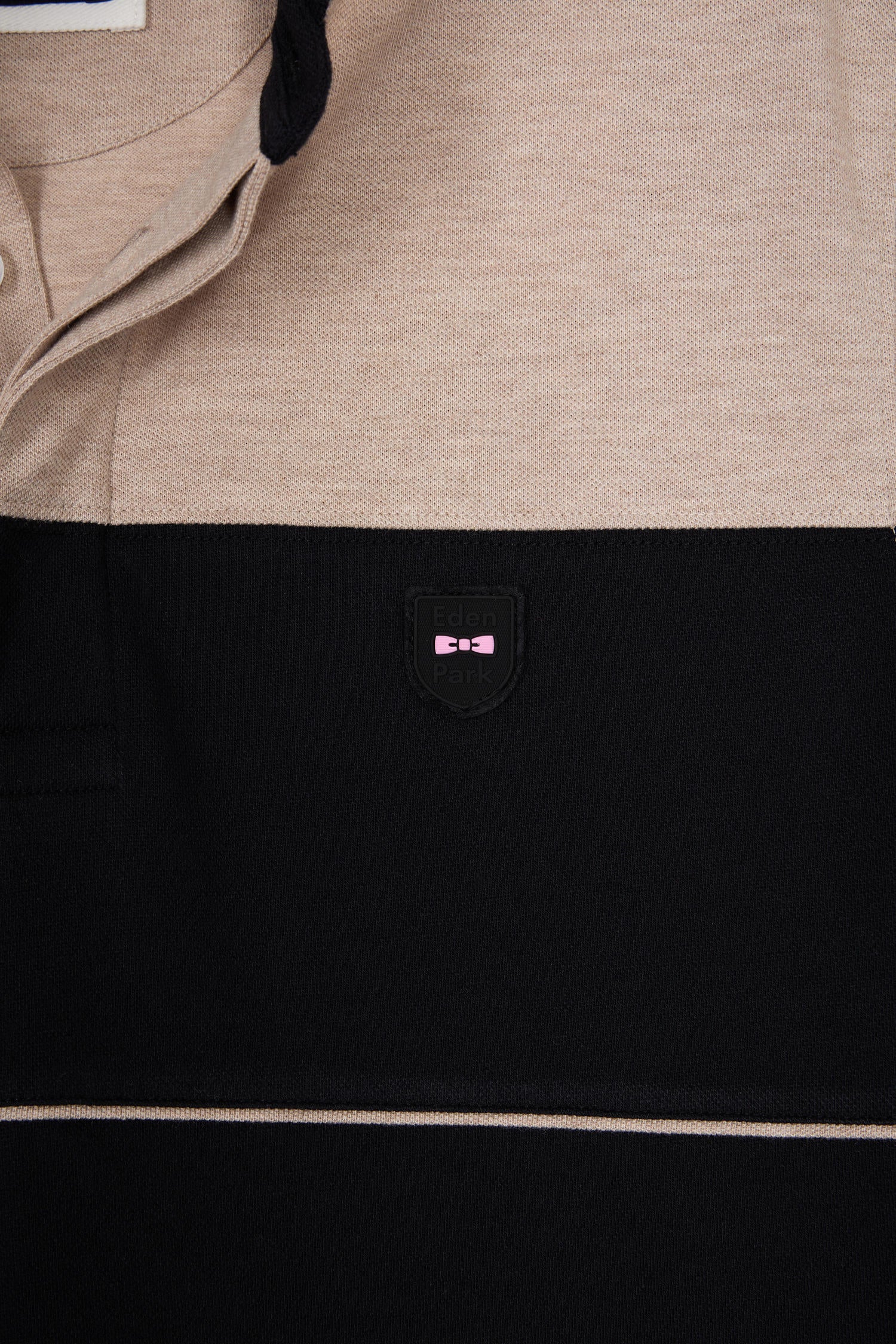 Polo bicolore manches courtes en piqué coton stretch noir coupe slim