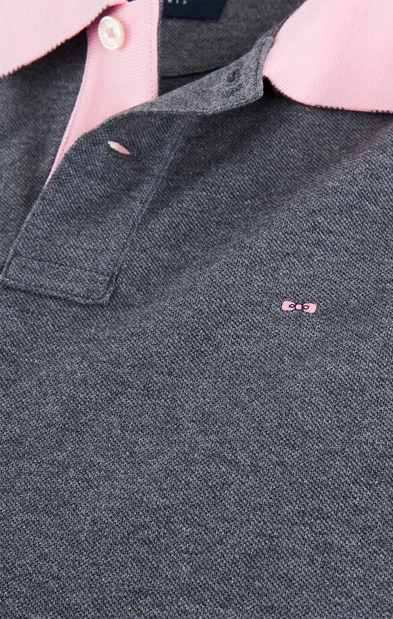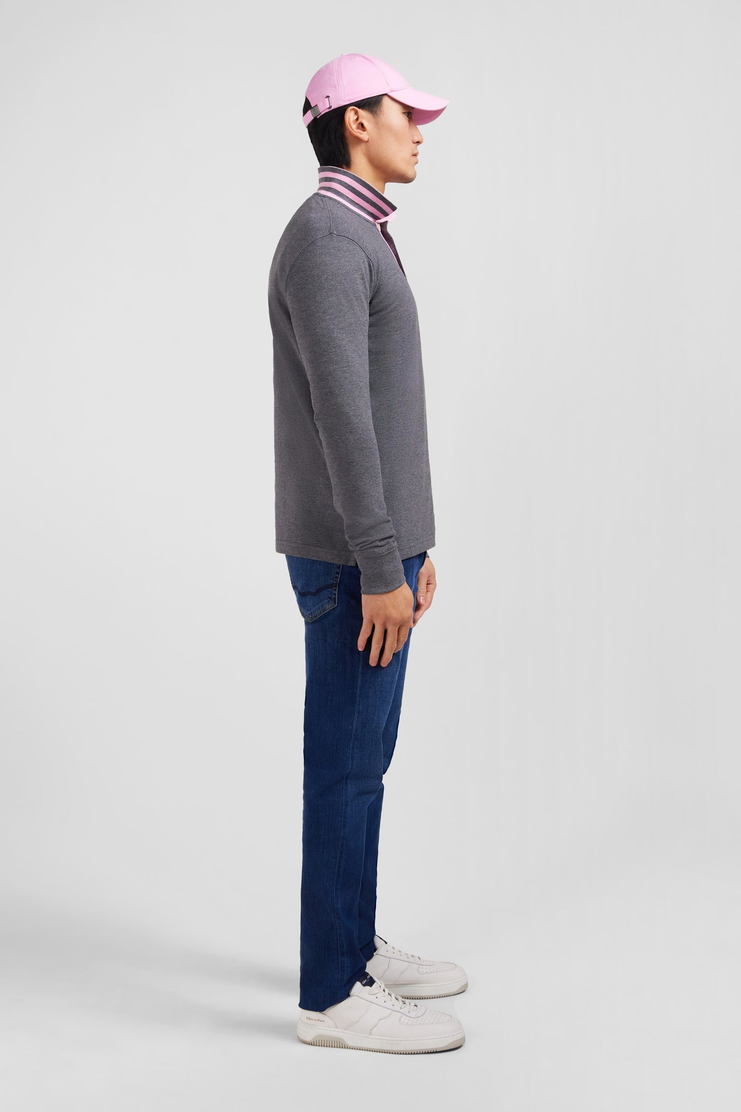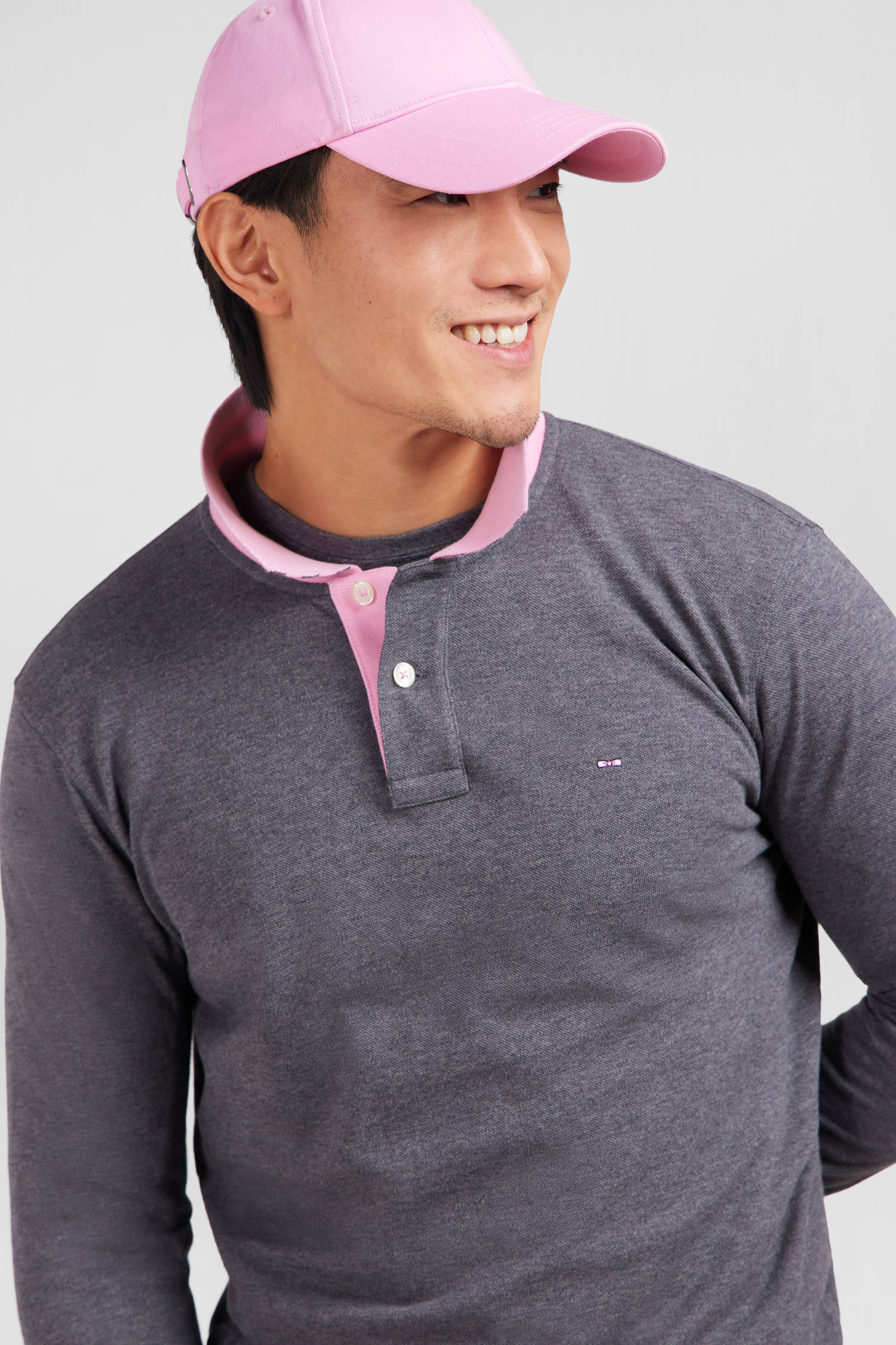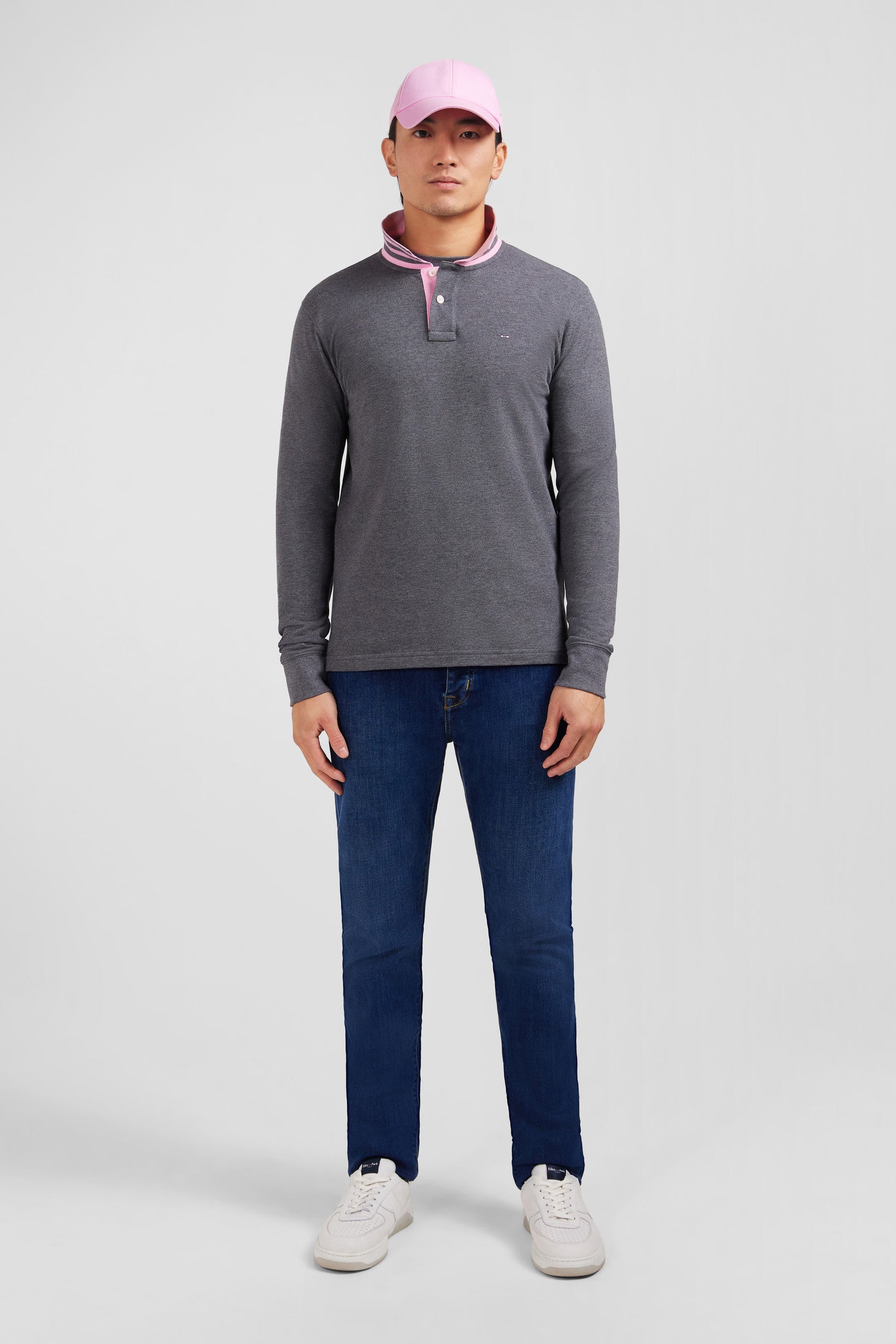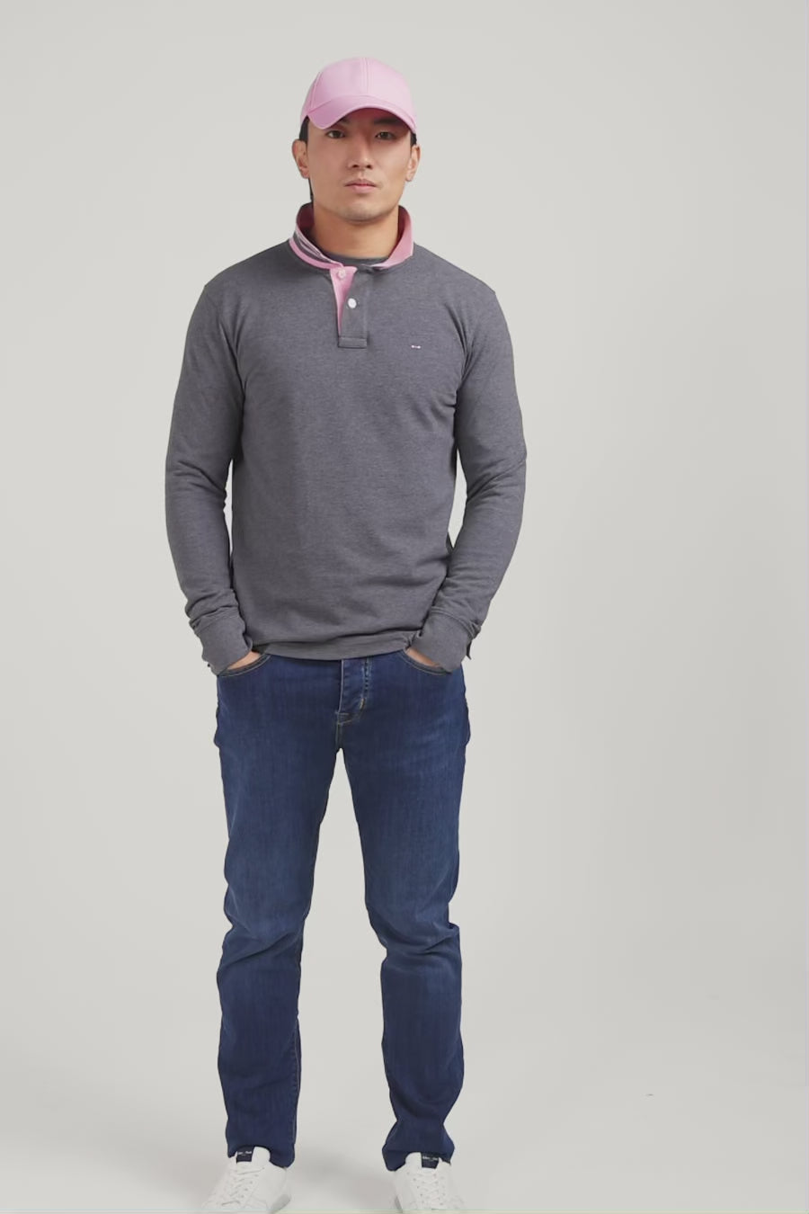 Polo manches longues gris en coton avec col contrasté