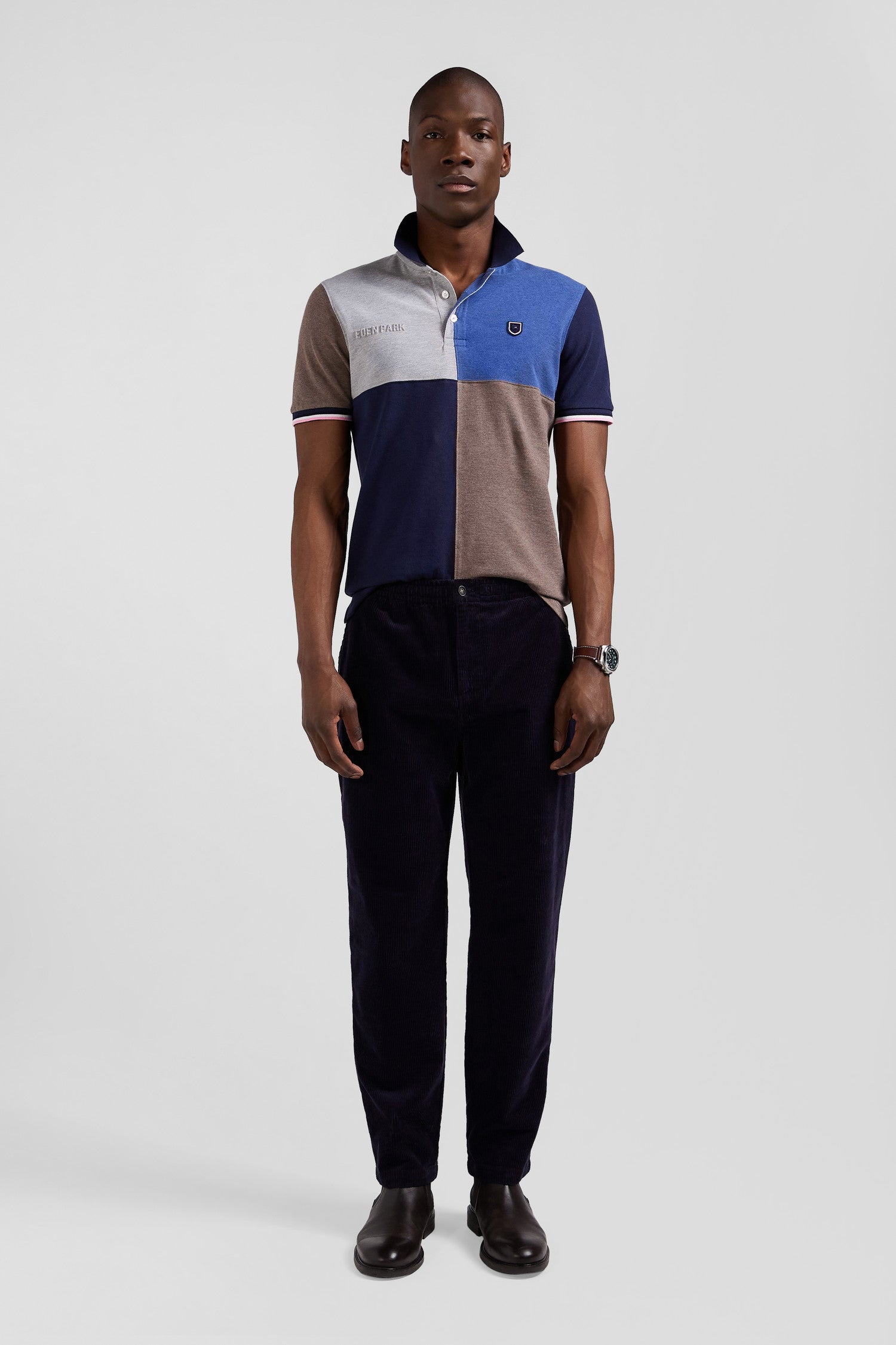 Notre polo coupé-cousu à manches courtes, où quatre coloris se marient en un jeu de cadrans sophistiqué, est une pièce forte du vestiaire masculin. Disponible en bleu clair et bleu foncé chiné, ce polo homme en piqué coton confortable offre une touche dynamique et moderne à votre silhouette. Conçu pour ceux qui désirent allier caractère et confort, ce polo est parfait pour un look à la fois décontracté et distinctif.