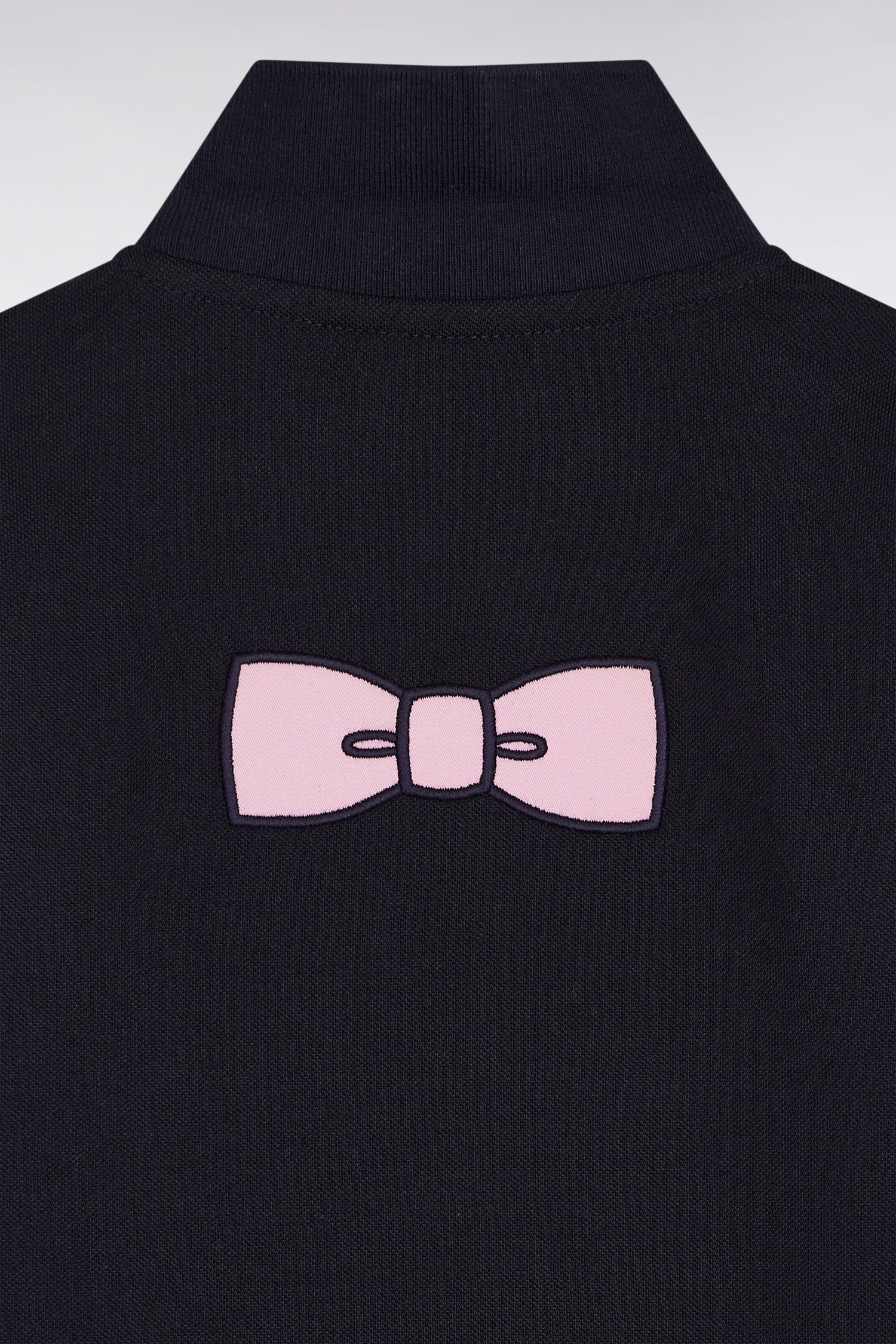 Polo manches courtes en coton marine broderie nœud papillon coupe droite