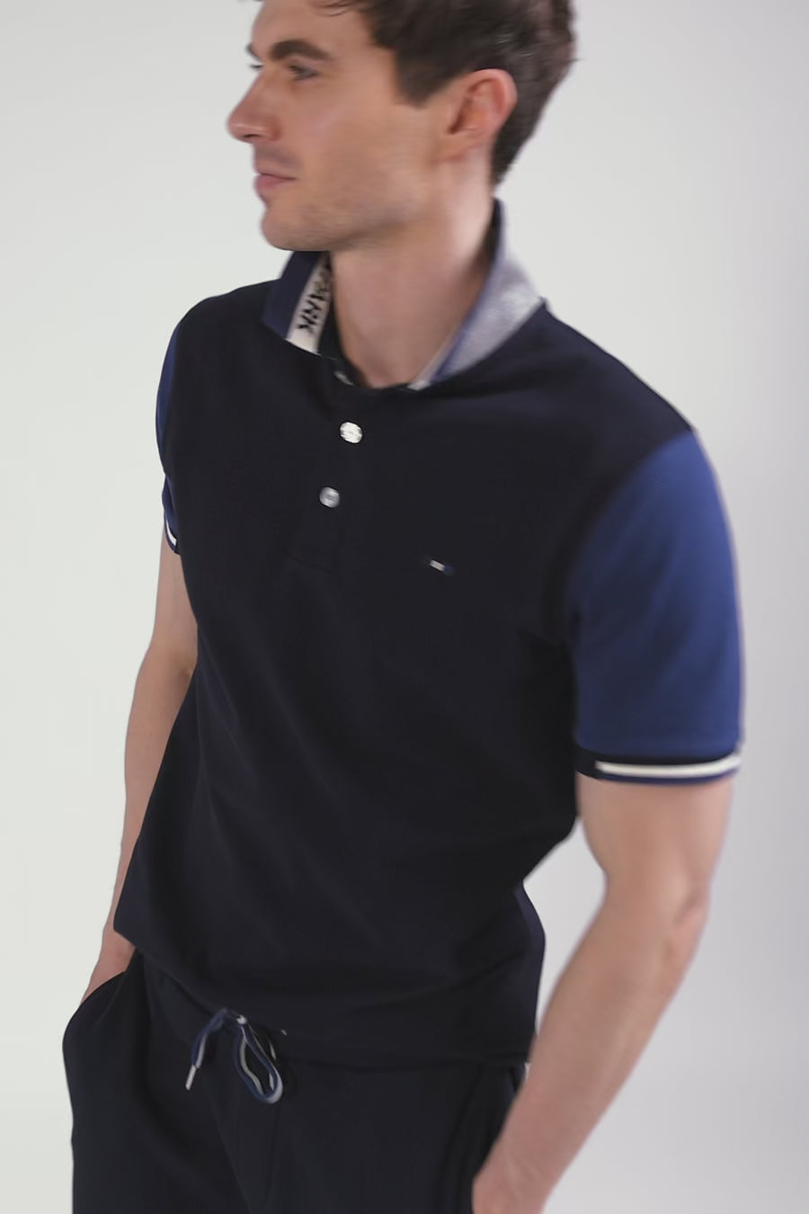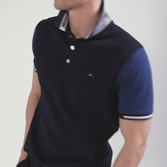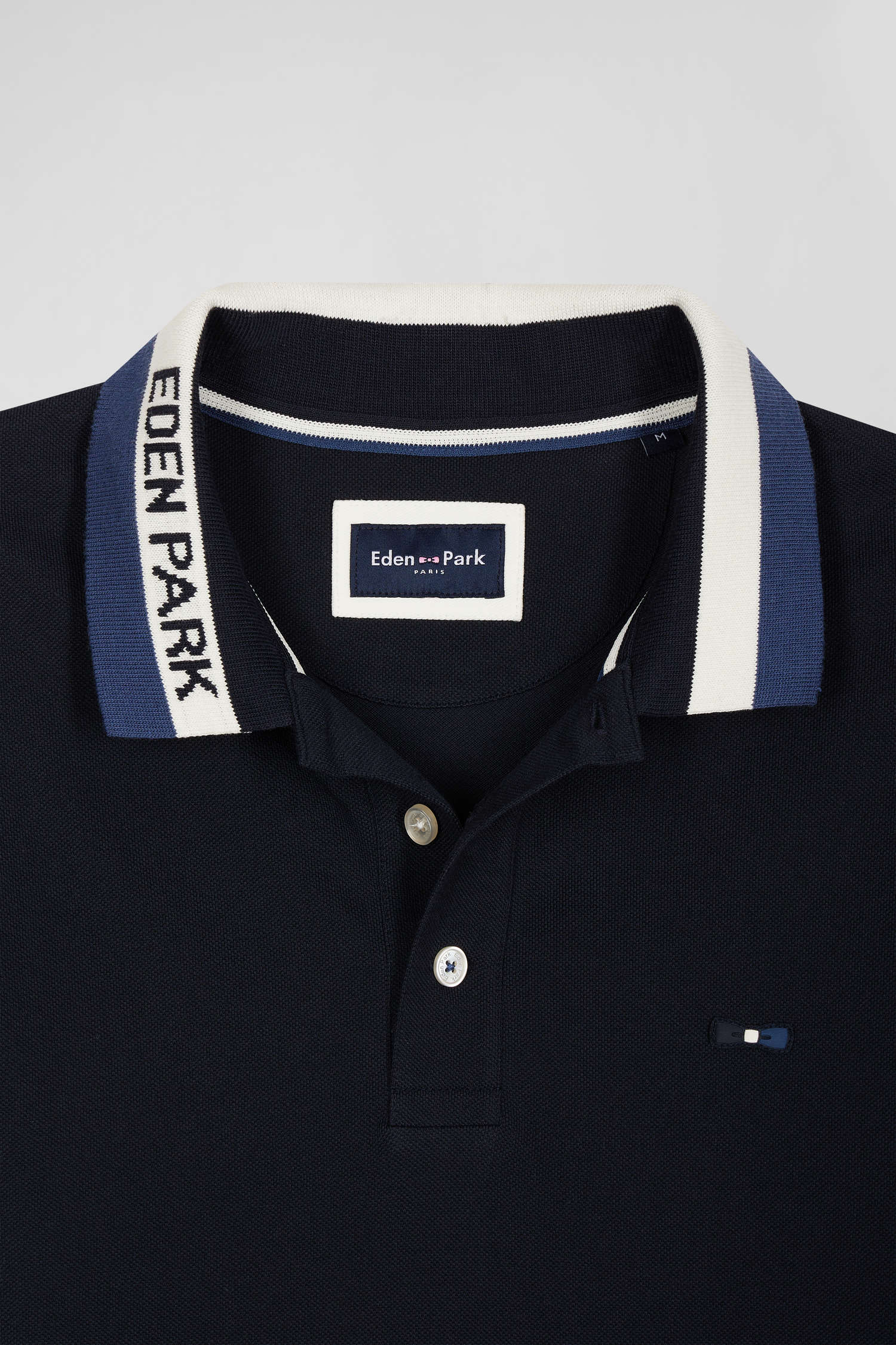 Polo manches courtes en piqué coton bleu marine col jacquard Eden Park coupe Regular