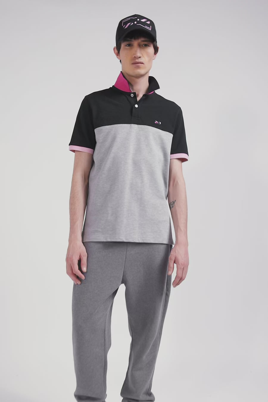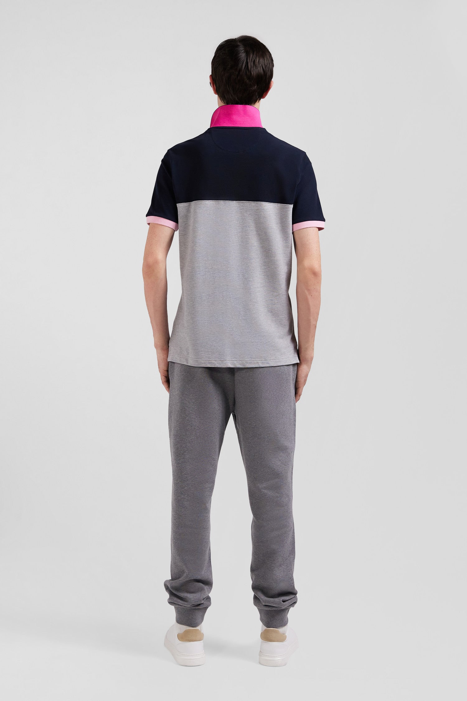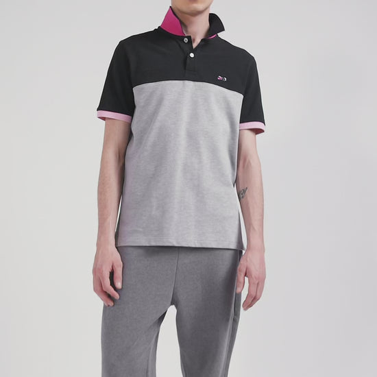 Polo manches courtes en piqué coton gris détails contrastés broderie nœud papillon coupe Regular