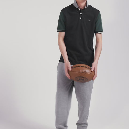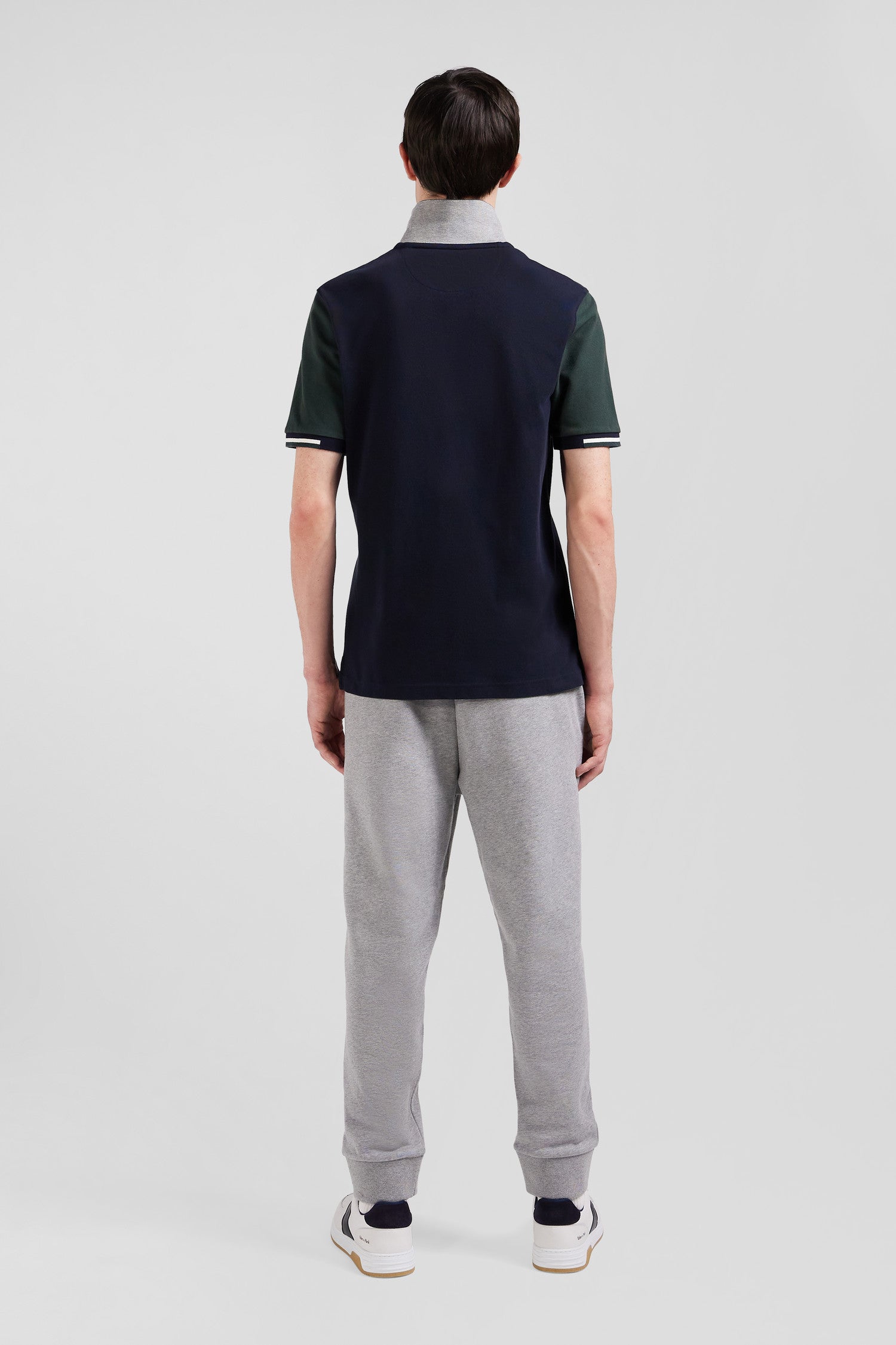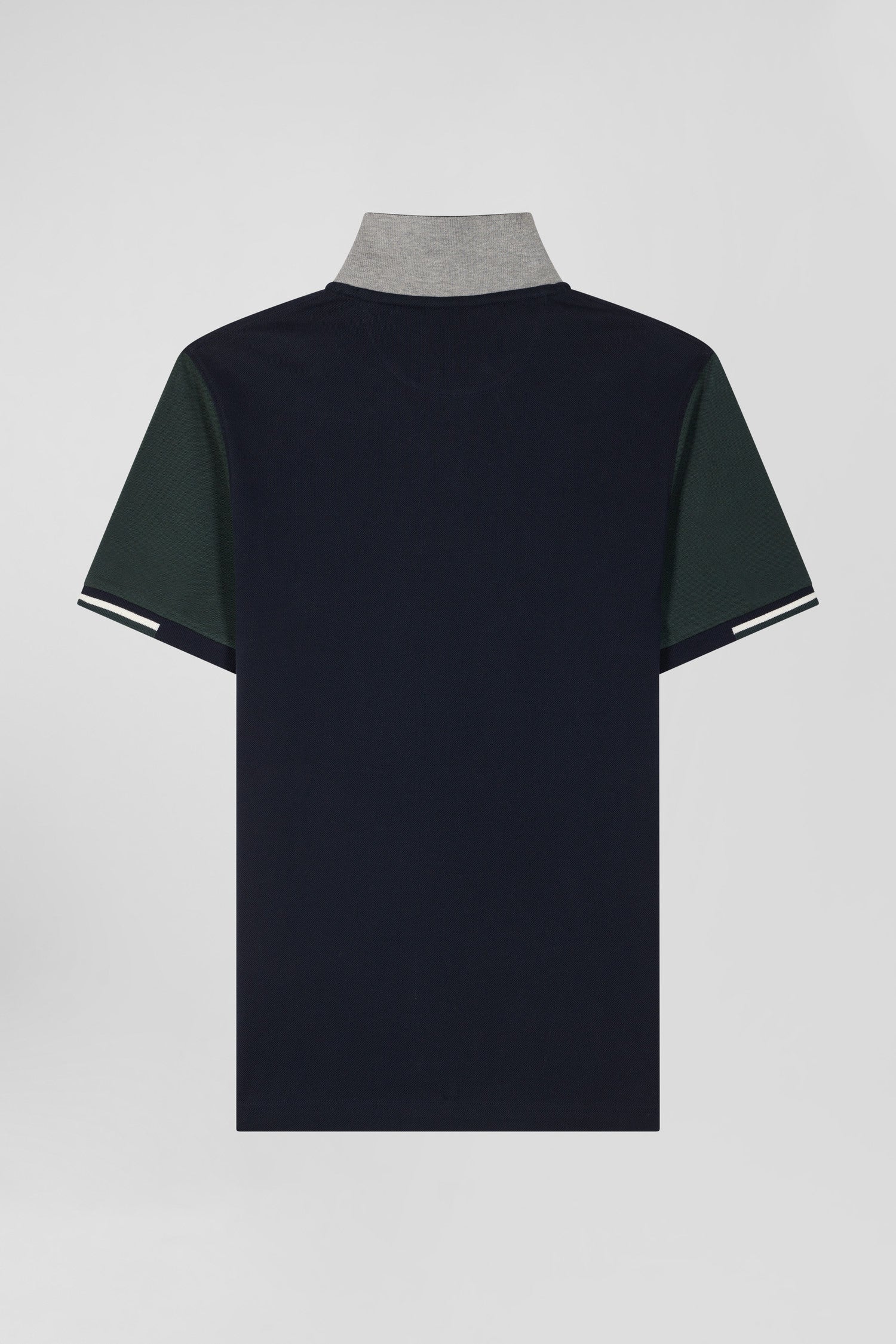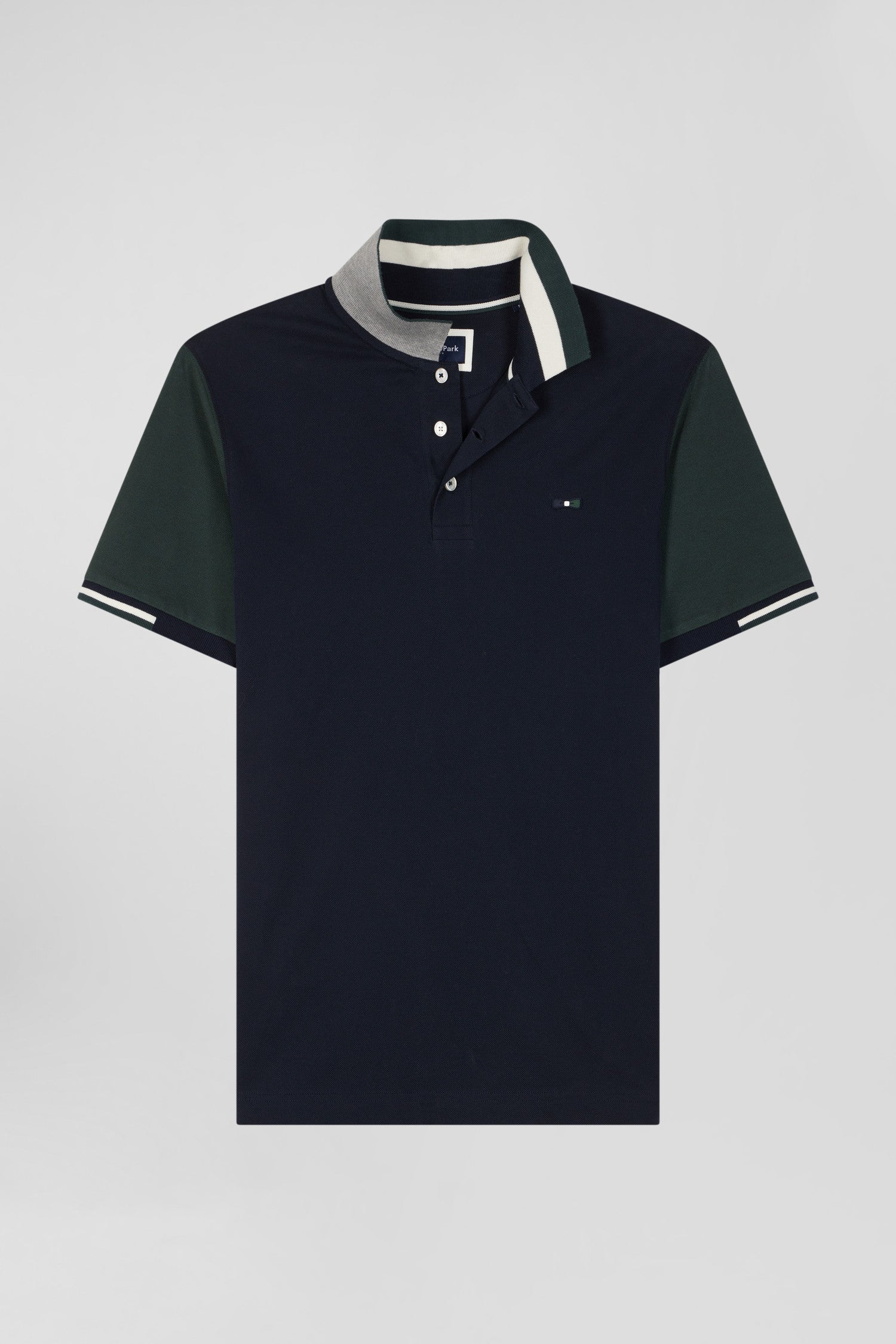 Polo manches courtes en piqué coton vert col jacquard Eden Park coupe Regular