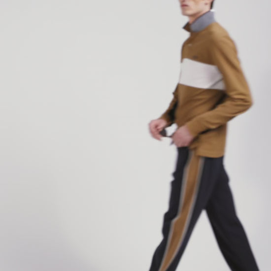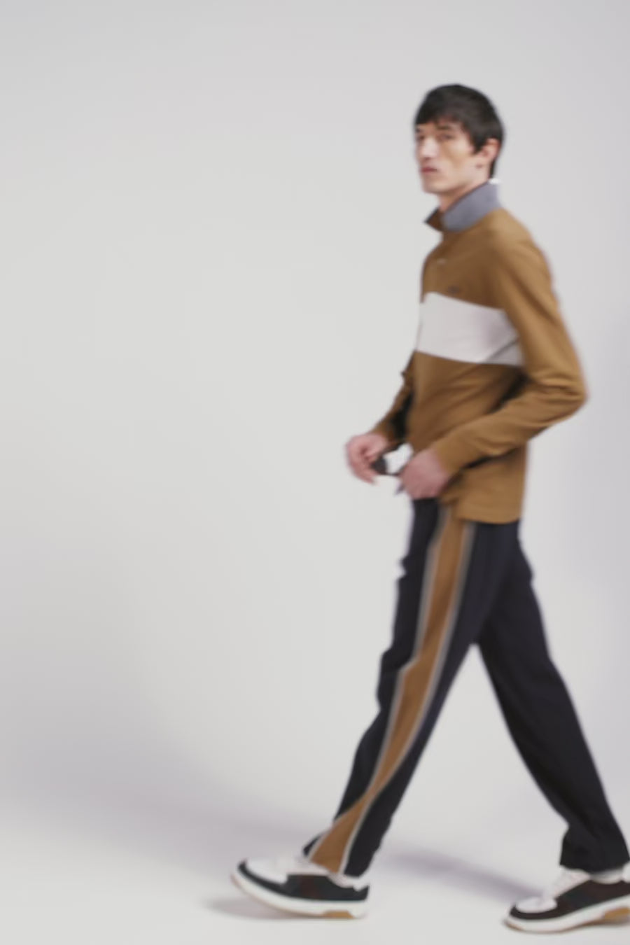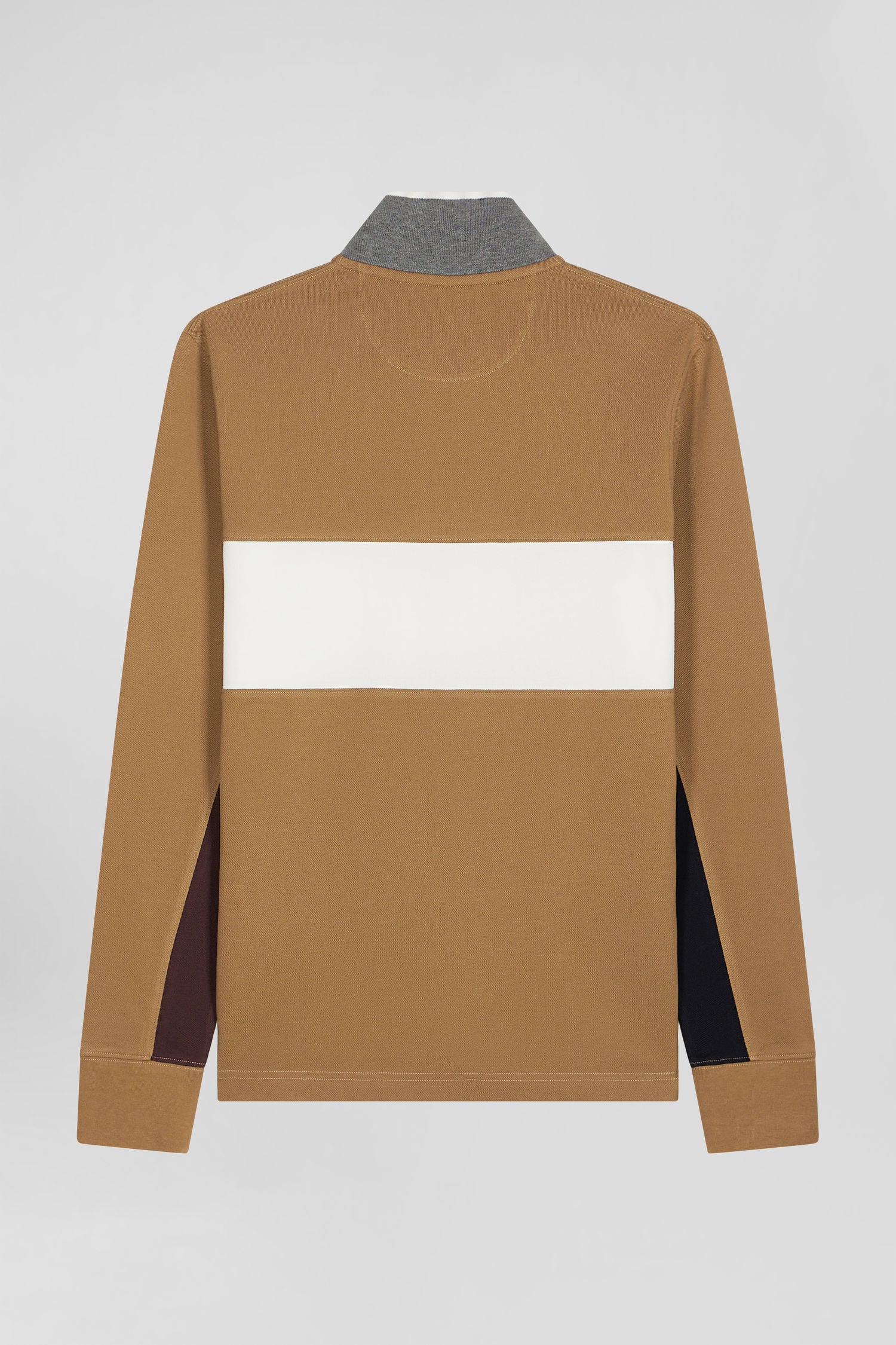 Polo manches longues colorblock en piqué coton noisette coupe Regular