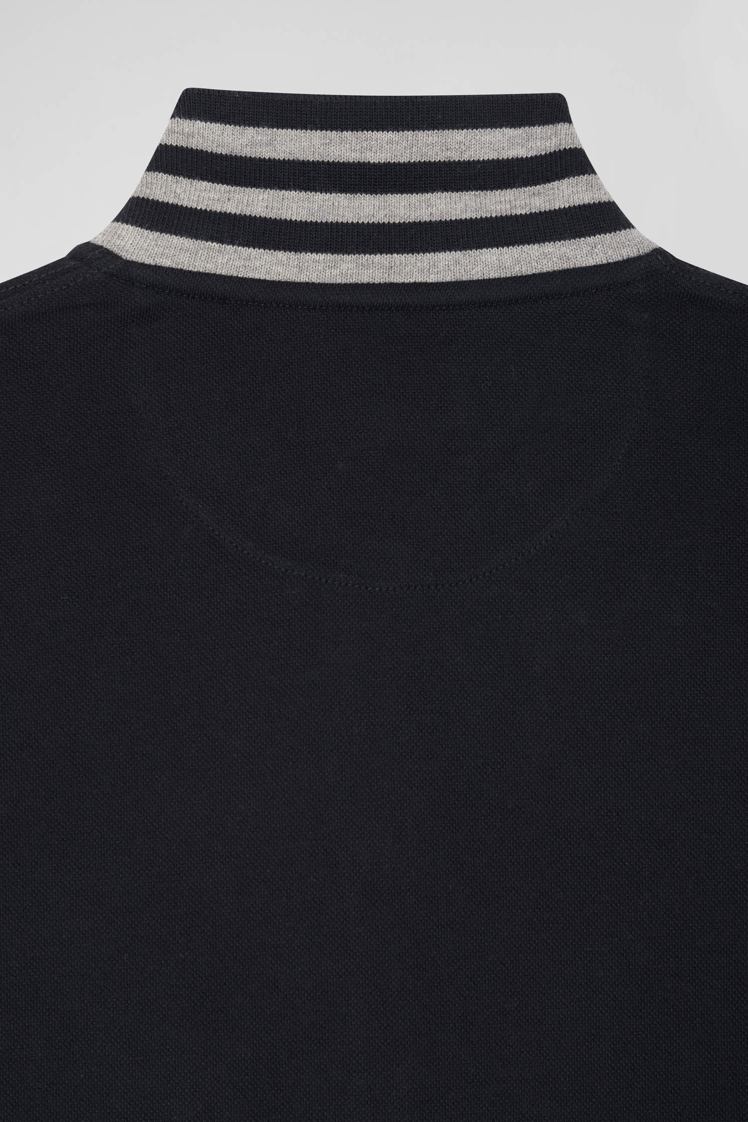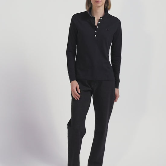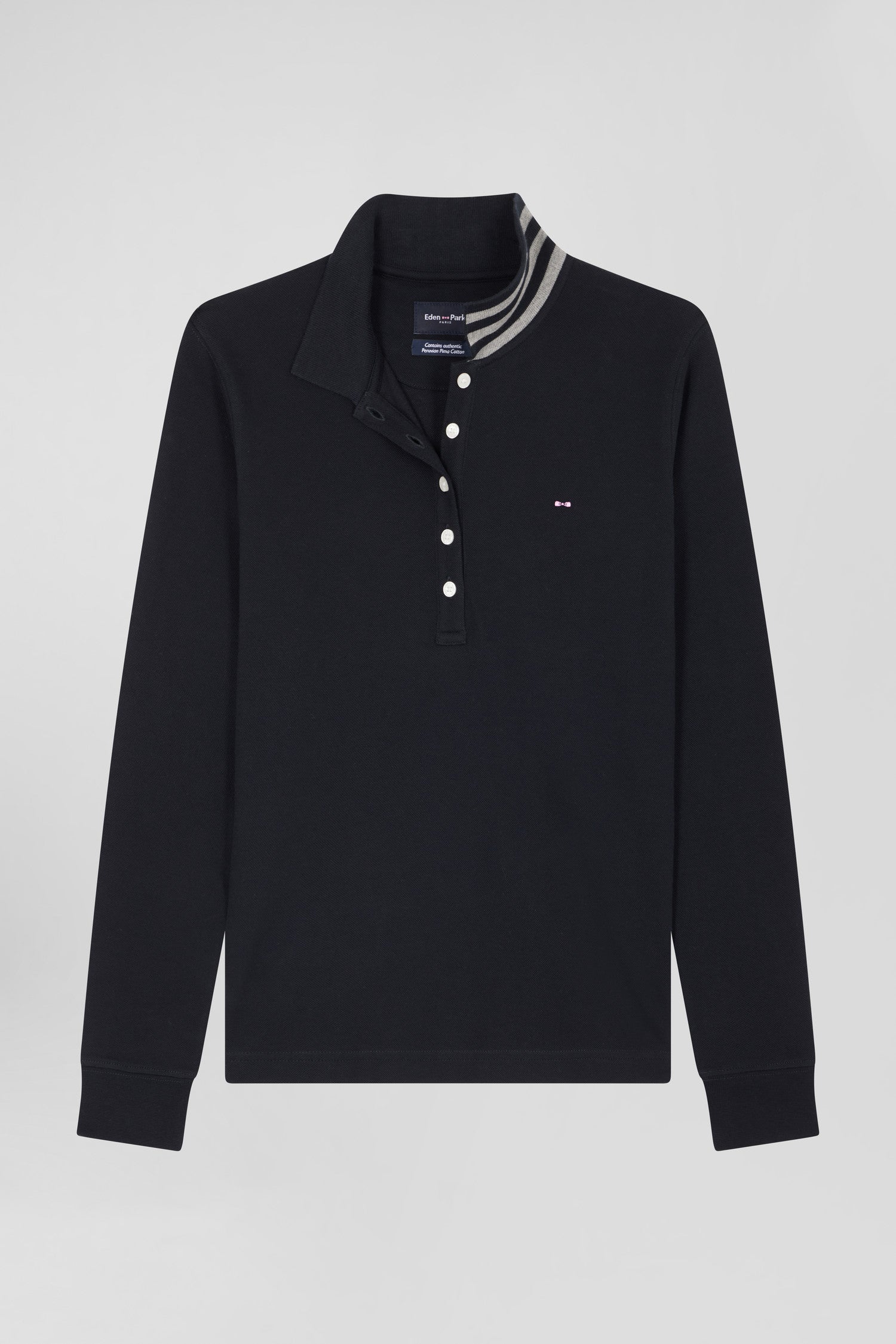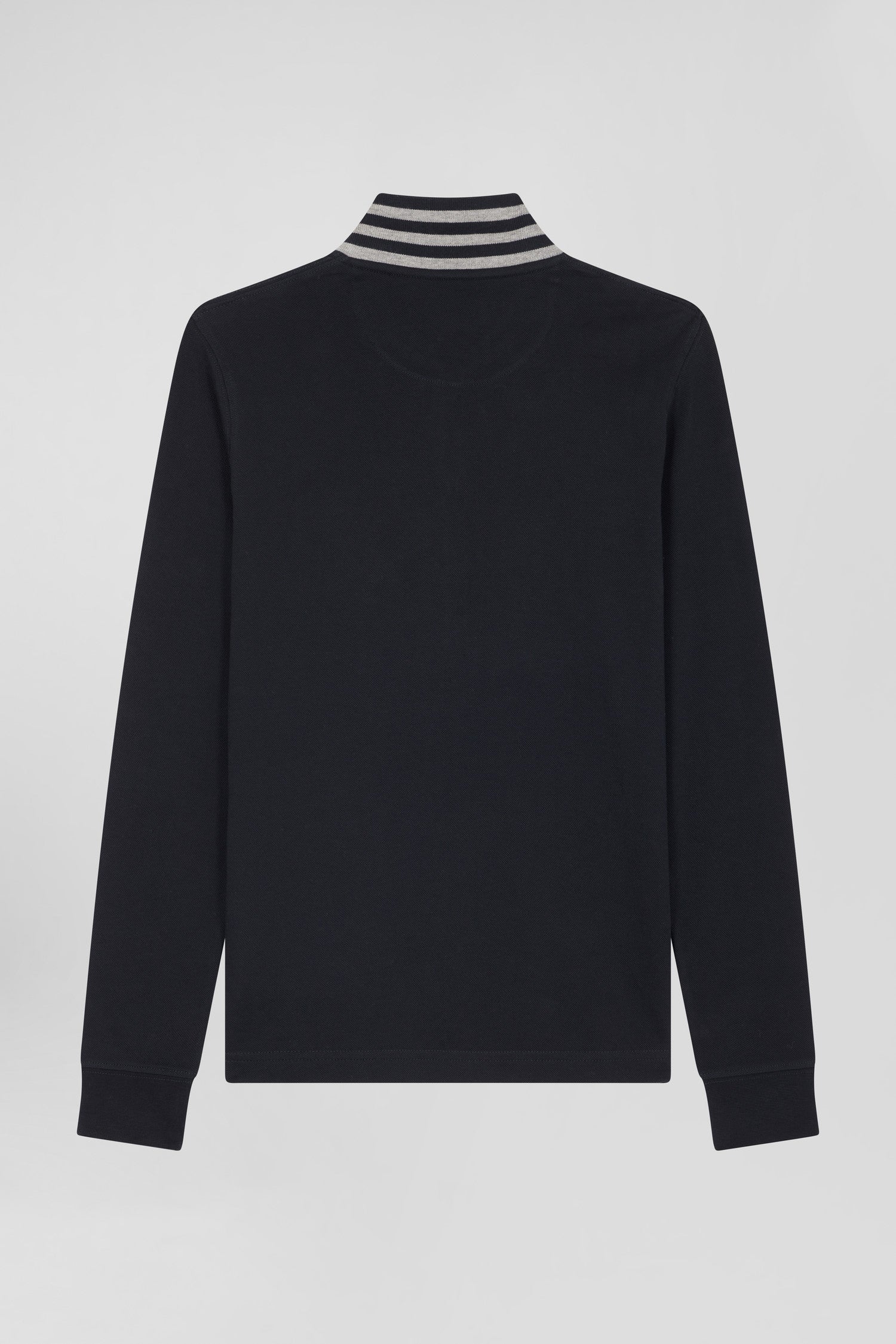 Polo manches longues en coton stretch col cerclé noir coupe Slim