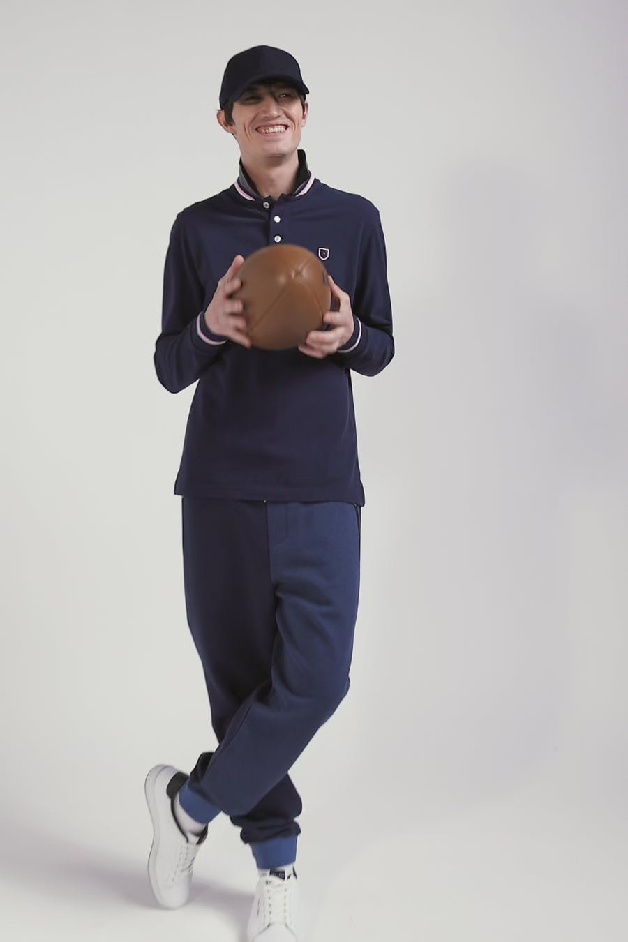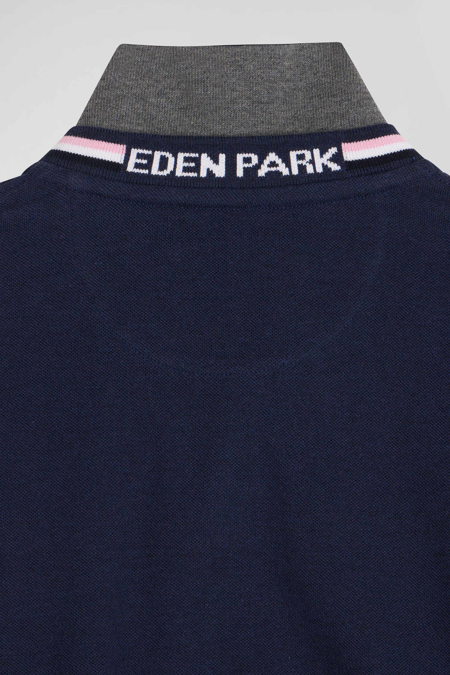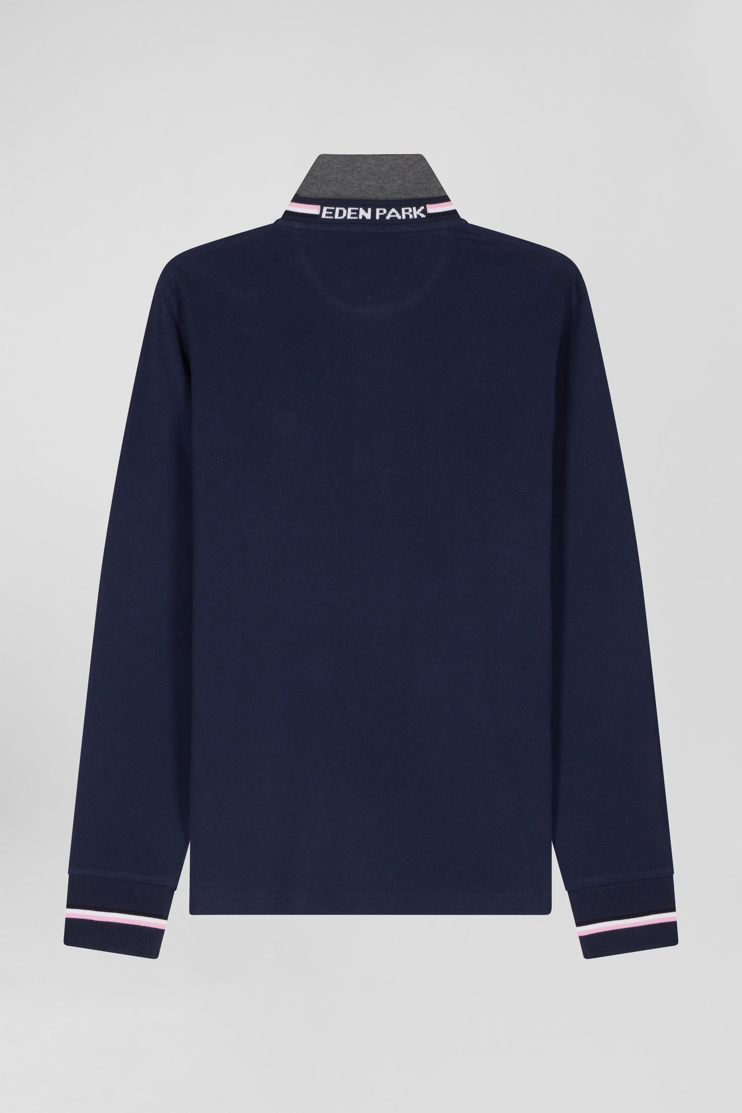 Polo manches longues en piqué coton bleu marine écusson gomme coupe Regular
