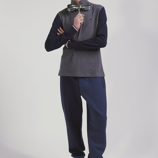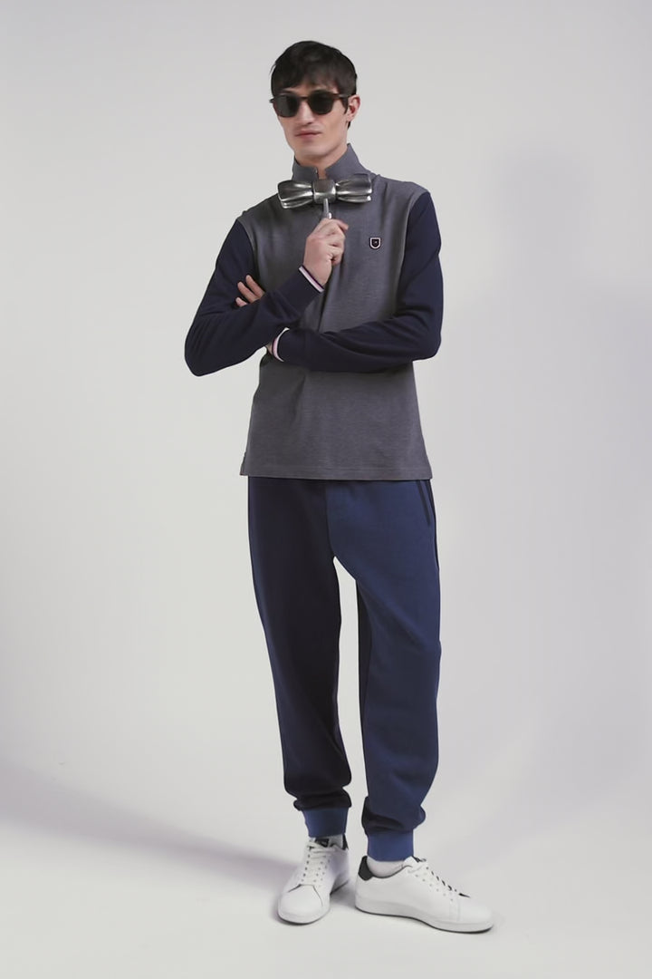 Pantalon jogging en coton mélangé bicolore bleu marine coupe Regular