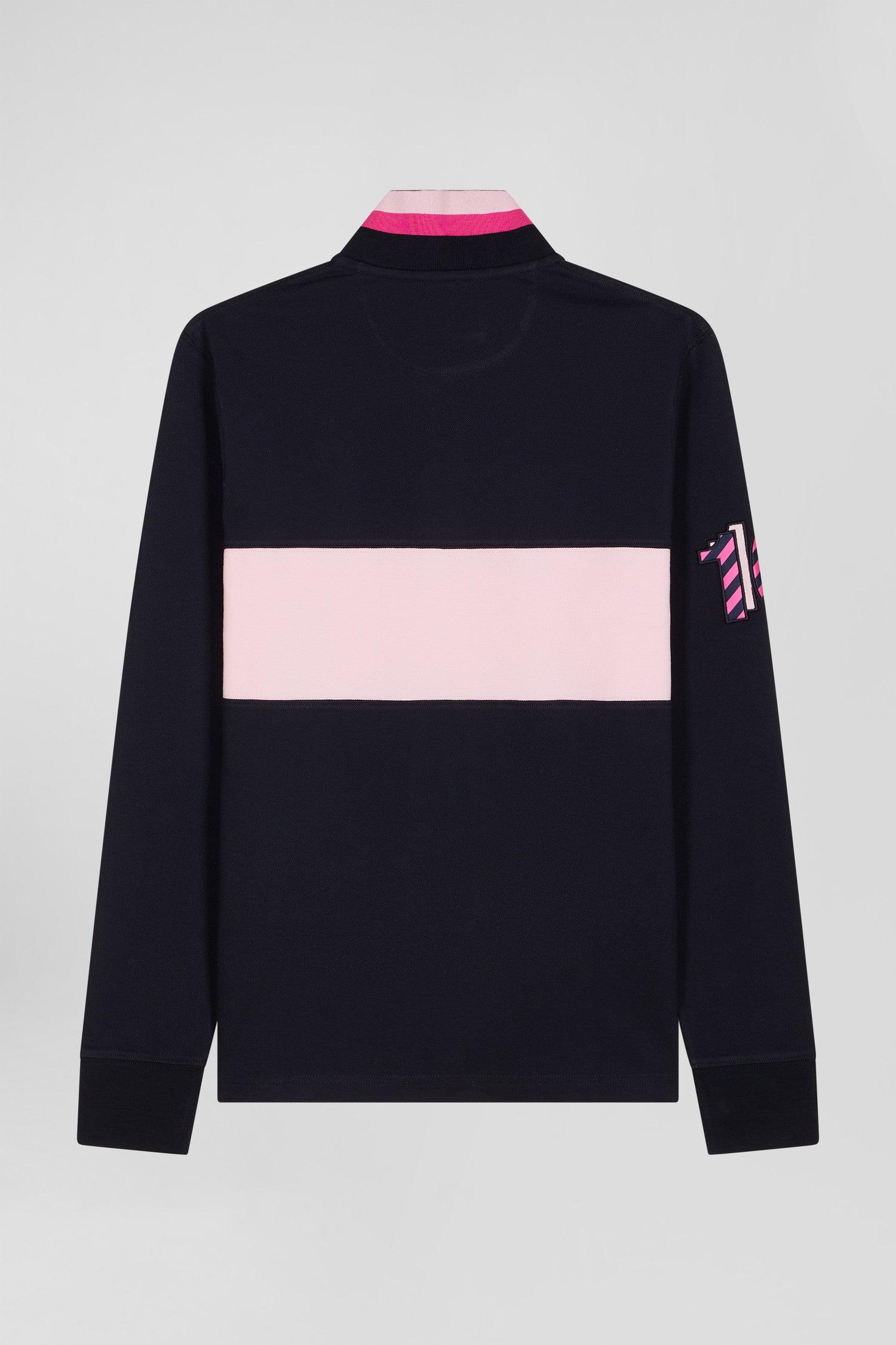 Polo manches longues en piqué coton rose broderie 10 manche coupe Regular