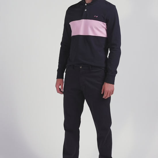 Apportez une touche travaillée à votre vestiaire décontracté avec ce polo manches longues masculin. Ses finitions brodées avec application de tissu cravate sur la manche lui confèrent une élégance certaine. Le numéro 10 choisi ne tient pas du hasard, il s'agit du maillot porté par le rugbyman et fondateur d'Eden Park Franck Mesnel. Les boutons ovales, inspirés du rugby et portant le nom de notre Maison s'ajoutent aux détails soignés de ce polo masculin comme son dessous de col tricoté arborant des rayures tricolores.