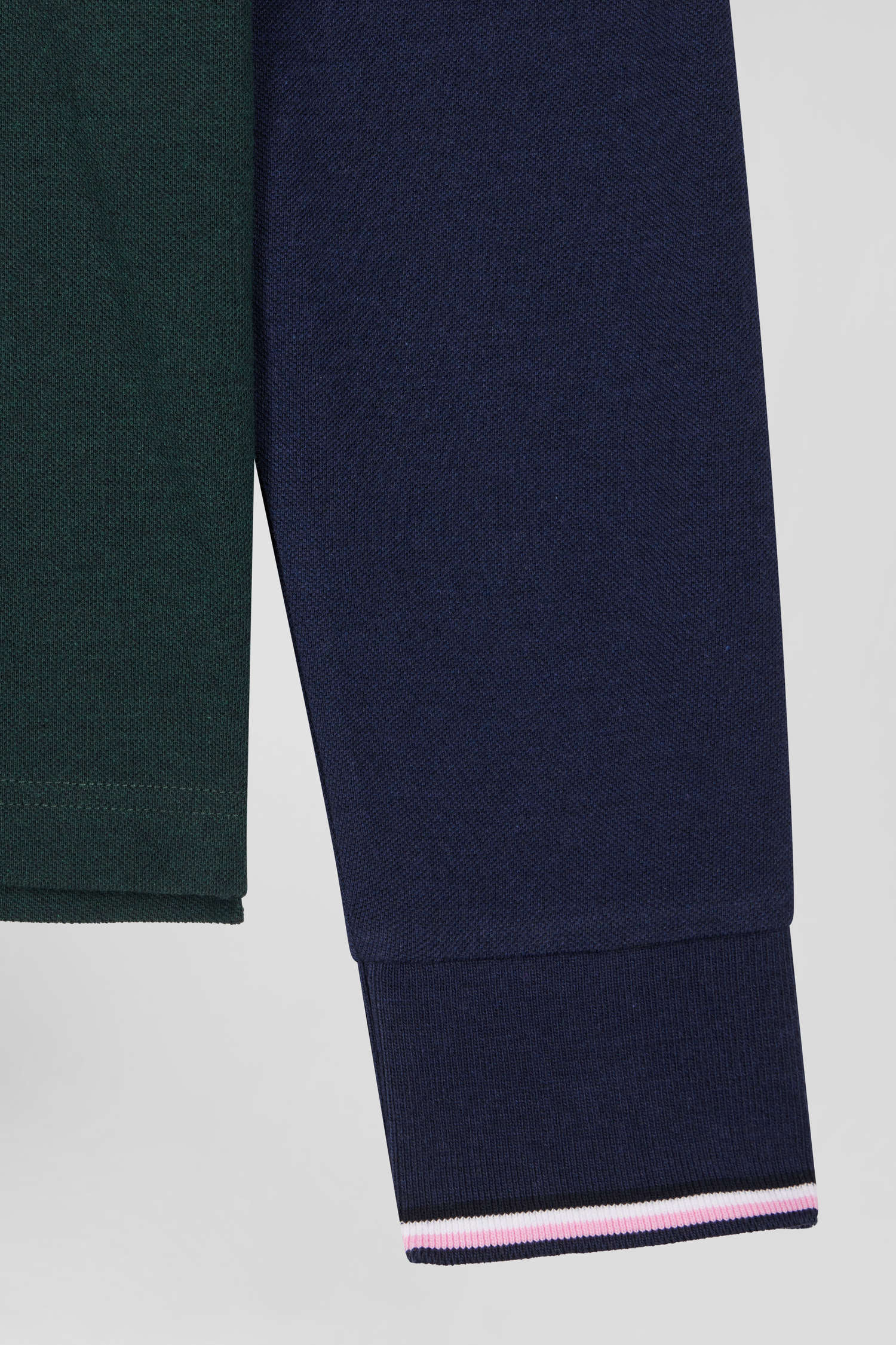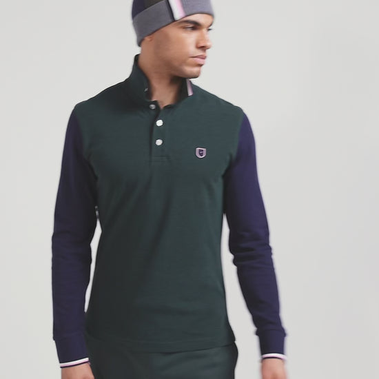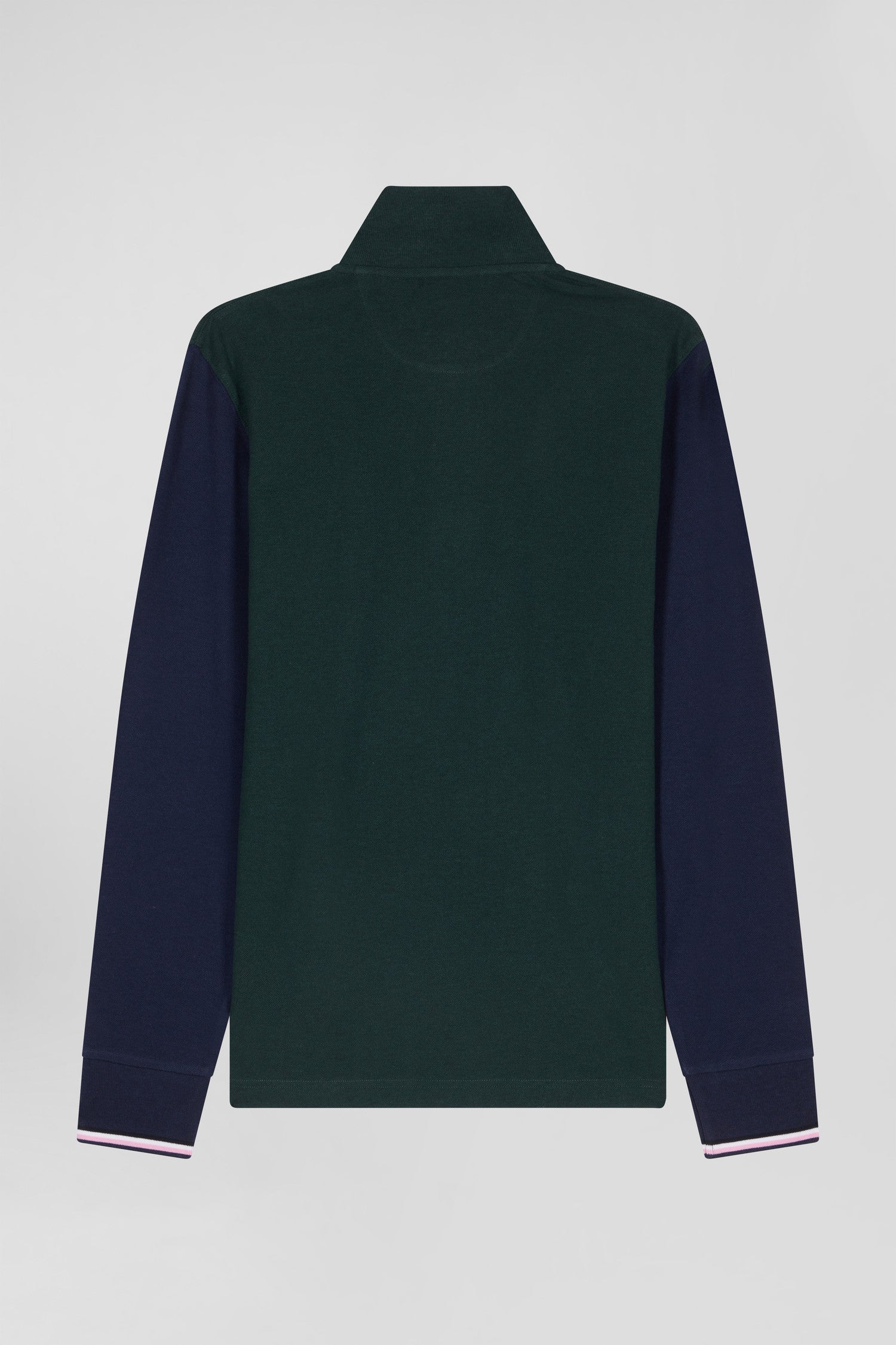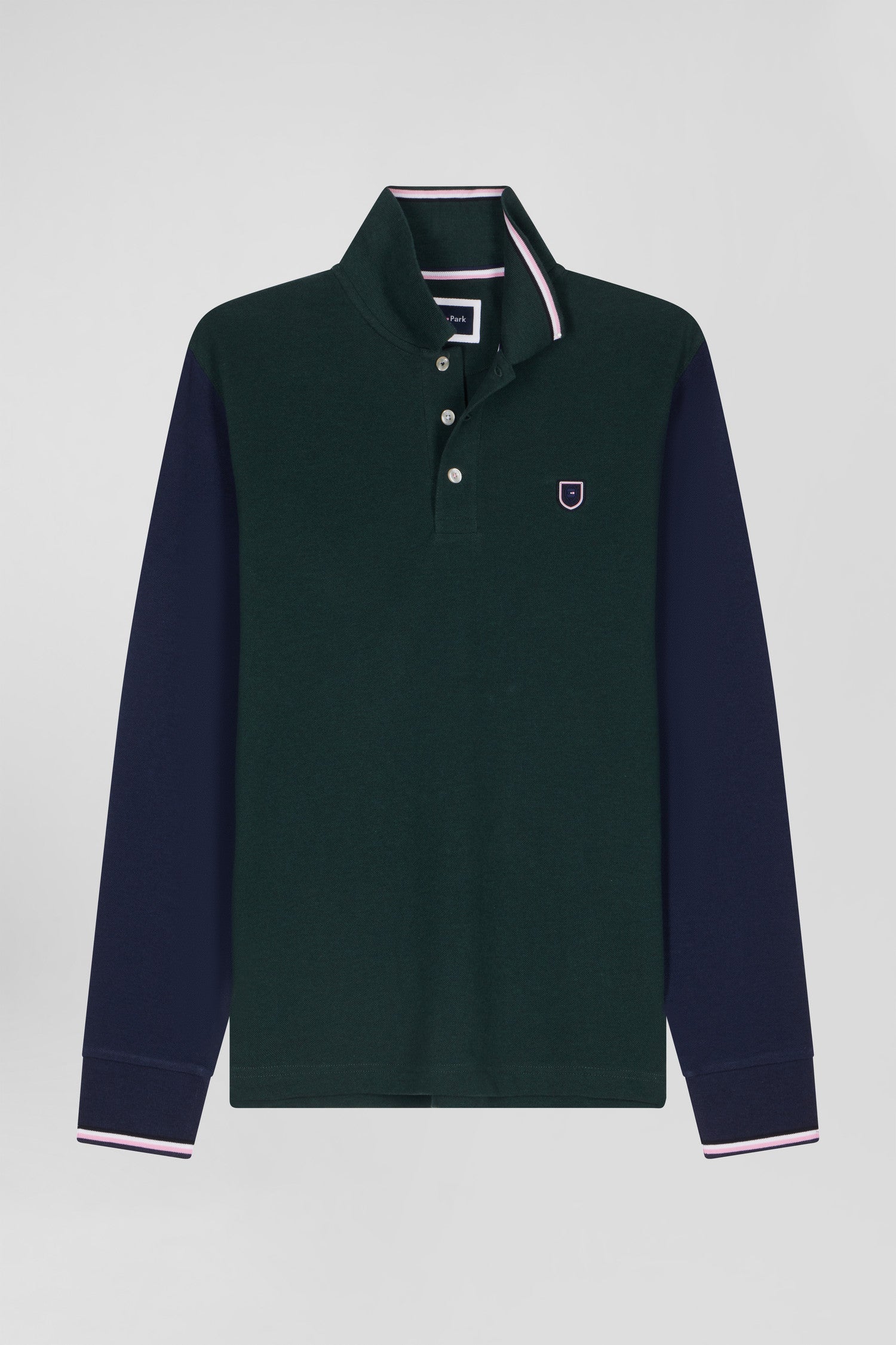 Polo manches longues en piqué coton vert col jacquard écusson gomme coupe Regular