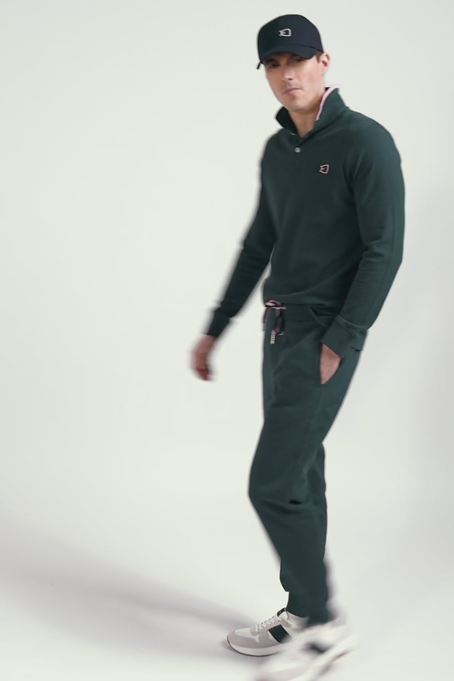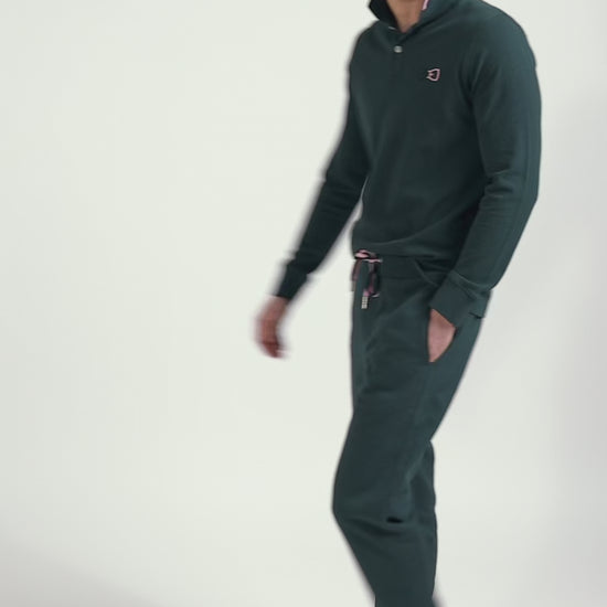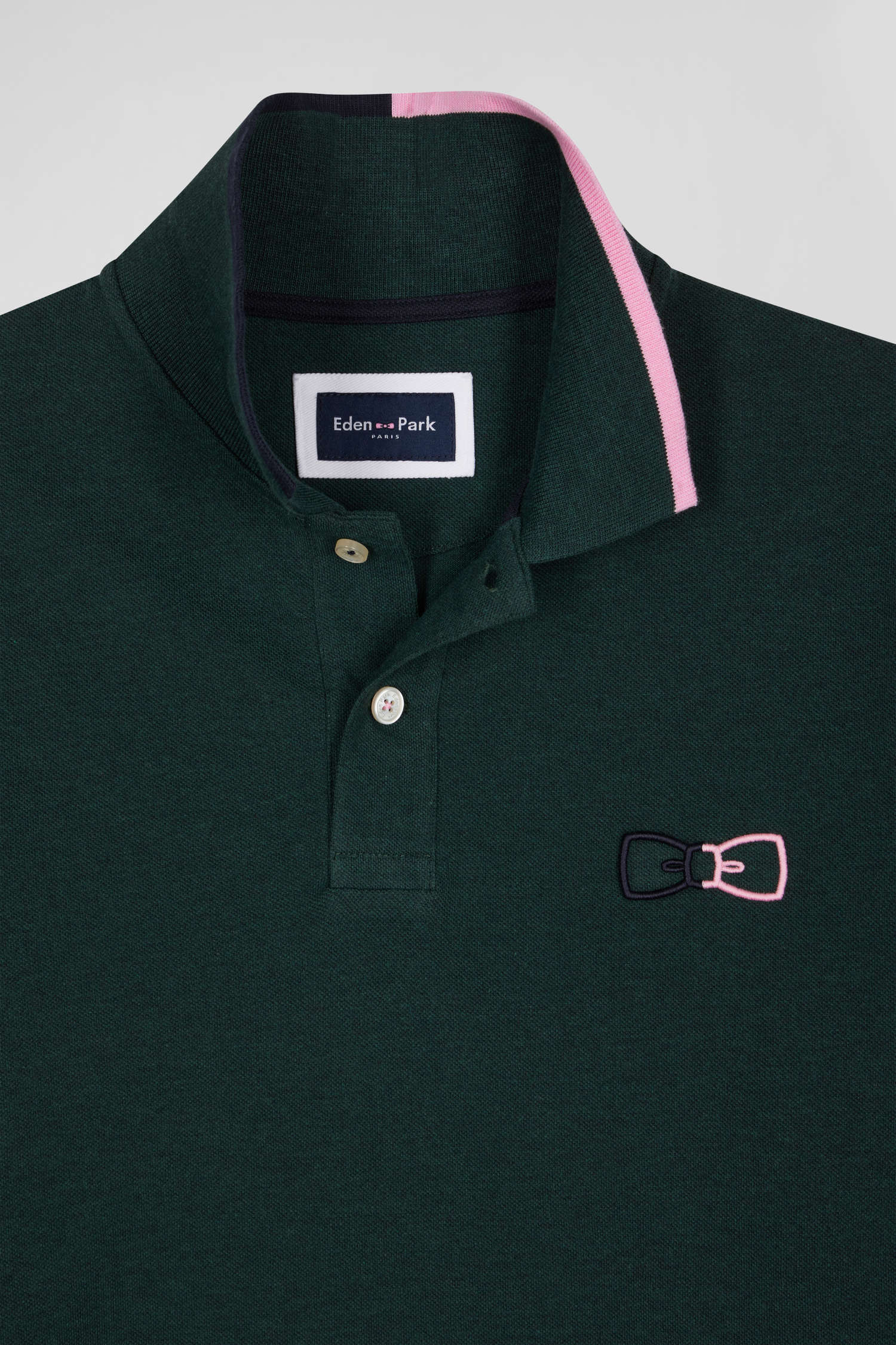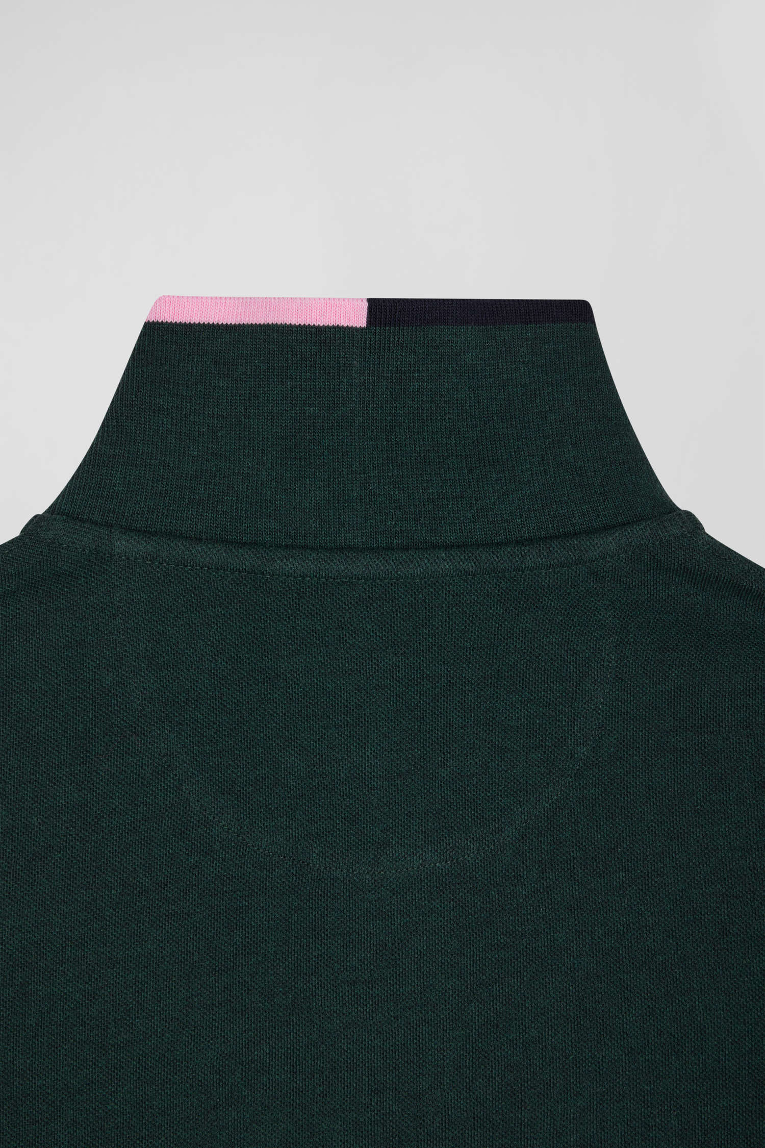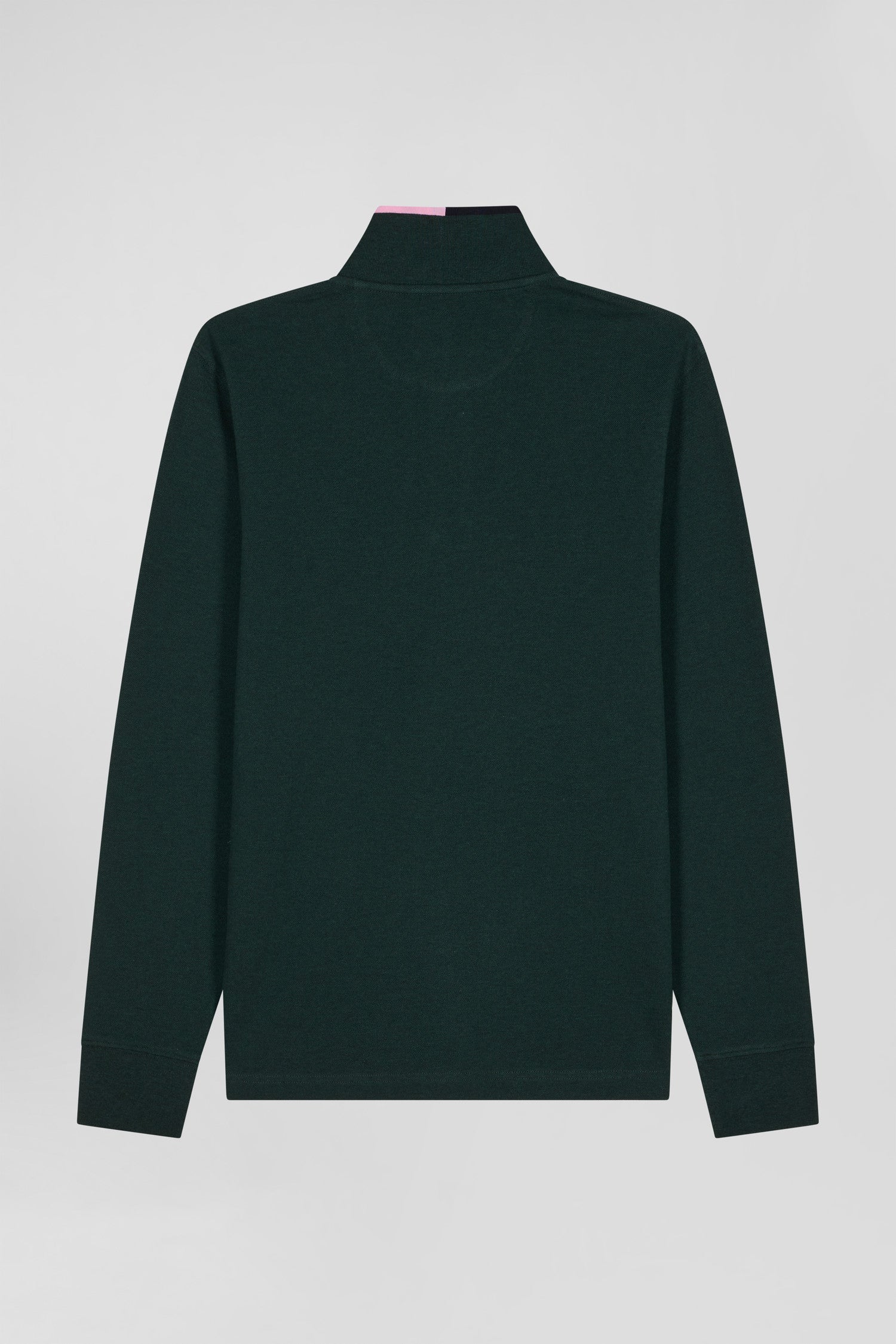 Polo manches longues en piqué coton vert détails roses coupe Regular