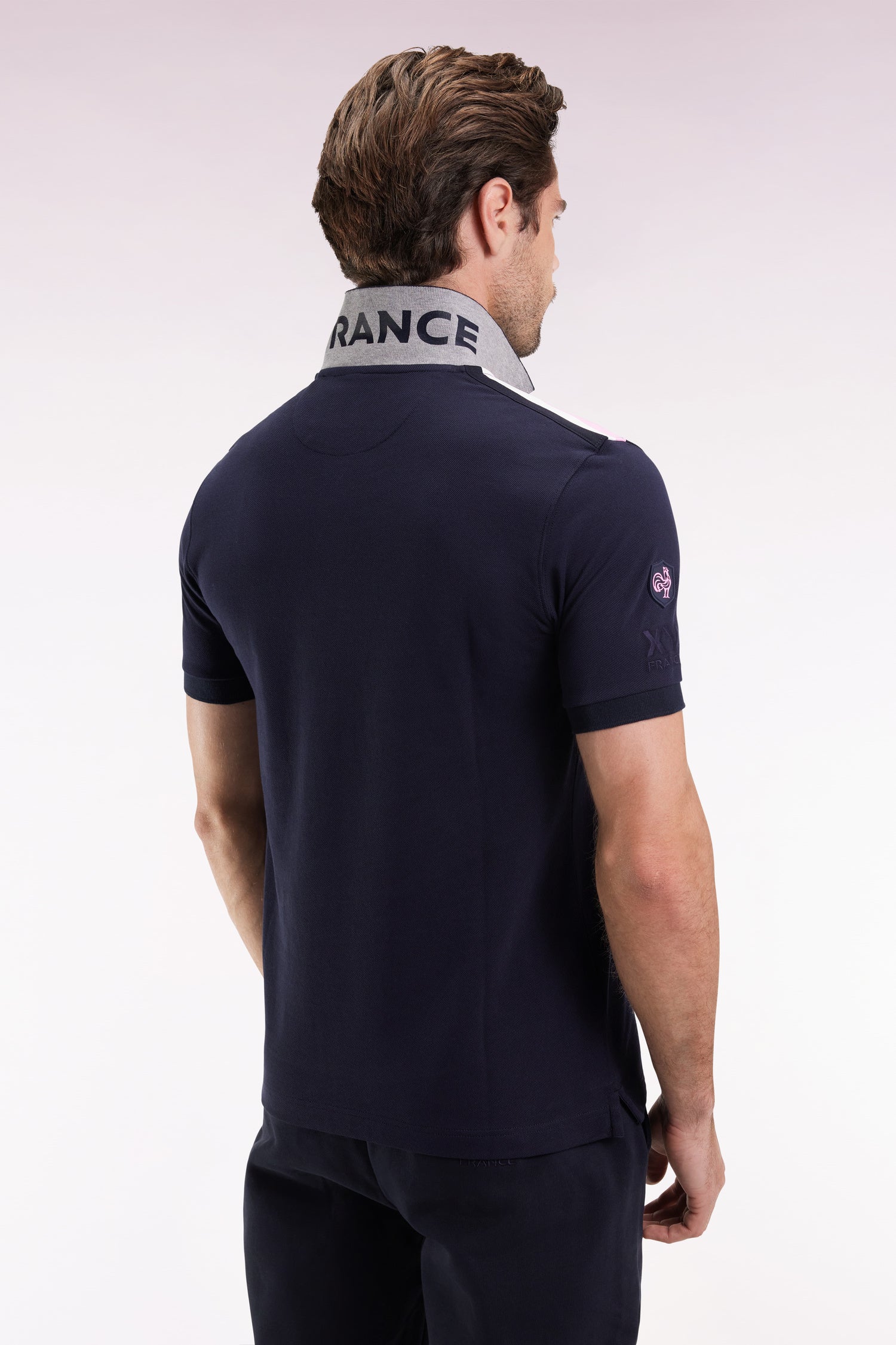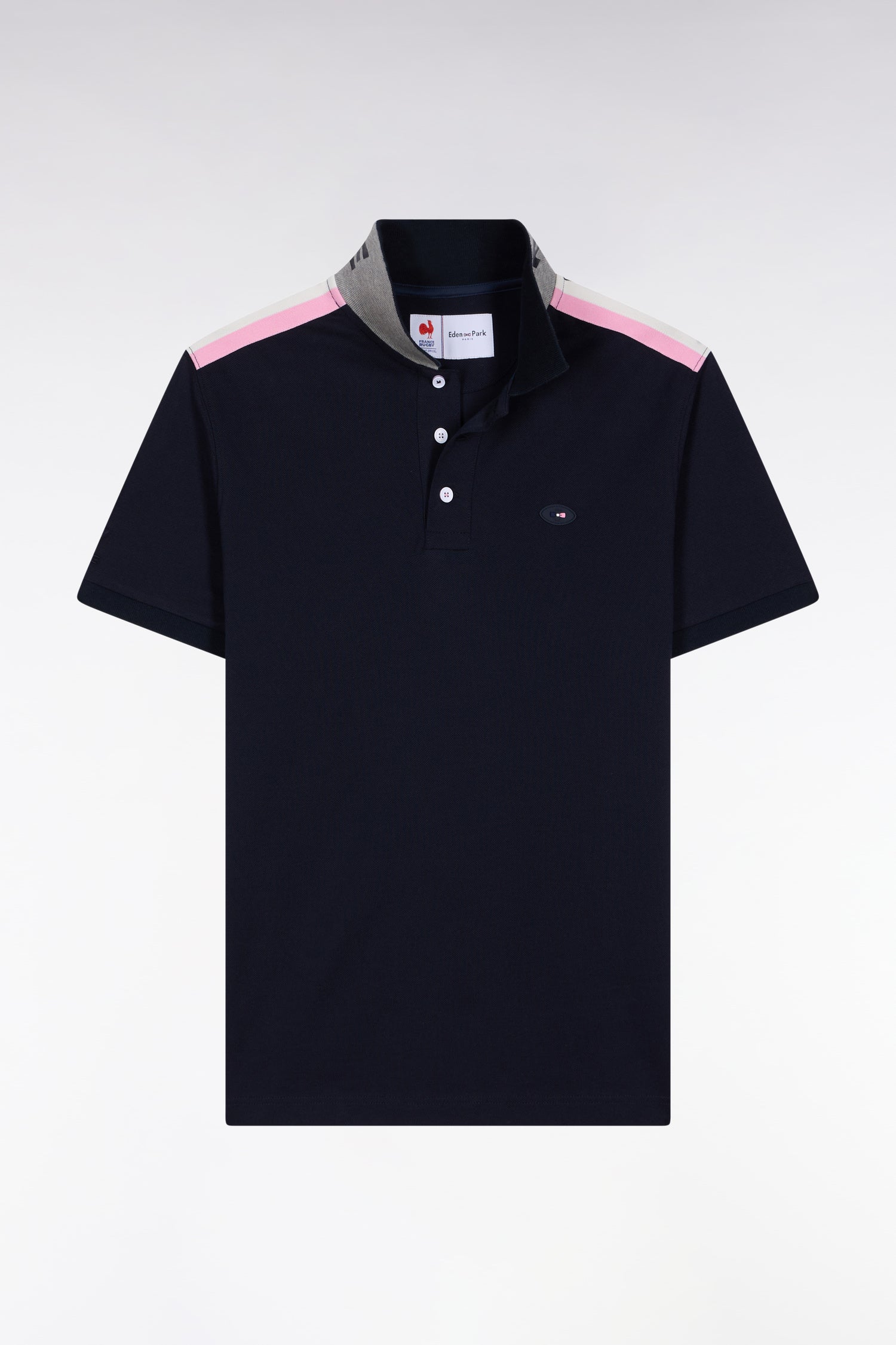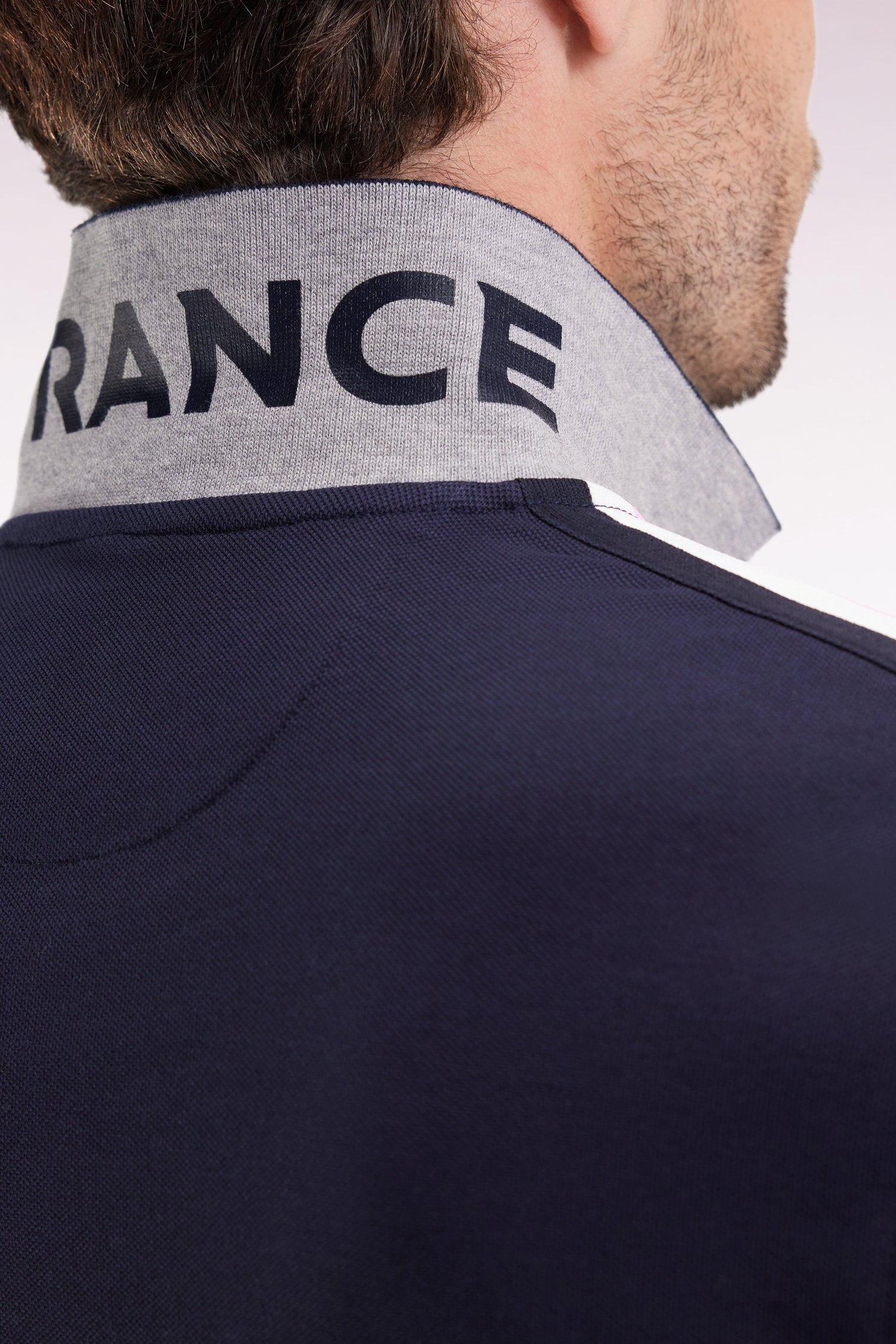 Ce polo à manches courtes incarne l'esprit sportif d’Eden Park et du XV de France masculin avec ses rubans tricolores bleu ciel, blanc et rose brodés sur l'épaule qui dynamisent l'allure. Son dessous de col comporte l'inscription "France" permettant de subtilement signifier votre soutien à l'équipe nationale. Sur la poitrine, un badge silicone contraste subtilement avec le piqué de coton aussi doux que respirant. Une pièce emblématique du vestiaire rugby chic à forte personnalité jusqu'aux boutons tricolores reprenant la forme d'un ballon de rugby !