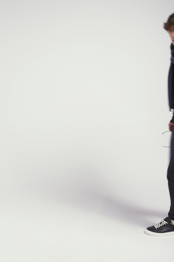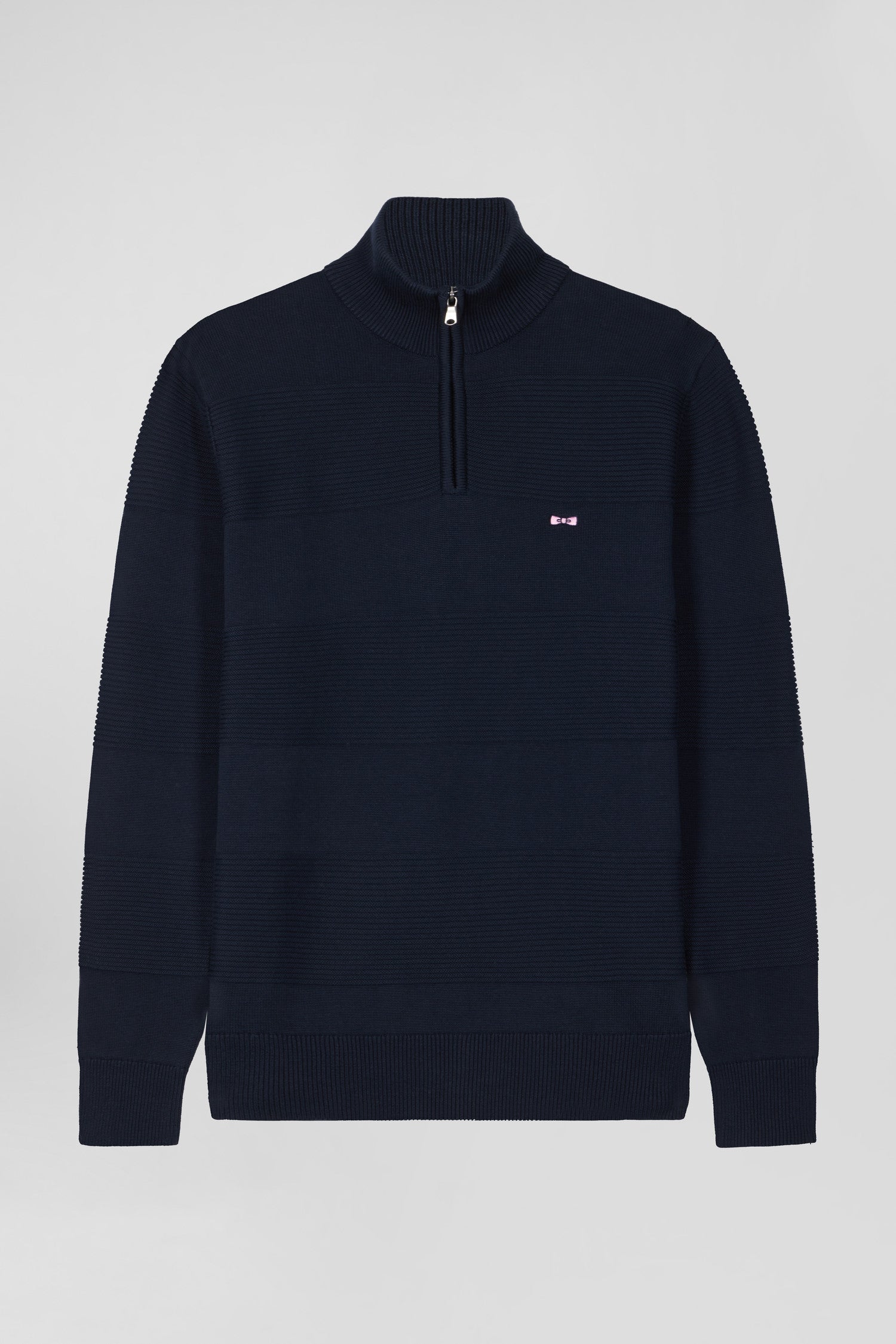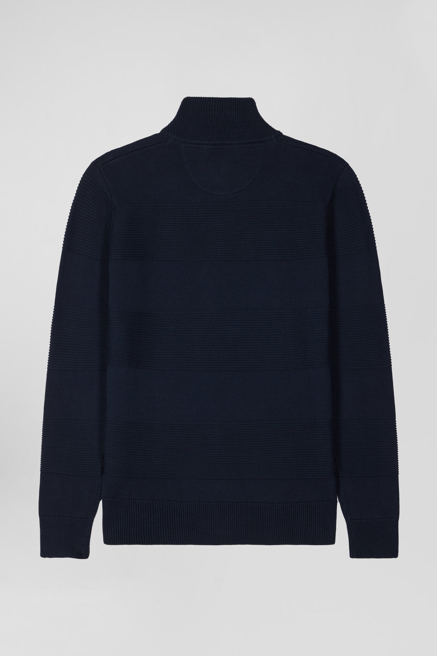 Pull col camionneur en coton bleu marine à jeux de maille coupe Regular