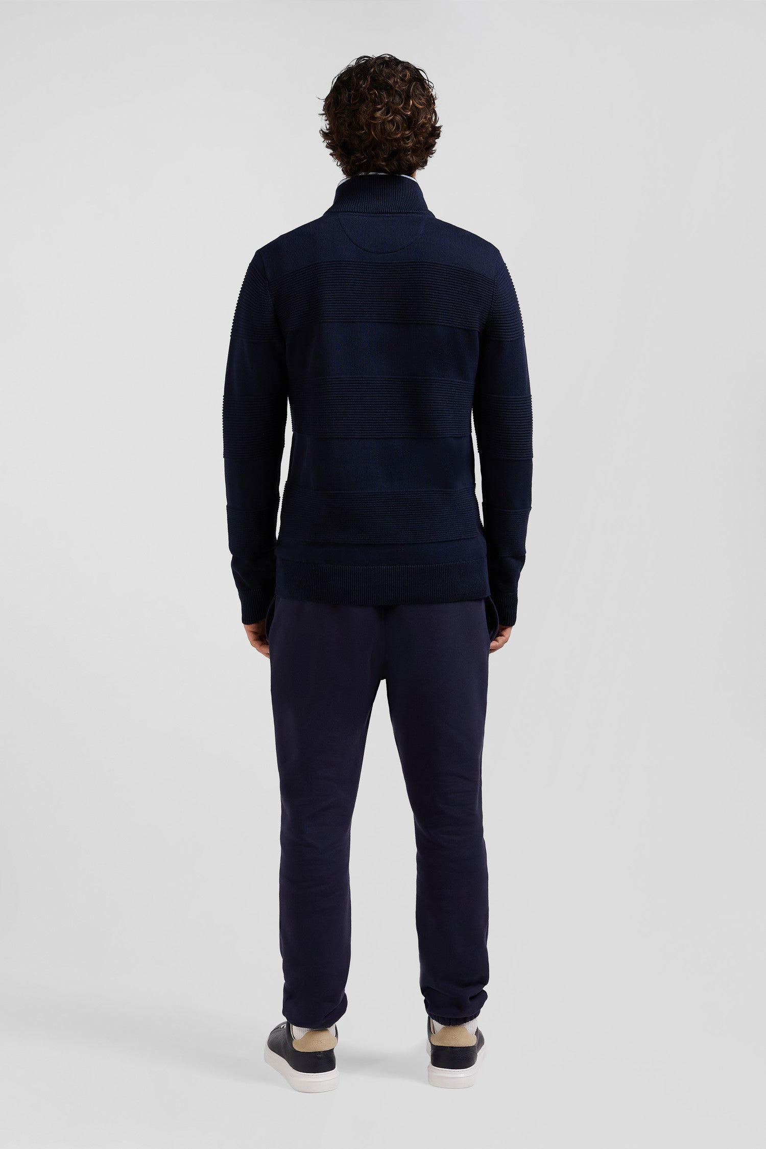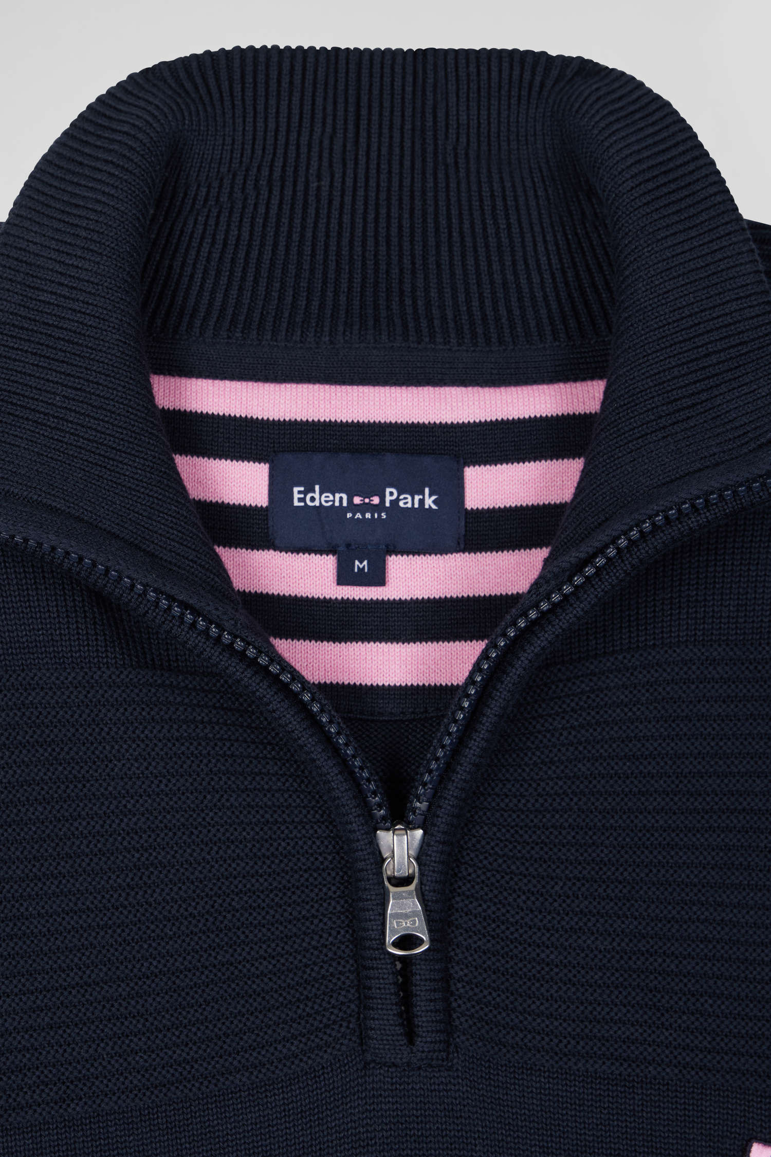 Conçu en coton pour plus de douceur et de confort, ce pull homme à col camionneur présente une fermeture éclair pratique pour une touche moderne. La demi-lune intérieure affiche des rayures cerclées, signature subtile de l'élégance Eden Park tandis que ses points de tricotage variés expriment avec fantaisie le savoir-faire Eden Park. Portez-le zippé sur un t-shirt pour un style décontracté ou entrouvert sur une chemise pour une note plus formelle.