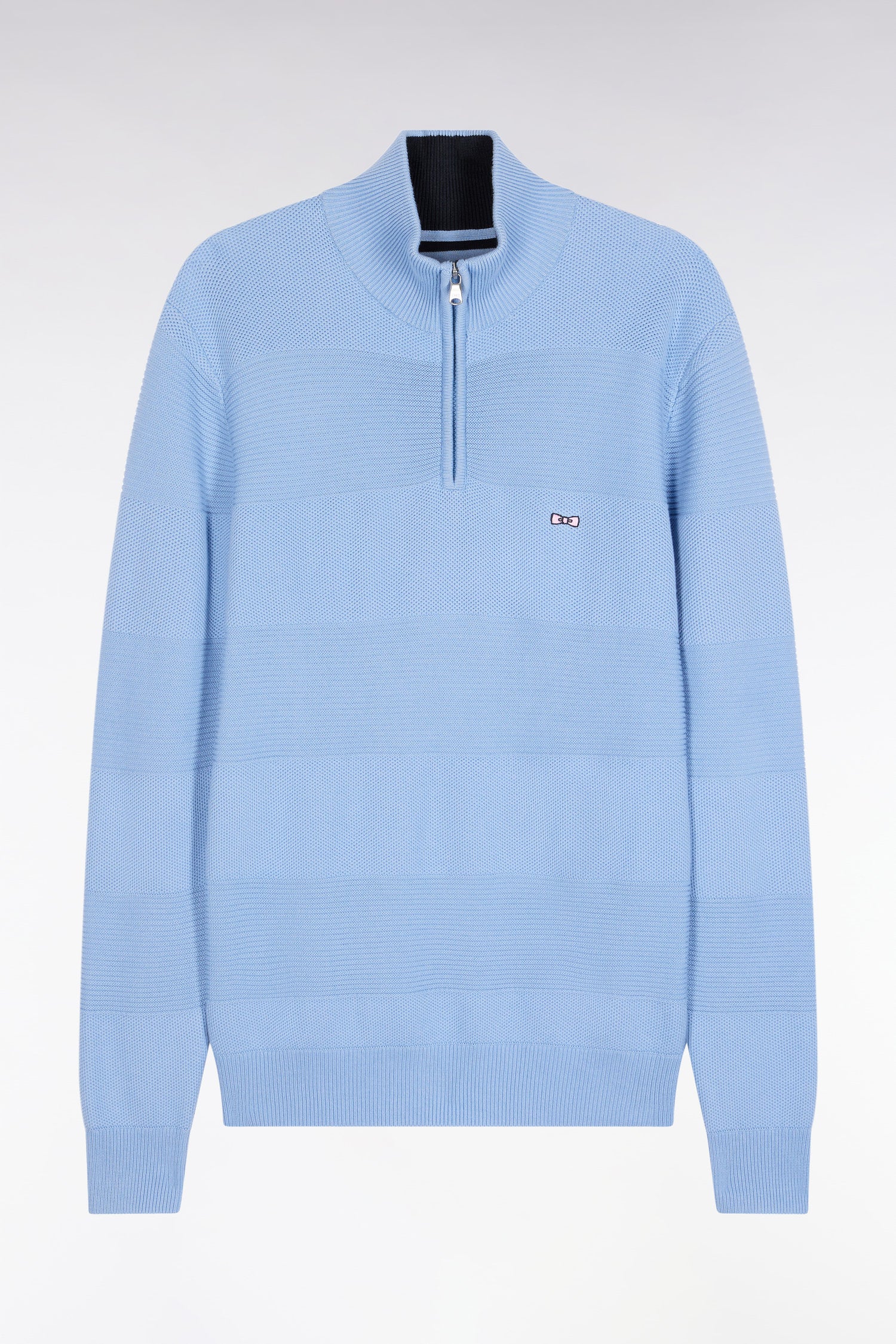 Fier de son héritage sportif, ce pull à camionneur zippé réalisé en pur coton présente un tricotage double tout en vous garantissant une sensation de confort durable. Son jeu de textures permet de recréer, en ton sur ton, les rayures emblématiques des maillots de rugby. Sa coupe droite confortable, son col montant zippé et sa broderie nœud papillon rose sur la poitrine signent cette pièce à la fois graphique et intemporelle, parfaite pour conjuguer style et décontraction au quotidien. Ce modèle devenu un classique du vestiaire masculin Eden Park est proposé dans 4 teintes intemporelles
