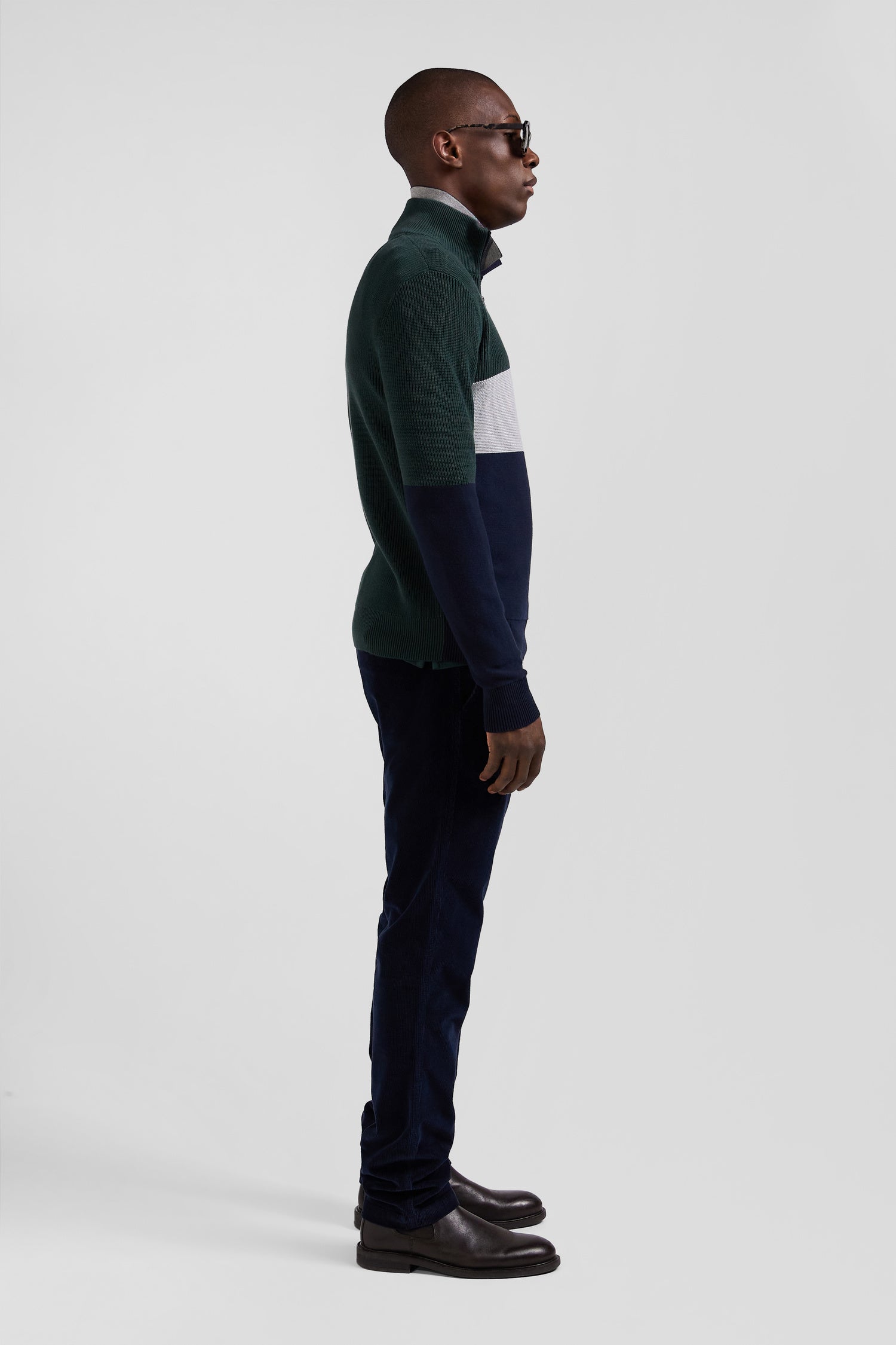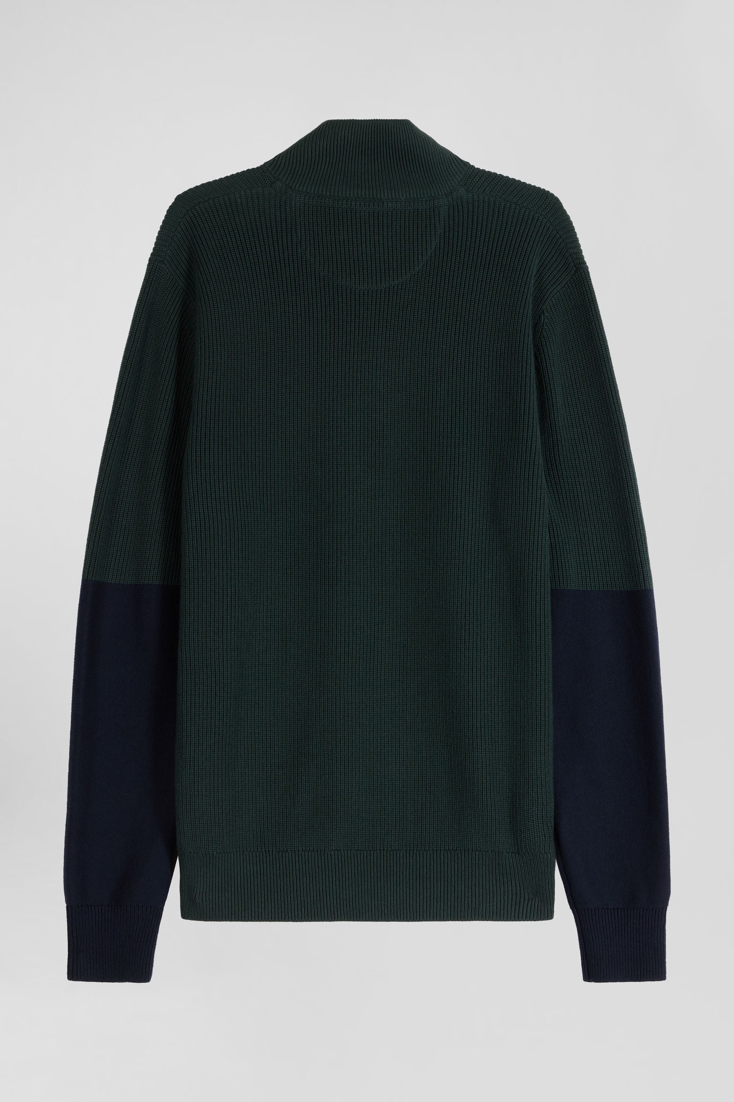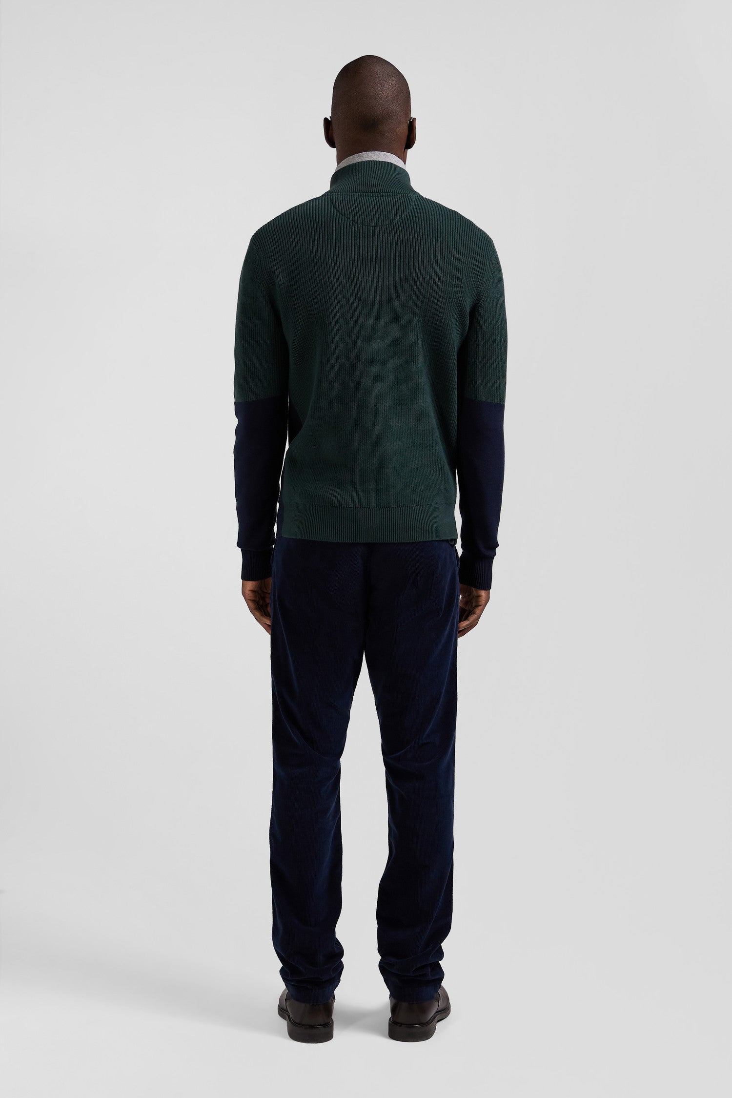 Pull col camionneur montant en coton vert à jeux de maille coupe Regular