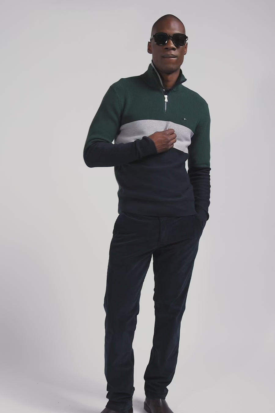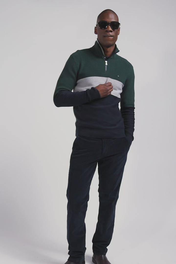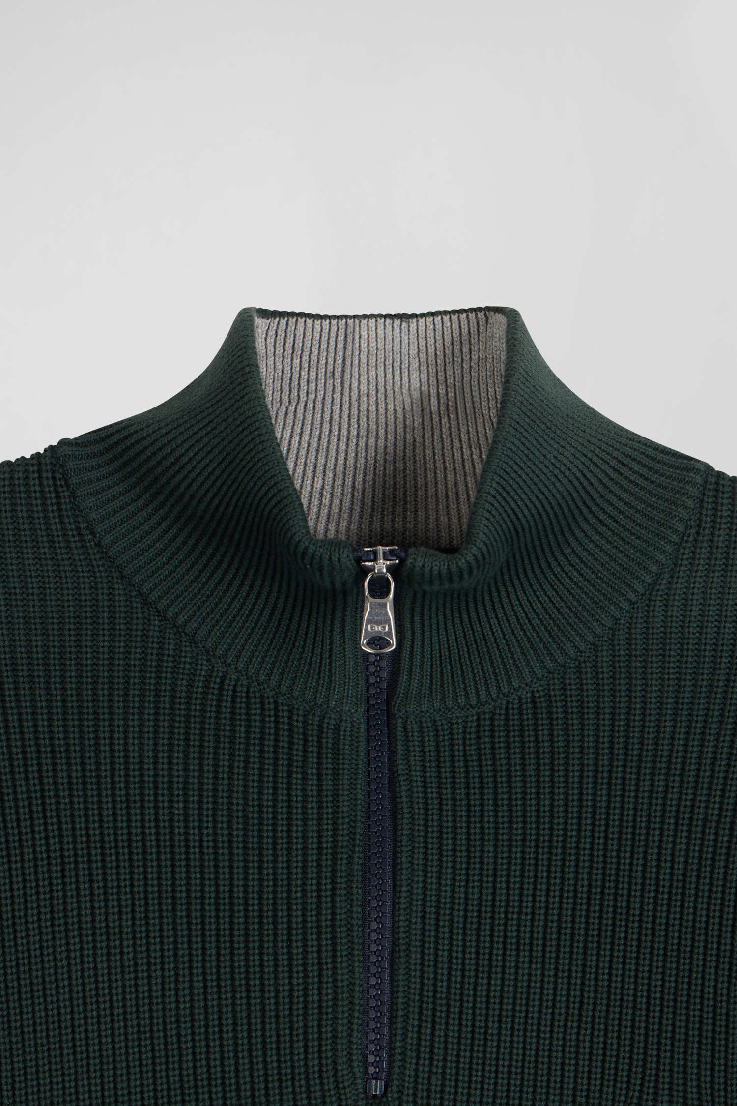 Pull col camionneur montant en coton vert à jeux de maille coupe Regular