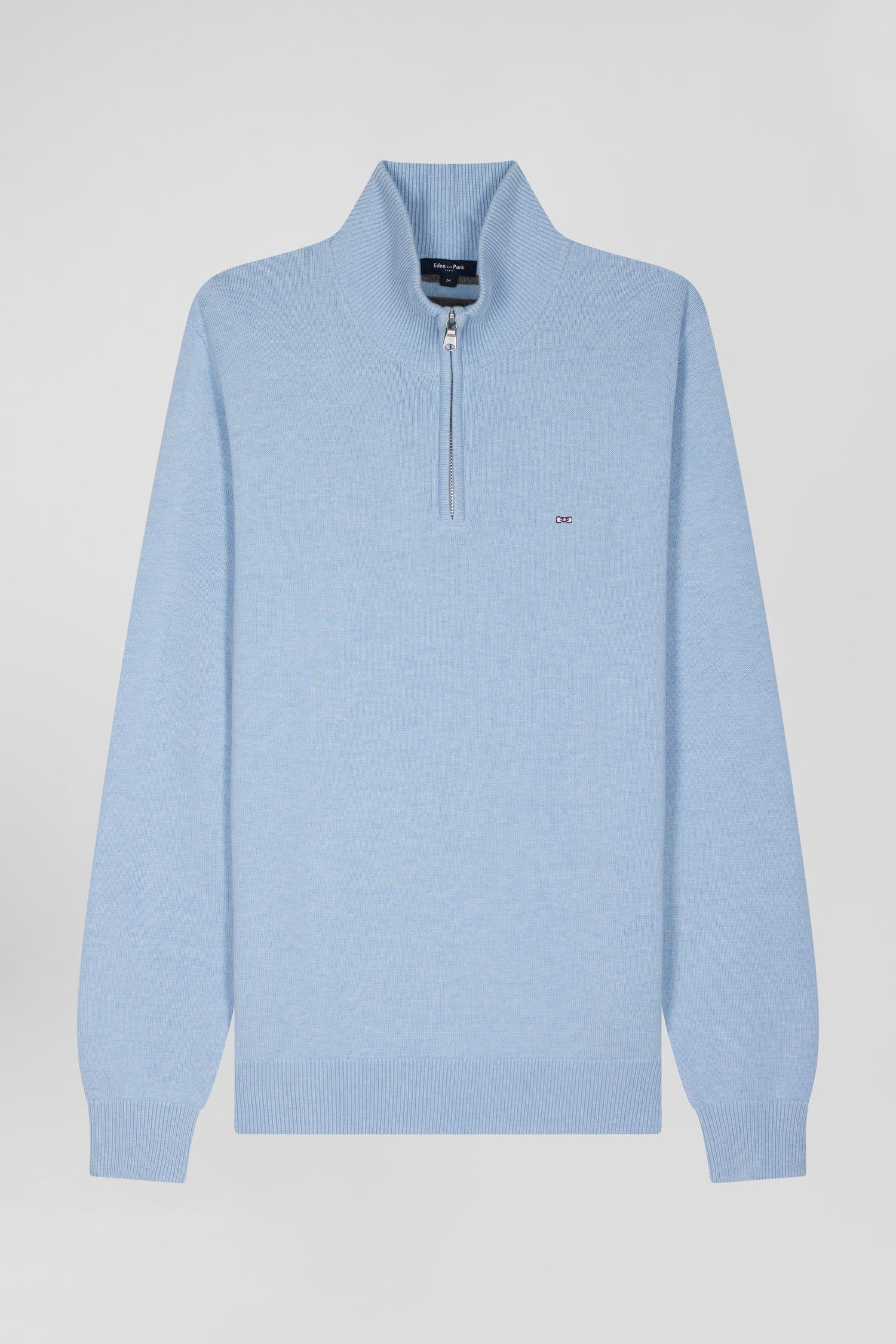 Pull col camionneur zippé en laine et coton ciel coupe Regular