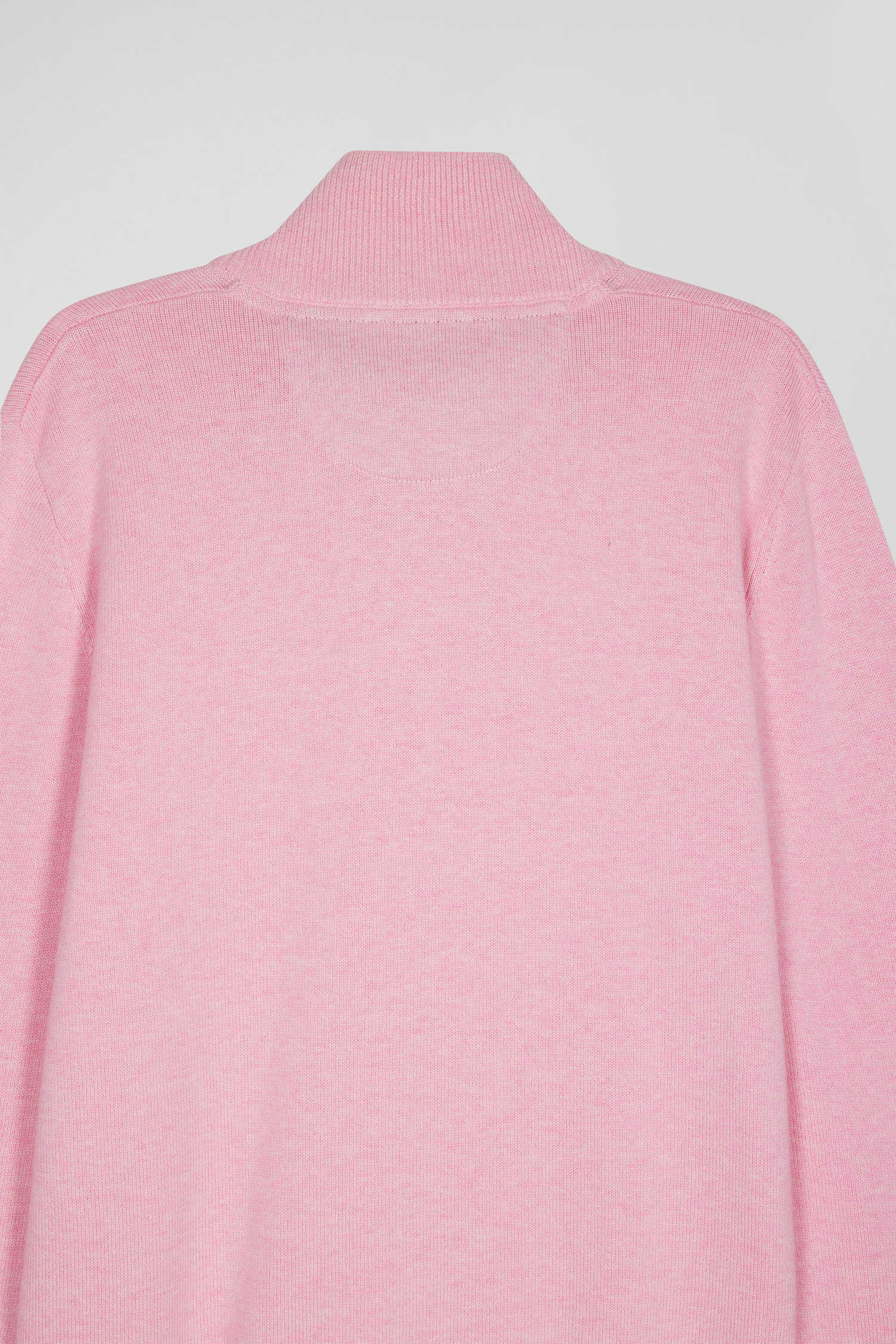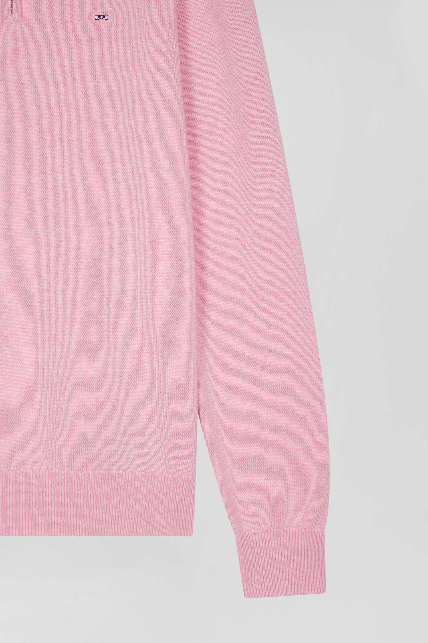 Pull col camionneur zippé en laine et coton rose coupe Regular