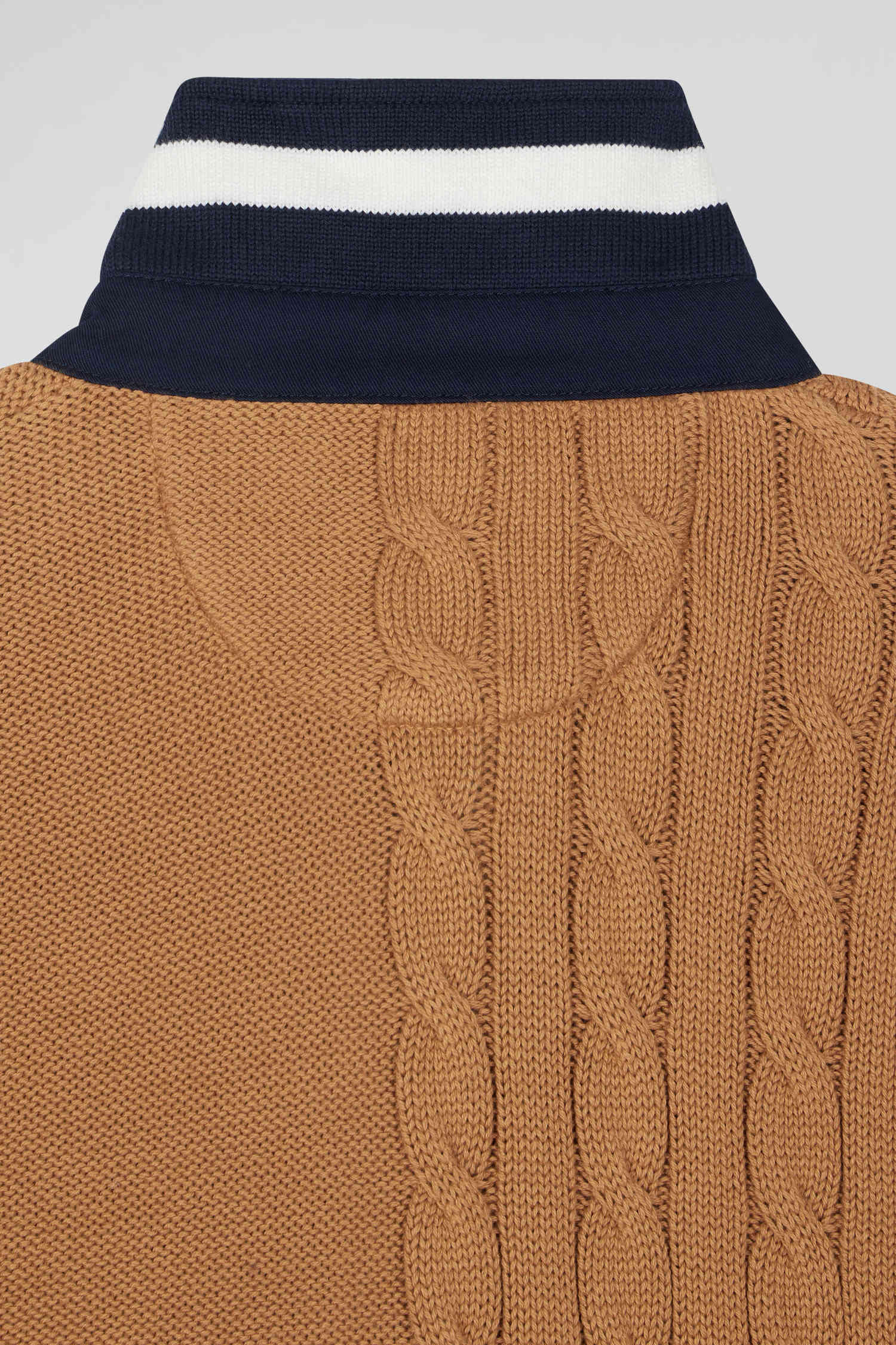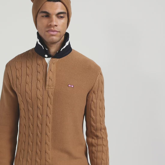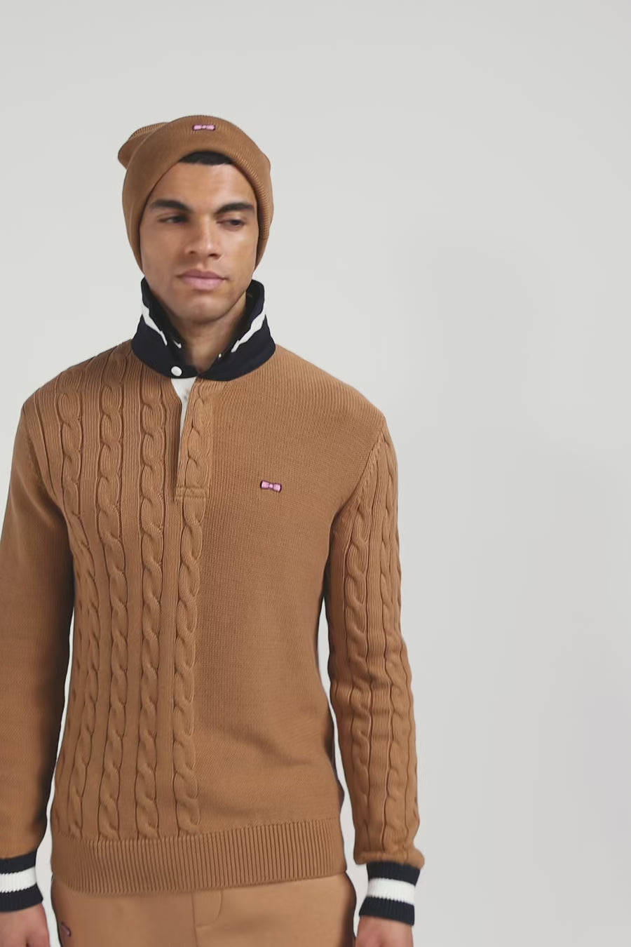 Optez pour l'élégance décontractée de ce pull homme à col maillot en twill. Sous son col, des rayures tricotées dévoilent une touche de distinction, tandis que la maille torsadée assemblée pour un effet de contraste à sa maille souple confère une texture riche et profonde à ce pull-over homme. Des finitions rayées aux poignets ajoutent un contraste audacieux, pour un look aussi intemporel que moderne.
