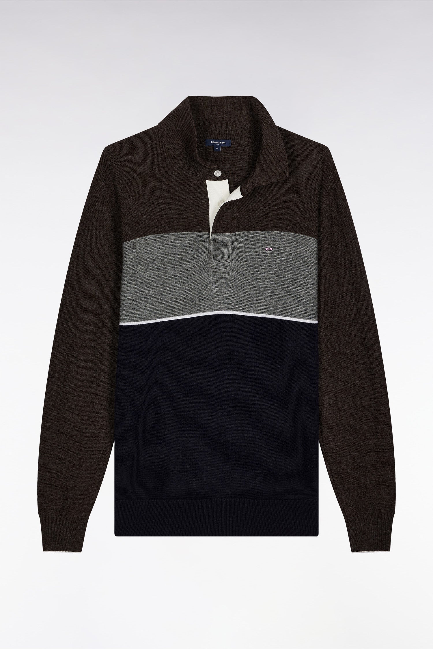 Ce pull col maillot mêle jeux de textures et finitions soignées. Disponible en deux coloris aux effets de contraste idéaux pour une allure sport-chic, il associe avec style plusieurs type de points, témoignant du savoir-faire de notre maison française dans le travail de la maille