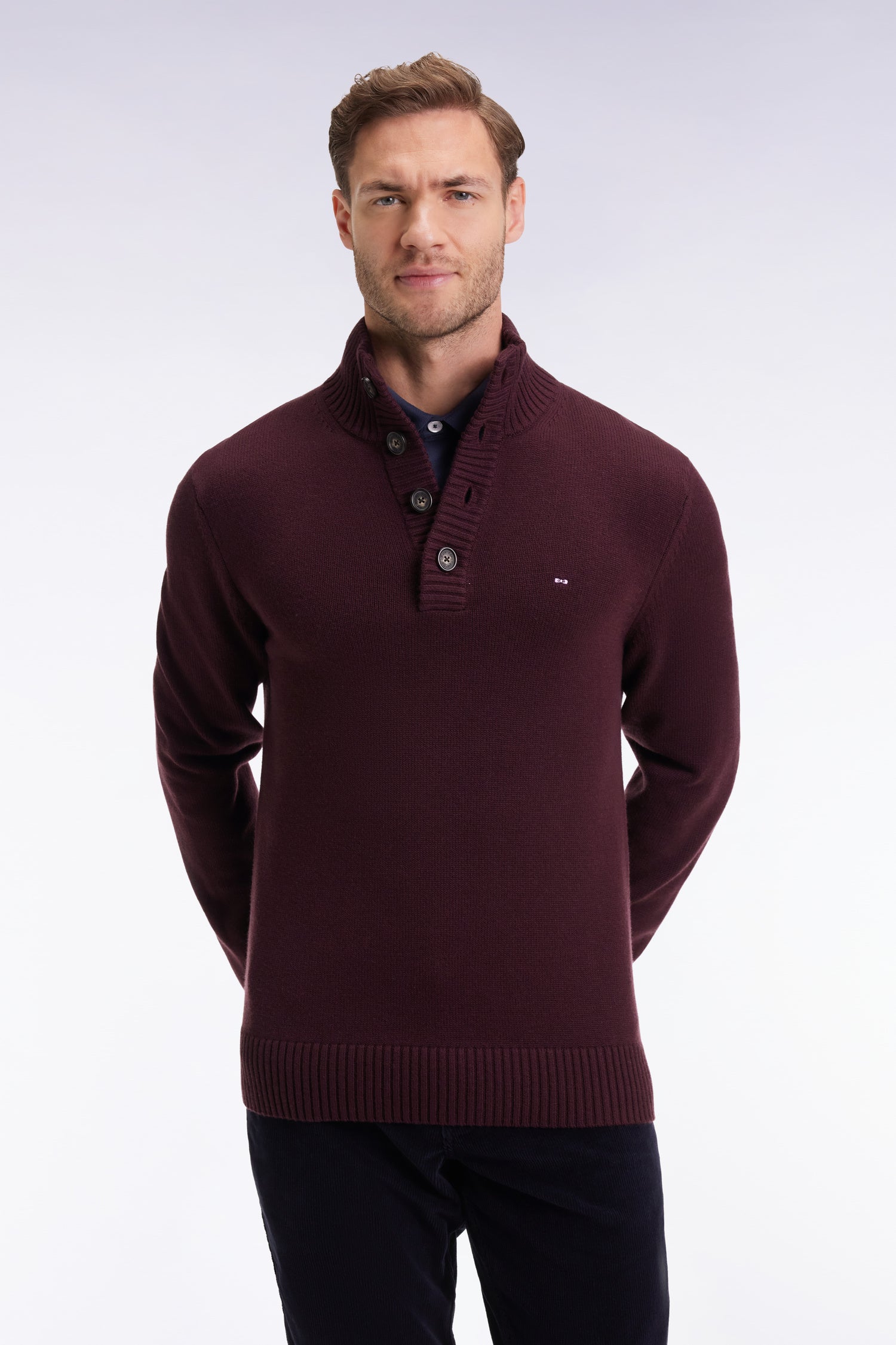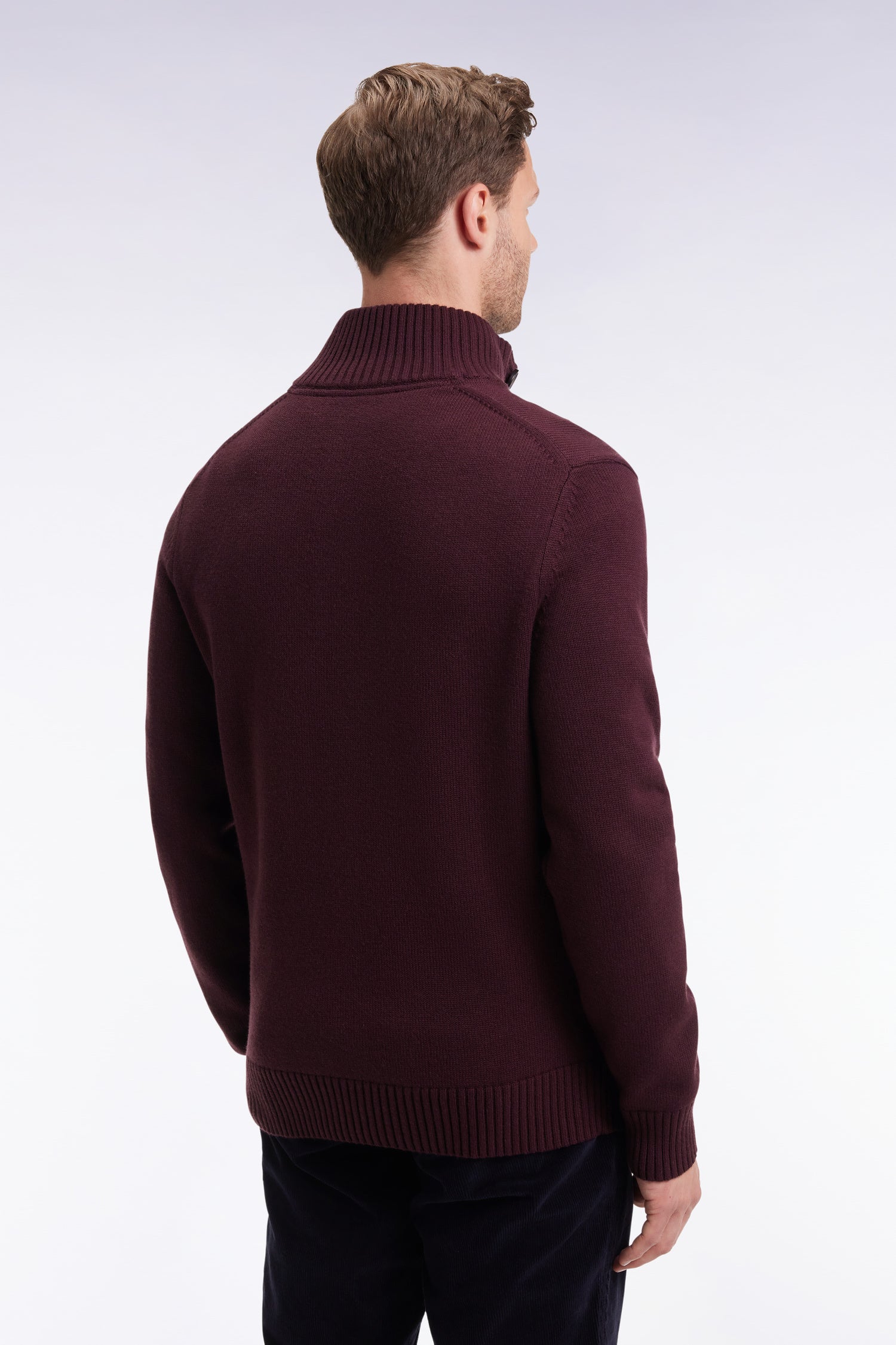 Pull col montant épais en laine et coton bordeaux