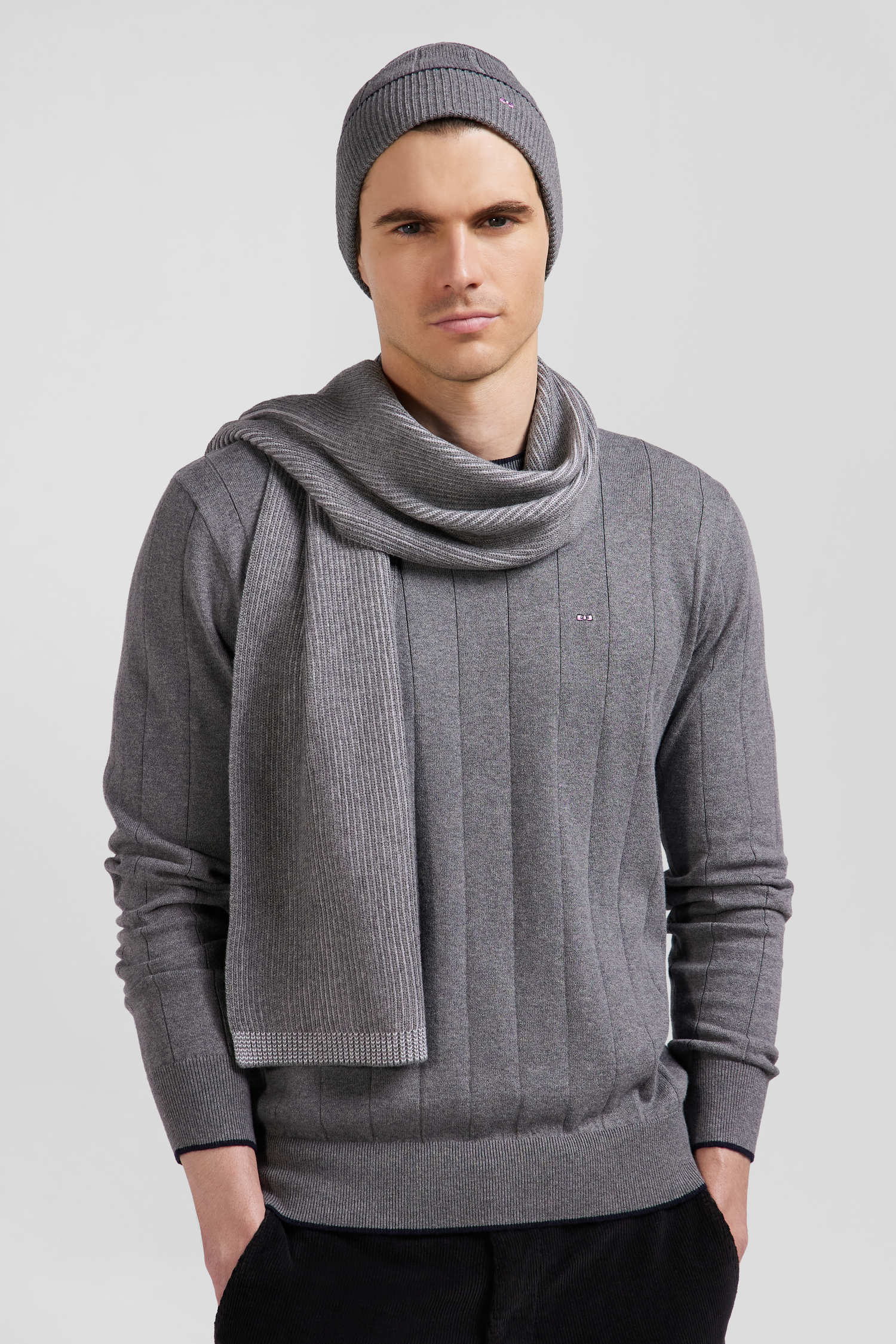 Ce pull homme col rond se distingue par son effet de rayures ton sur ton travaillé grâce à son tricotage et sa construction soignée. Confectionné en coton et cachemire pour plus de douceur et de chaleur, ce pull intemporel s'orne de notre indispensable broderie nœud papillon.
