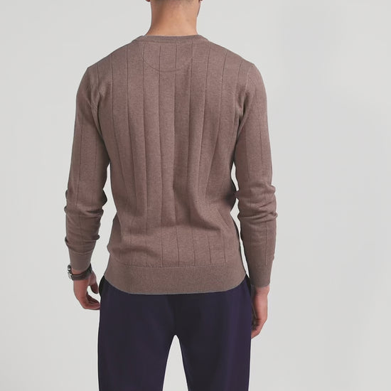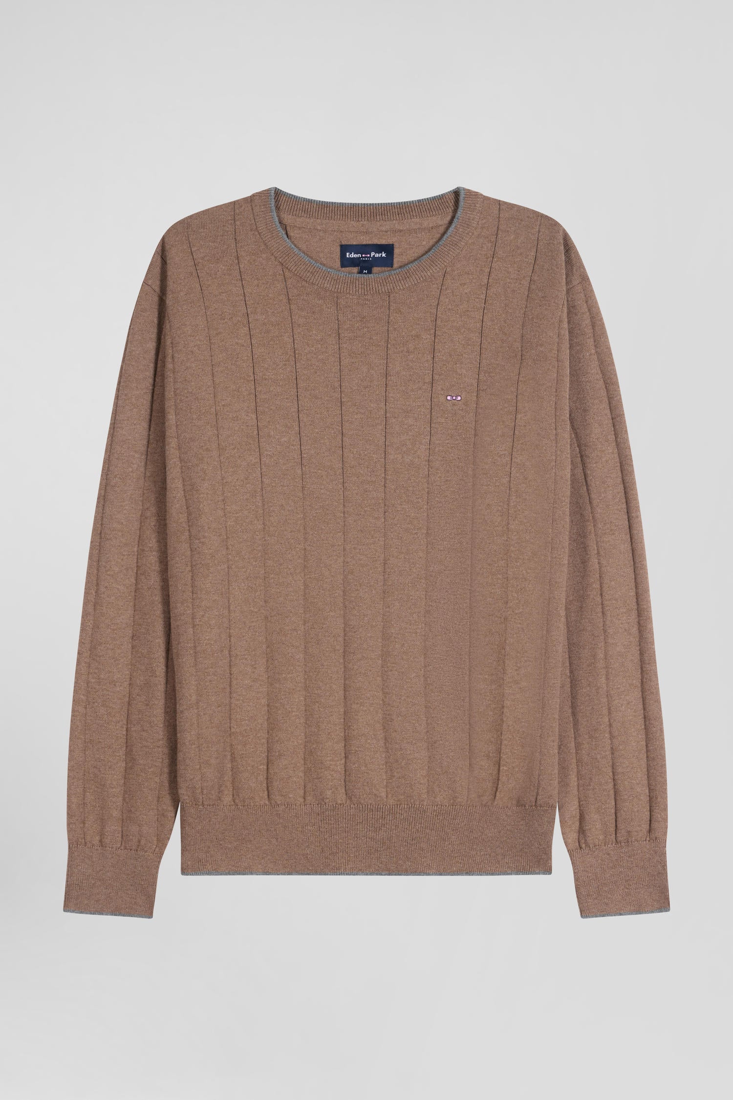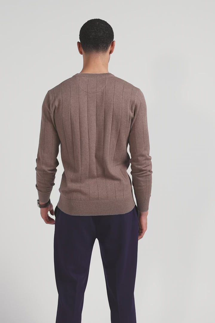Pull col rond en coton et cachemire marron coupe Regular