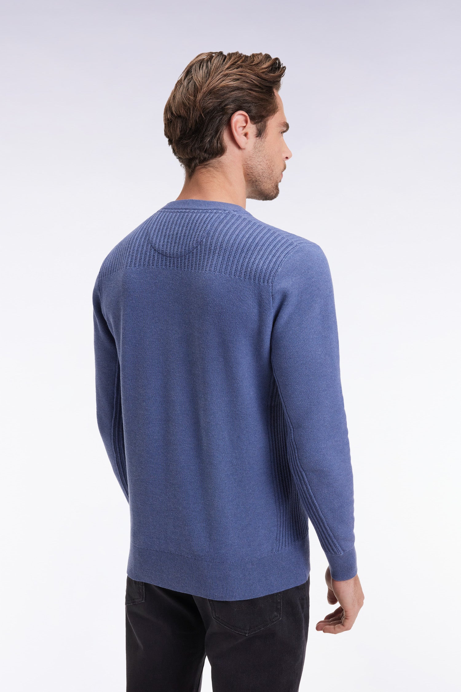Tricoté dans un coton en point nid d'abeille pour un effet texturé tout en légèreté, ce pull homme présente un détail de côtes sur le côté, les épaules et le dessous de manches. Confortable et polyvalent, ce modèle doté d'un col rond se décline dans toute une gamme de coloris classiques. Un essentiel à porter saison après saison