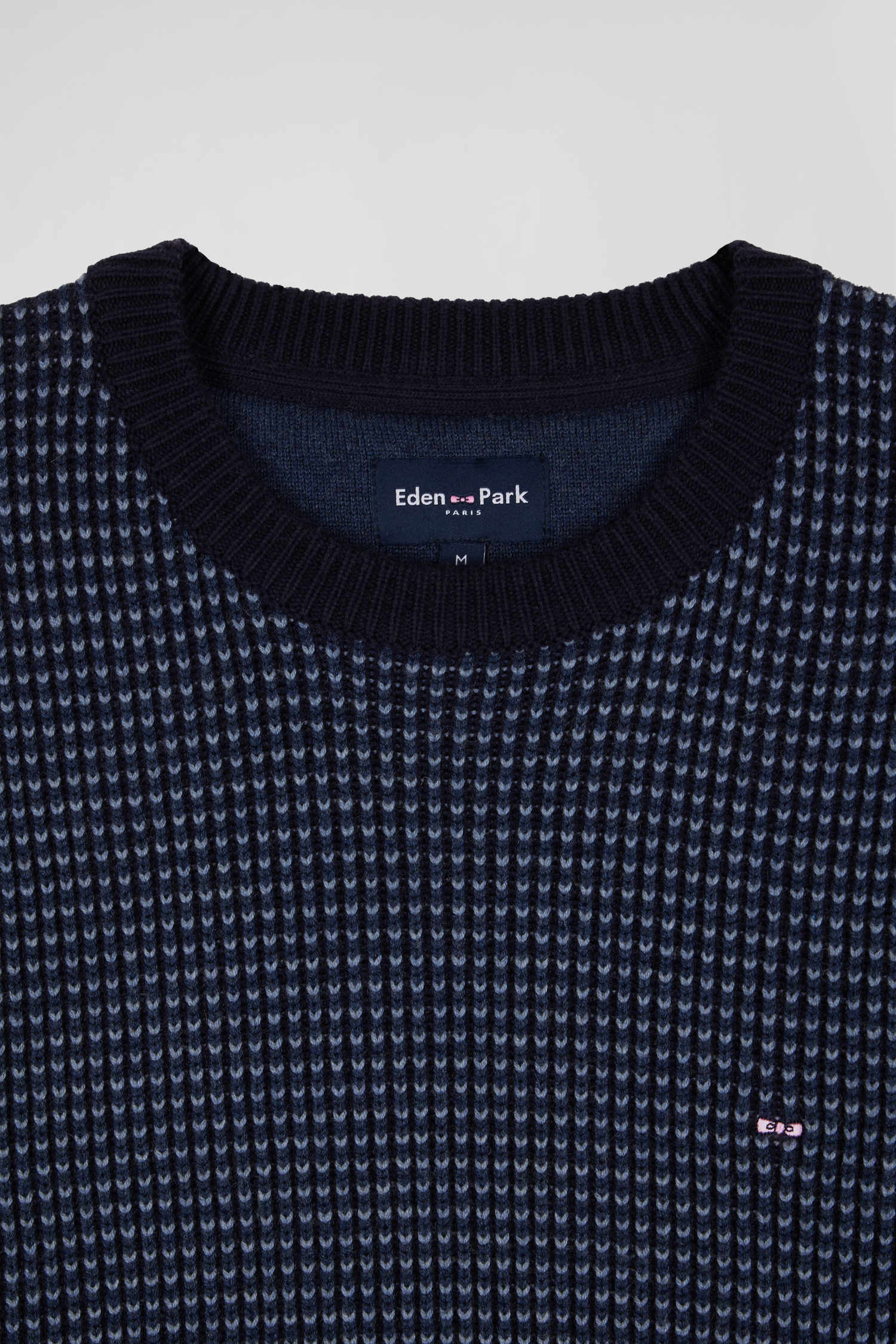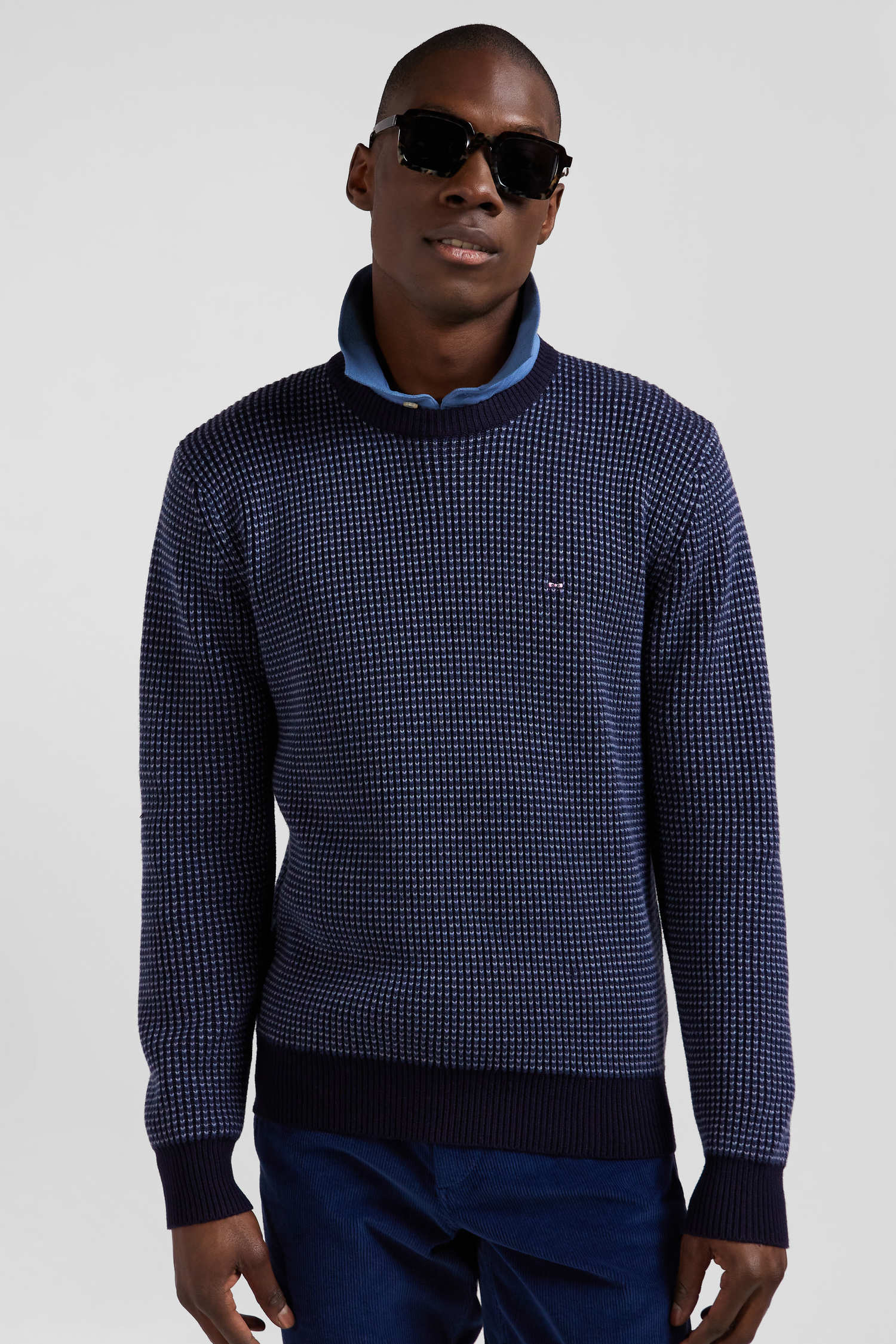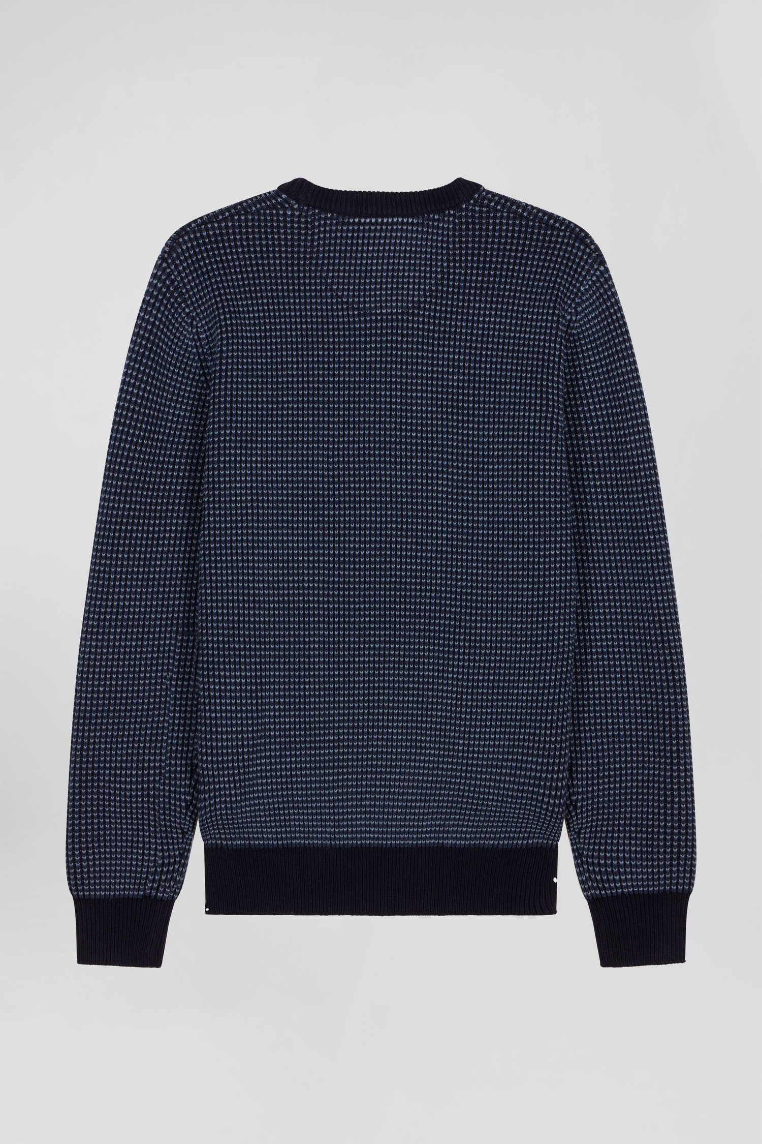 Pull col rond en laine et coton bleu marine coupe Regular