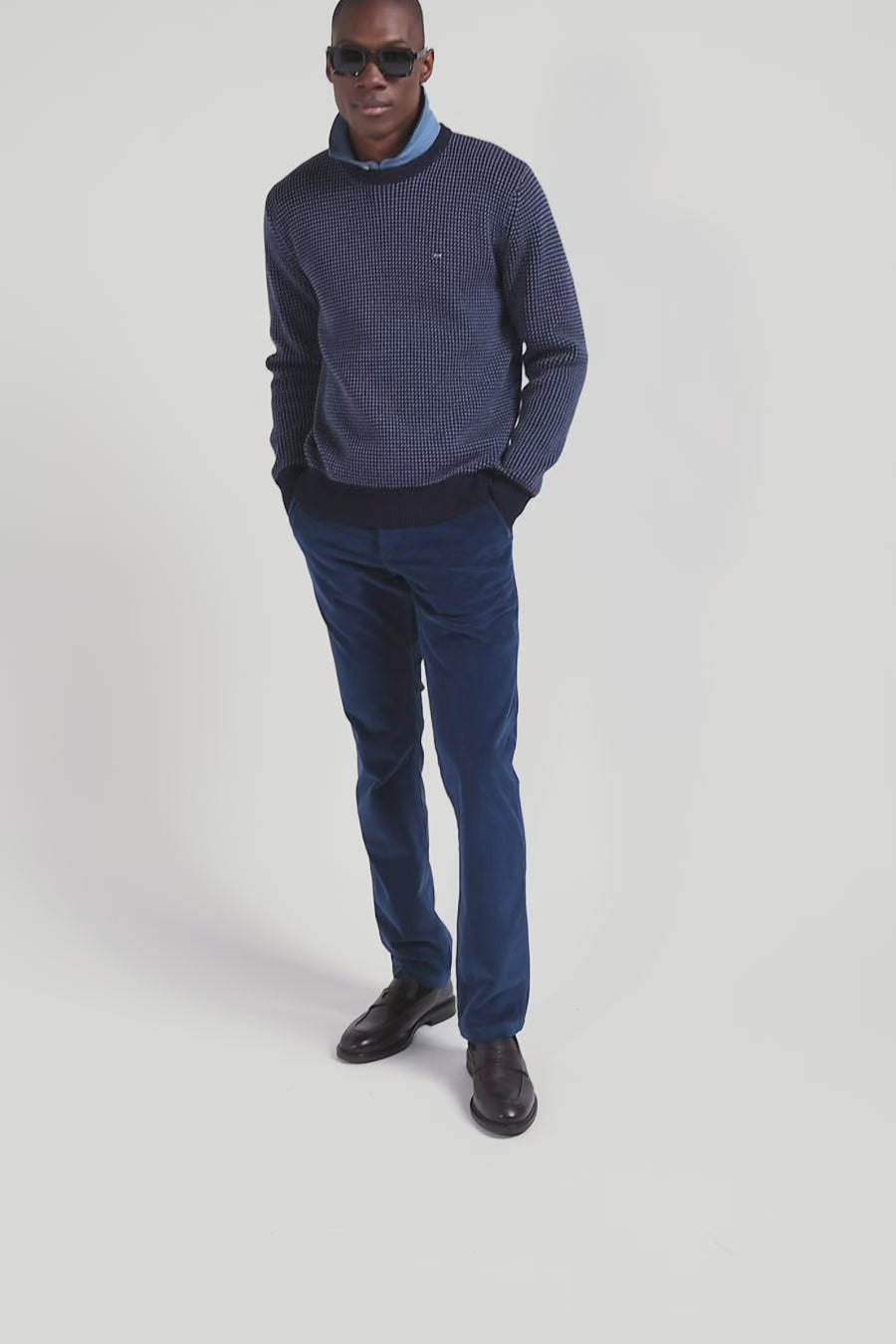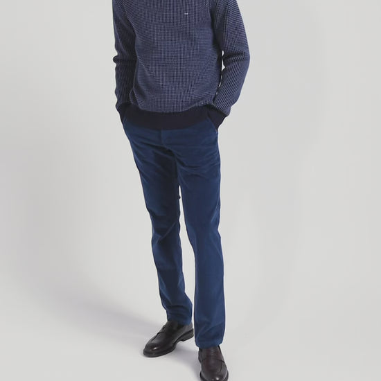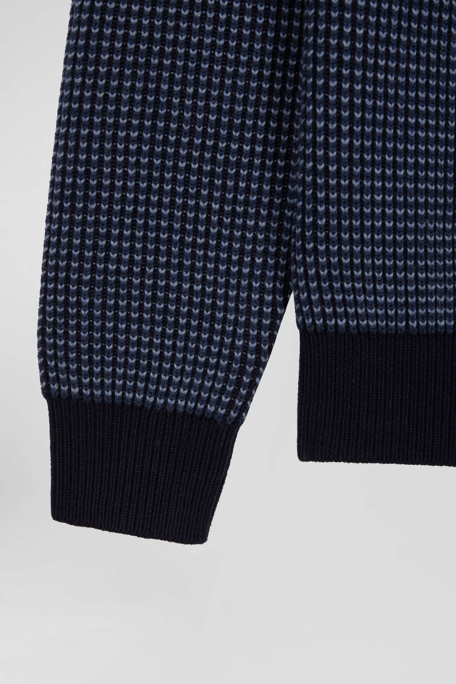 Pull col rond en laine et coton bleu marine coupe Regular