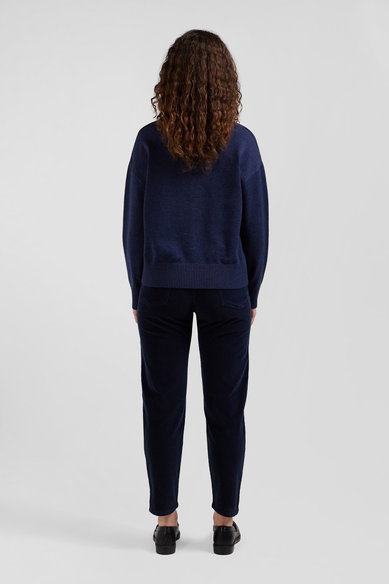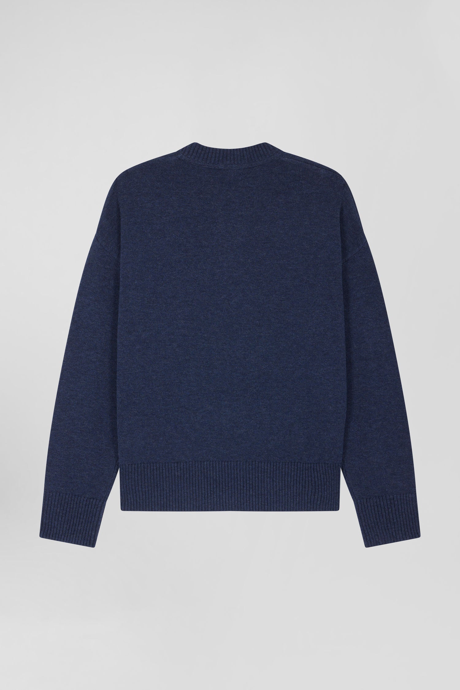 Pull col rond en laine et coton bleu marine coupe Relaxed