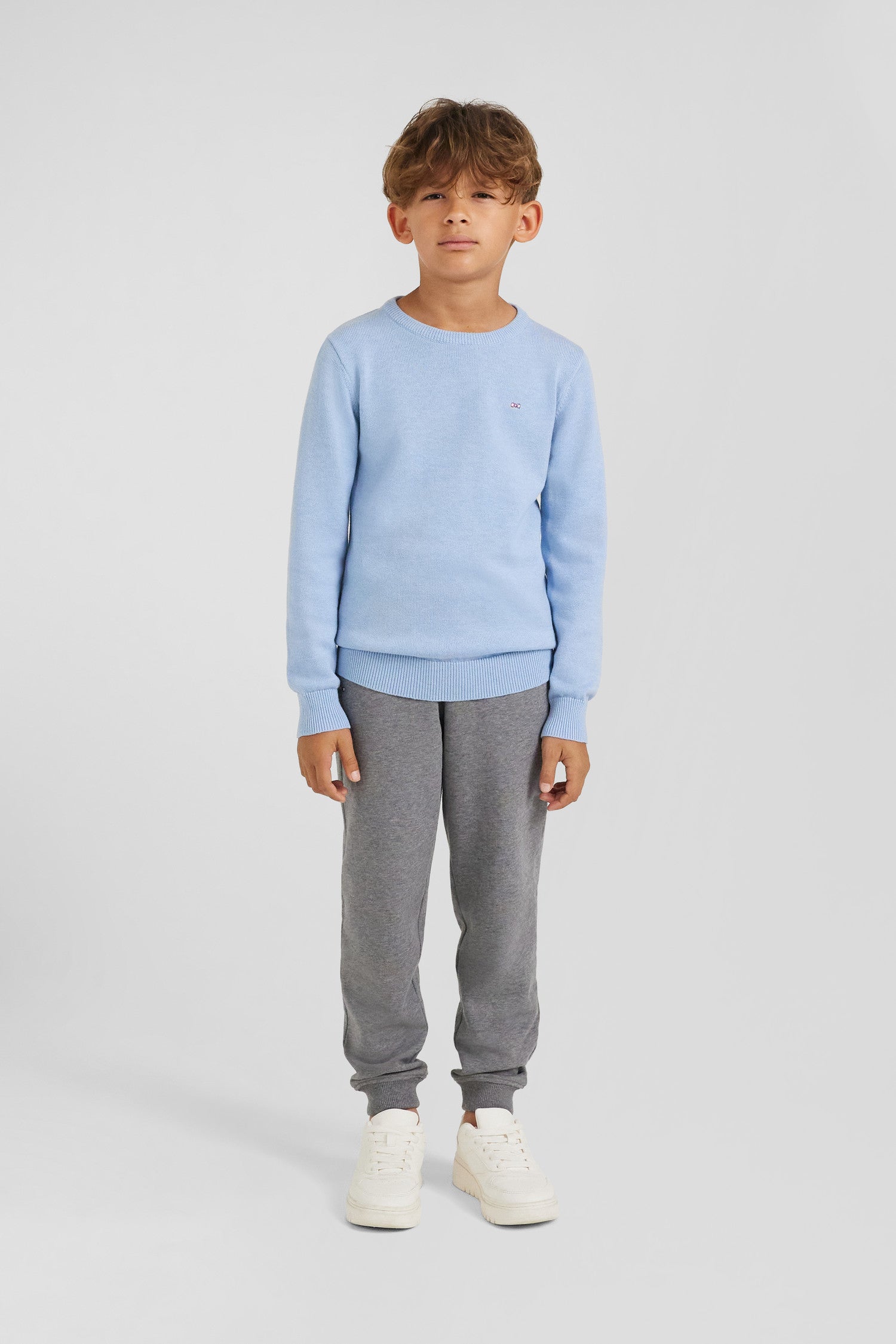 Parfait pour les transitions de saison, notre pull pour enfant en coton et laine à col rond est léger mais chaud. Dans son coloris ciel doux, il est aussi pratique que mignon, idéal pour superposer à un T-shirt ou à porter seul à même la peau.