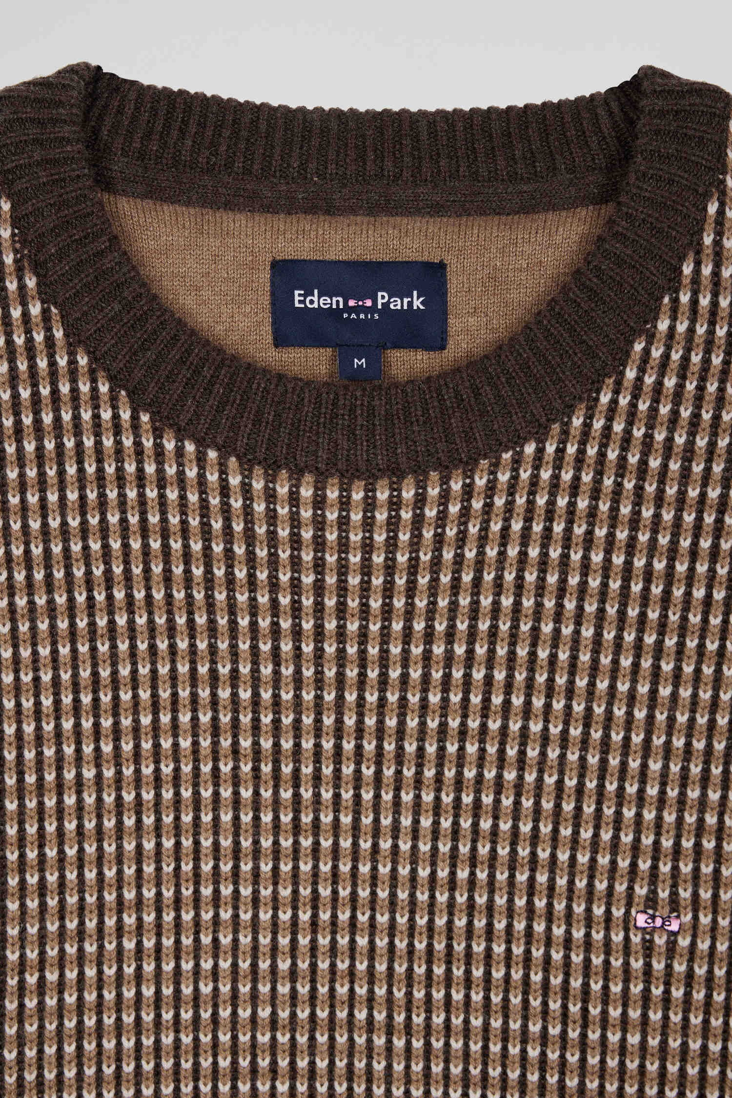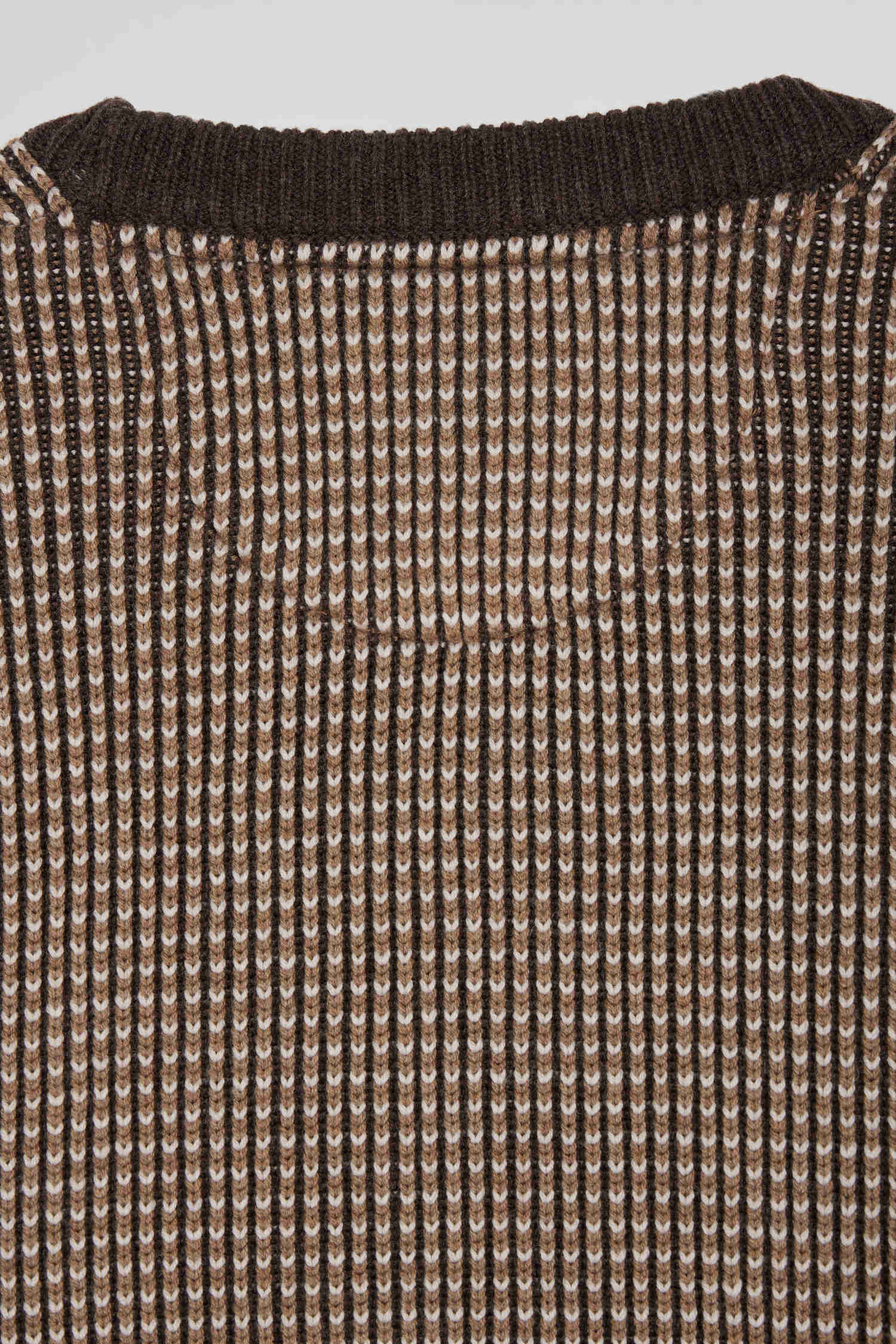 Pull col rond en laine et coton marron coupe Regular