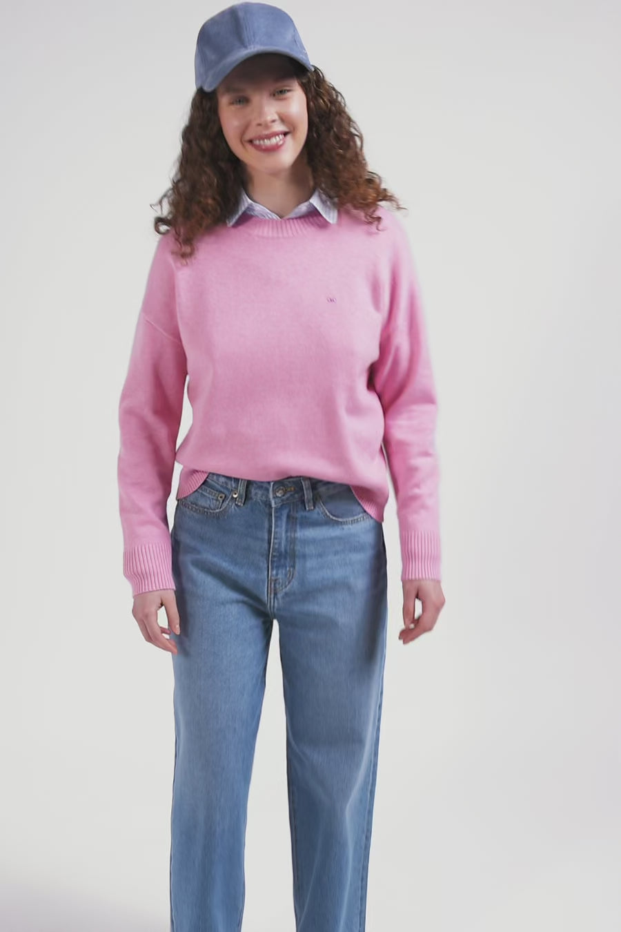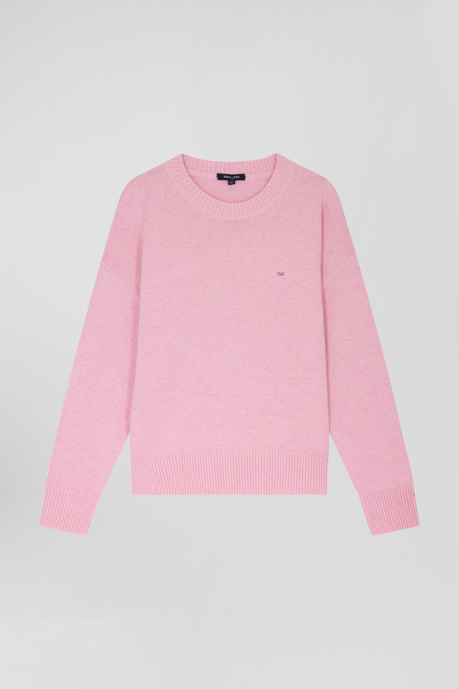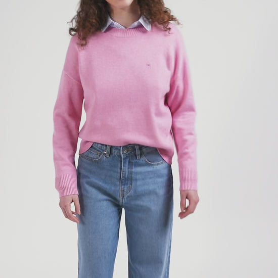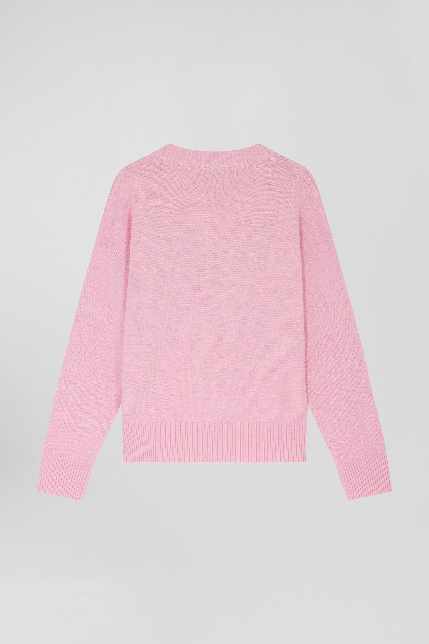 Pull col rond en laine et coton rose coupe Relaxed