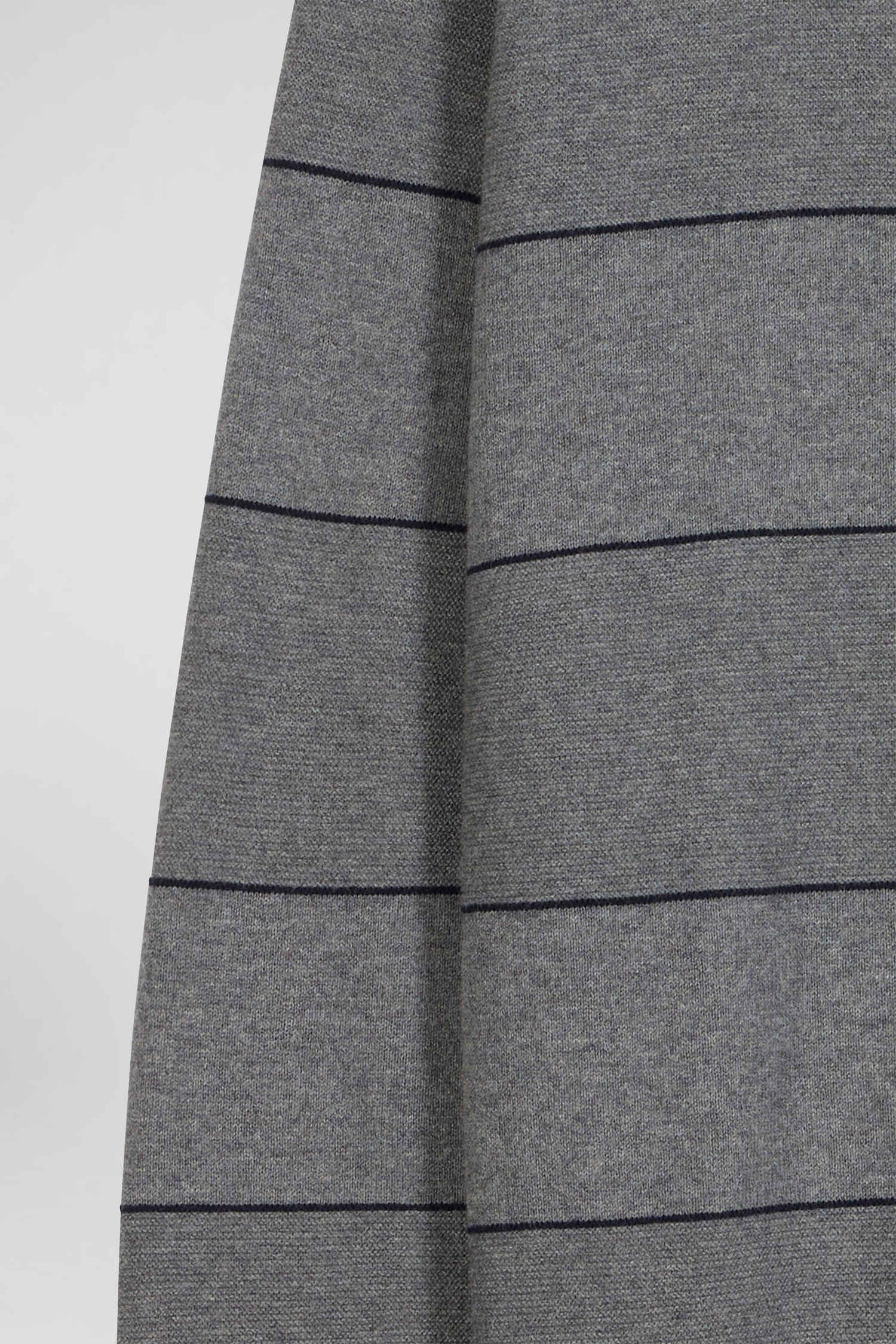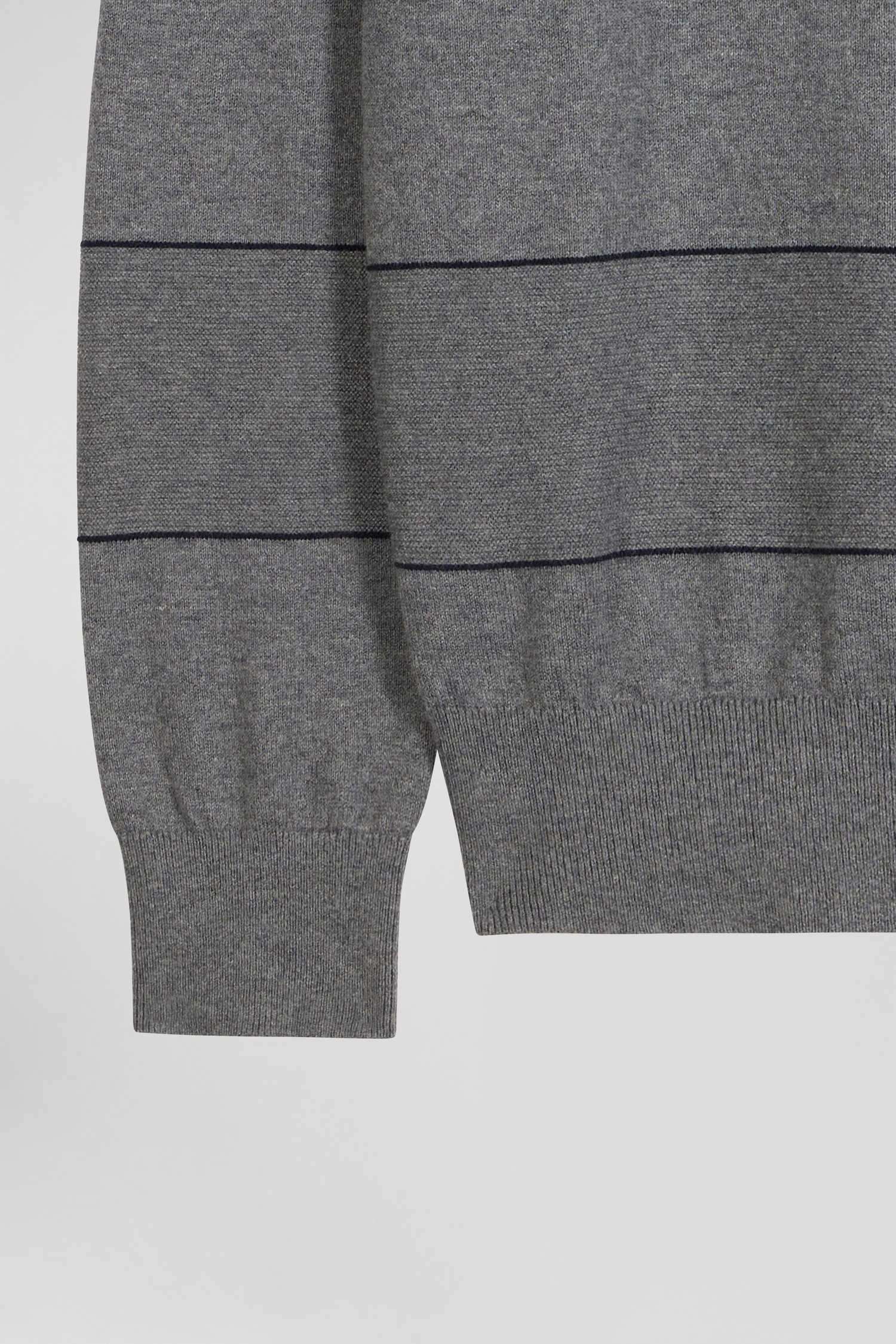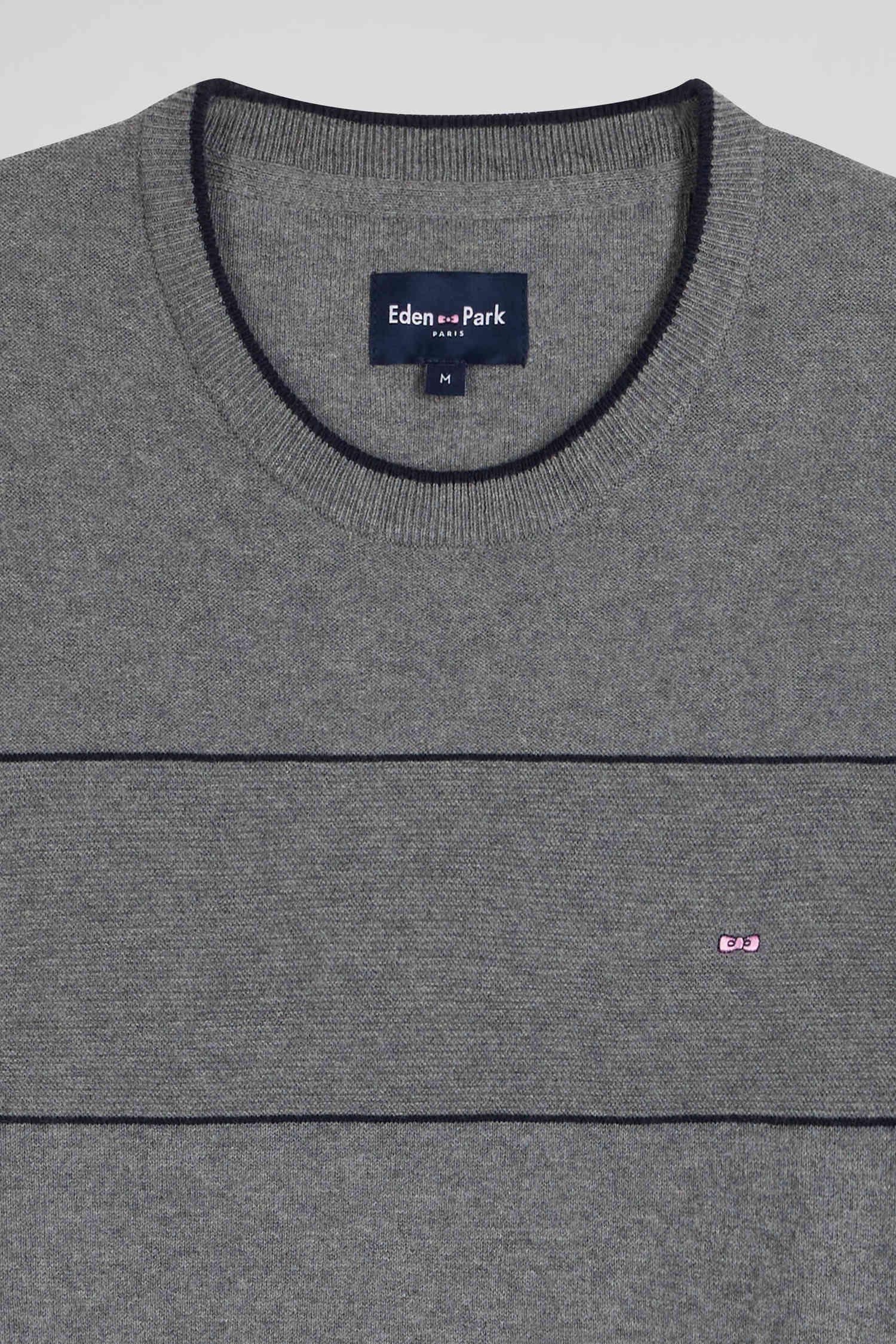 Pull col rond rayé en coton et cachemire gris coupe Regular