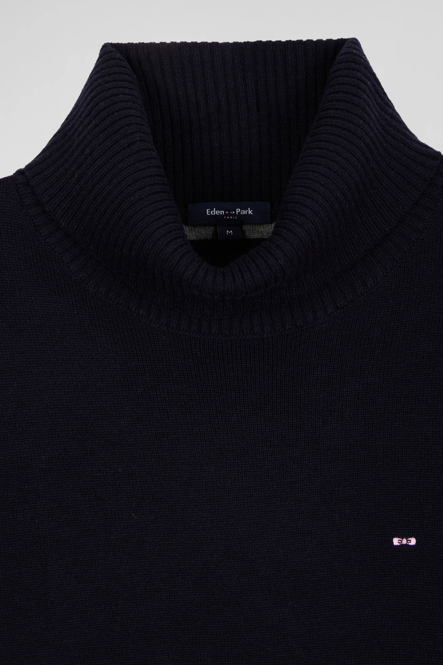 Pull col roulé en laine et coton bleu marine coupe Regular