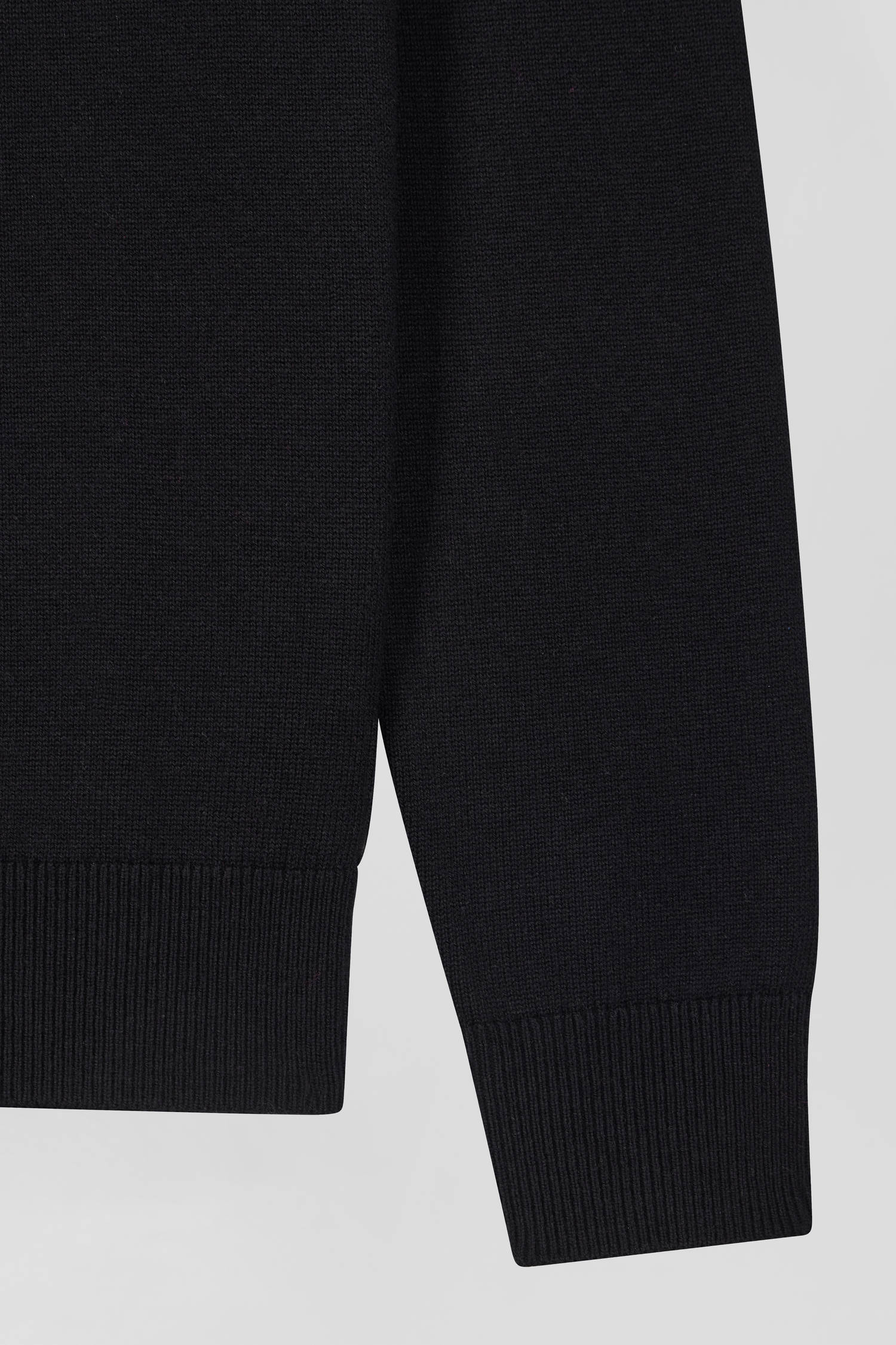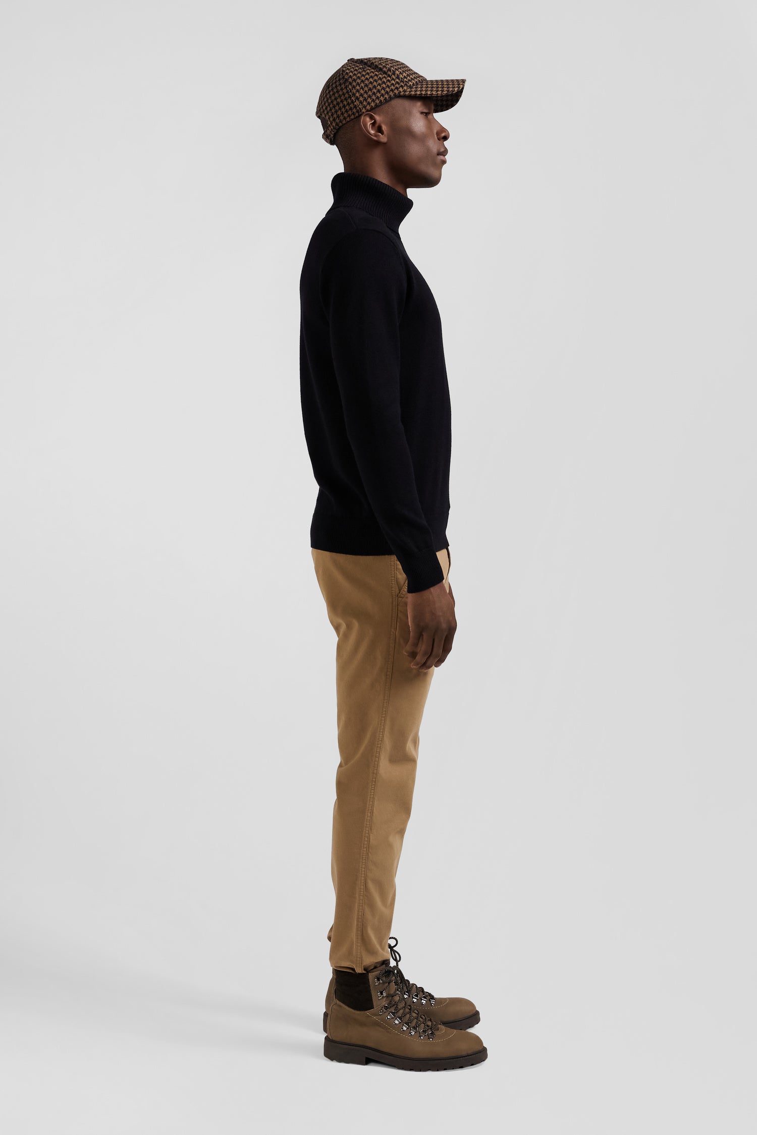 Chaleur et style se rencontrent dans ce pull col roulé, essentiel intemporel de tout vestiaire. Conçu dans un mélange noble de laine et de coton, il offre douceur et confort tout au long de la journée. Le subtil contraste de sa demie lune intérieure rayée ajoute une signature discrète et élégante à ce col roulé proposé dans une vaste gamme de coloris.