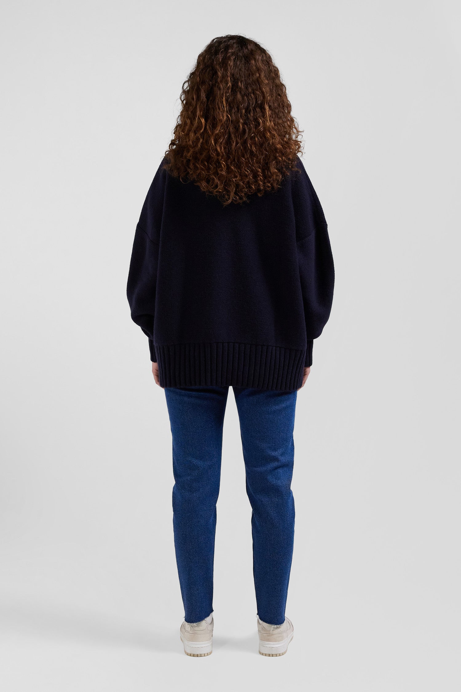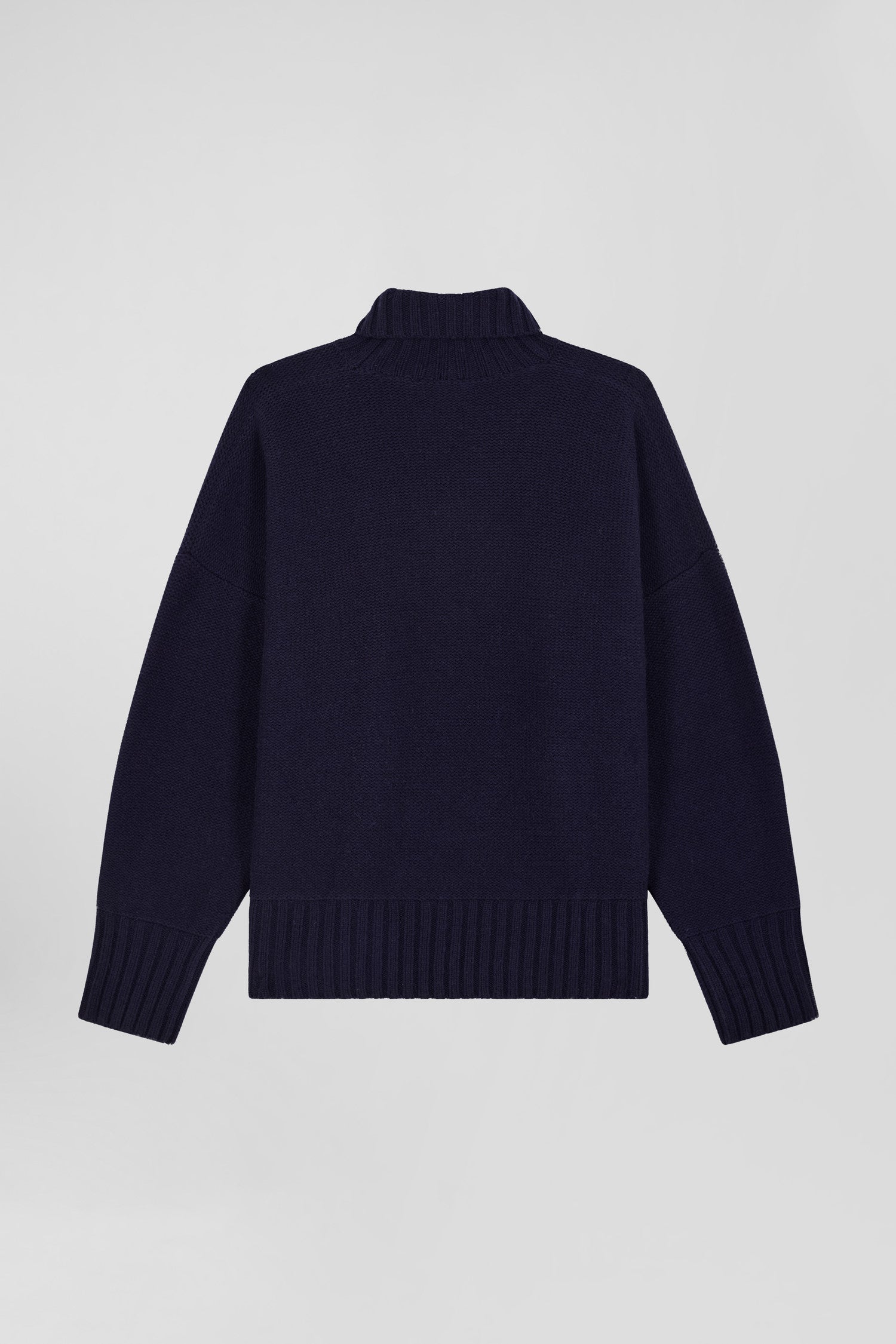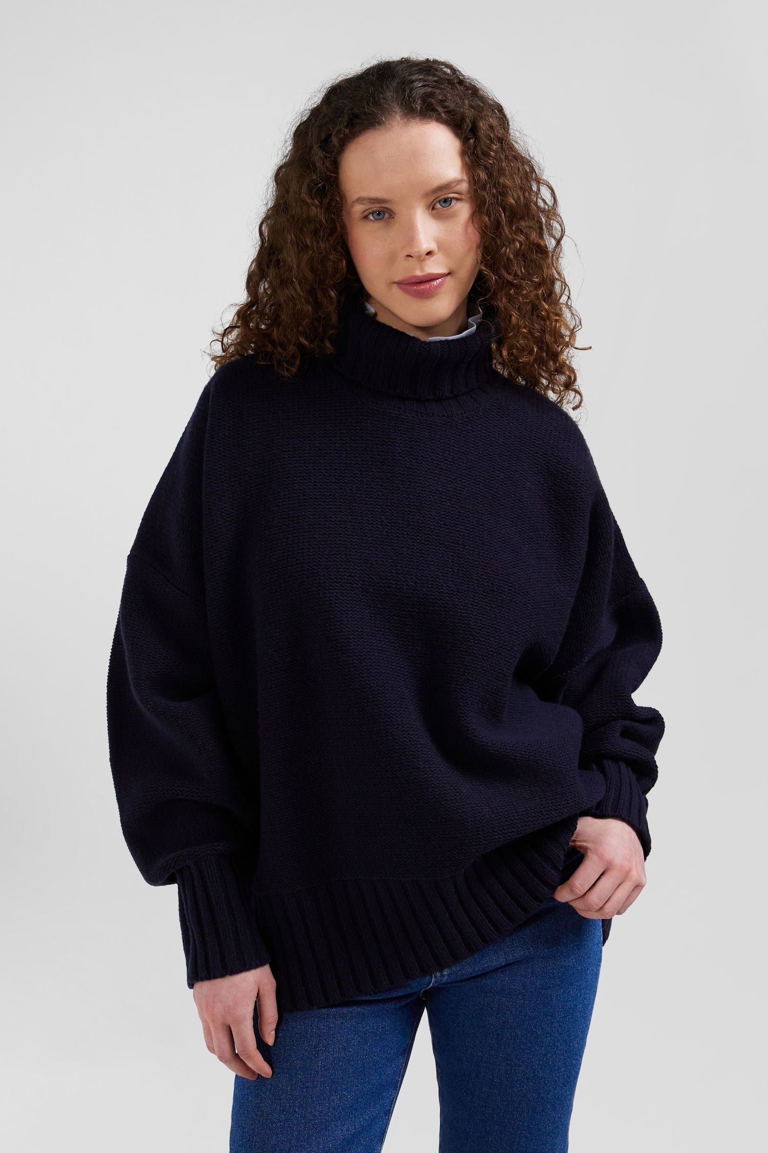 Pull col roulé en laine mélangée bleu marine coupe Oversized