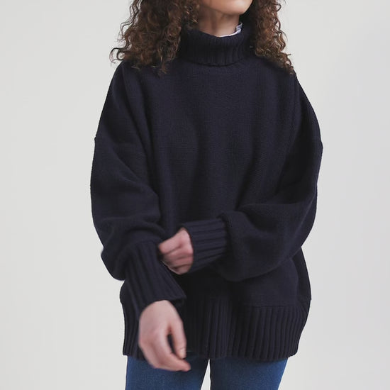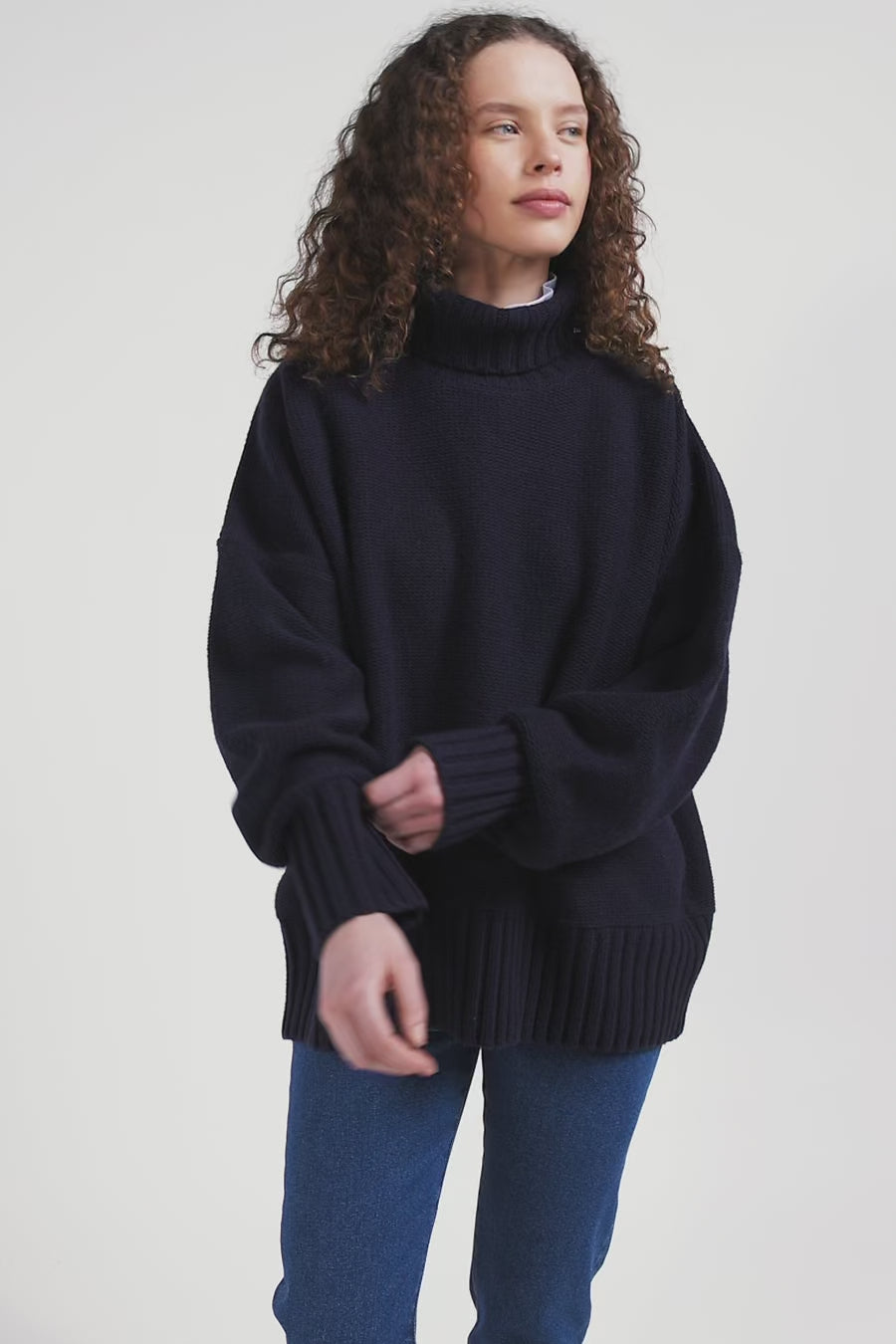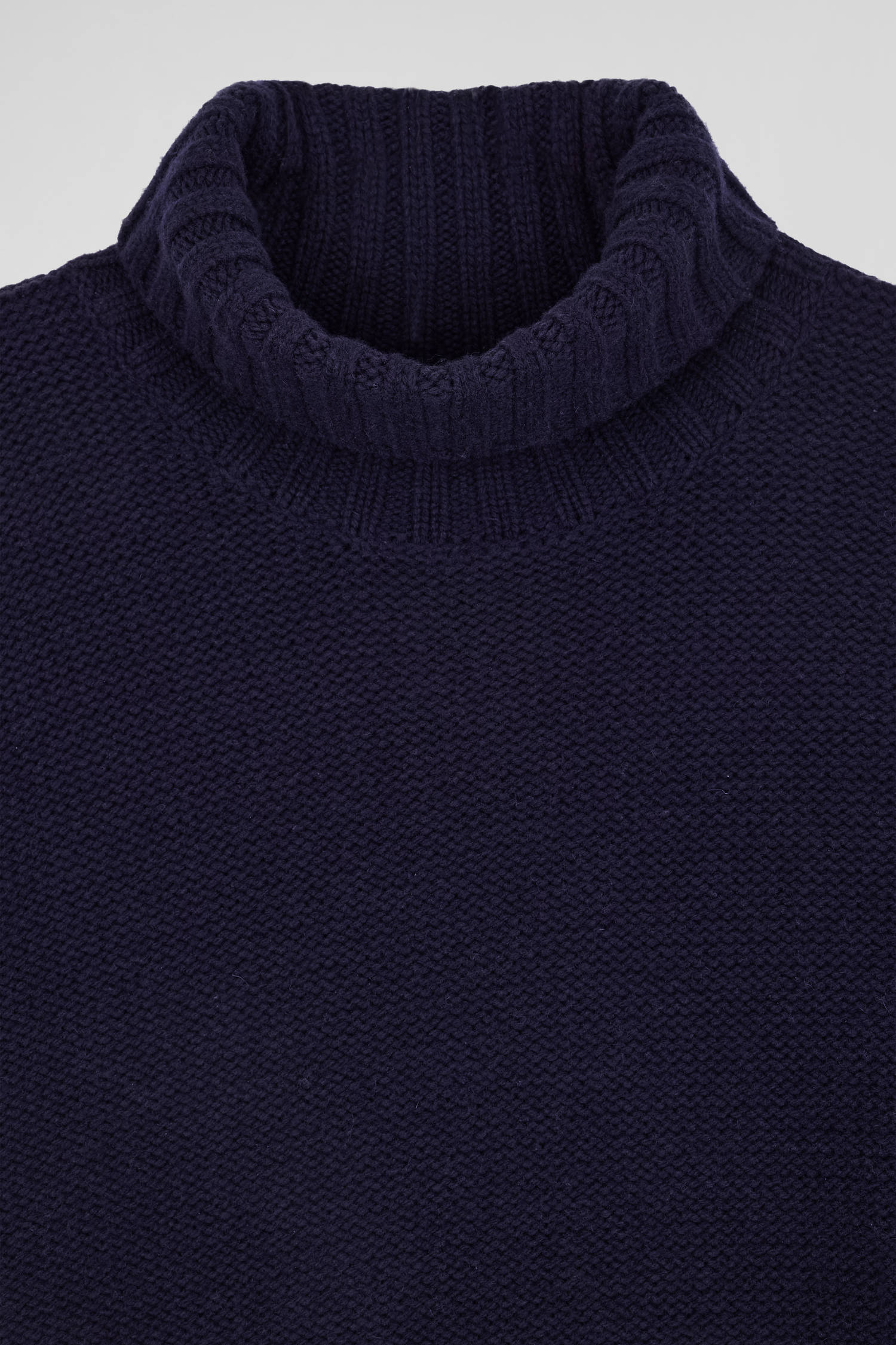 Pull col roulé en laine mélangée bleu marine coupe Oversized