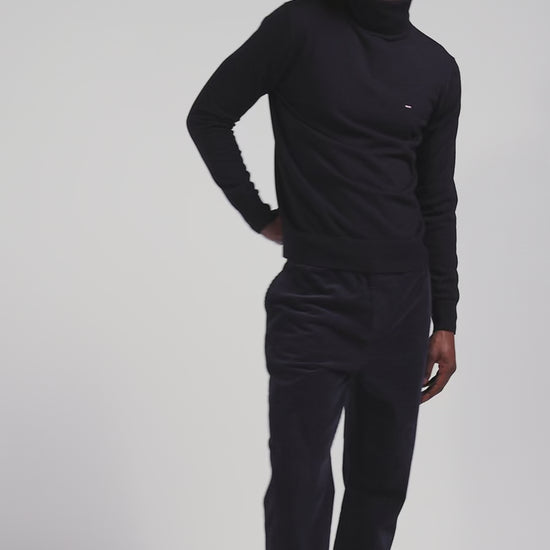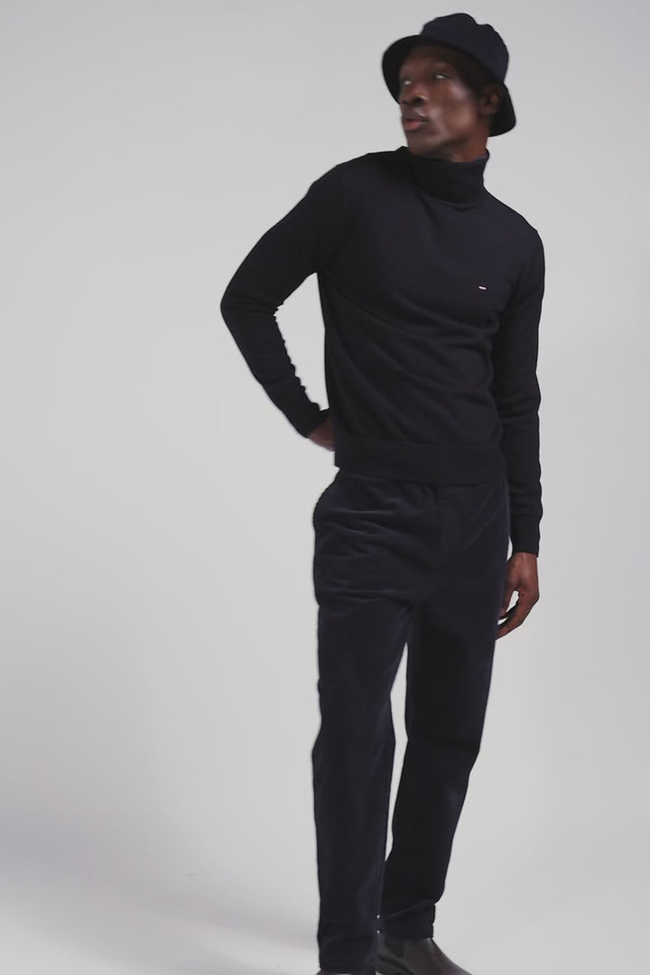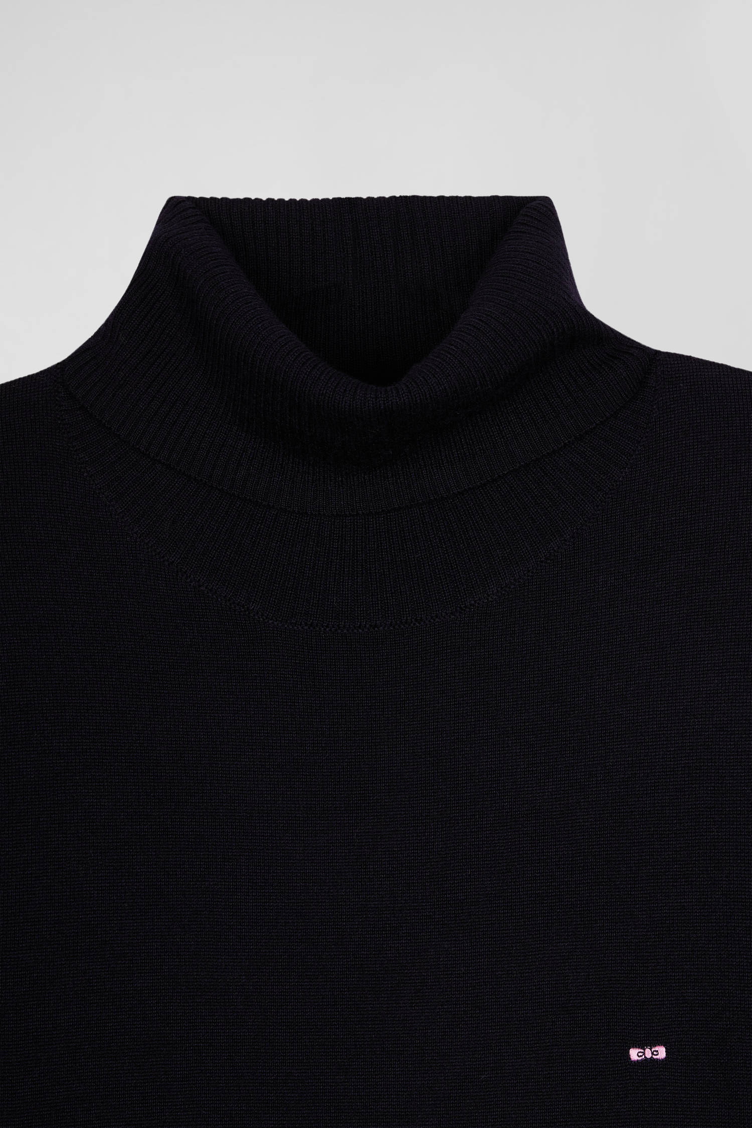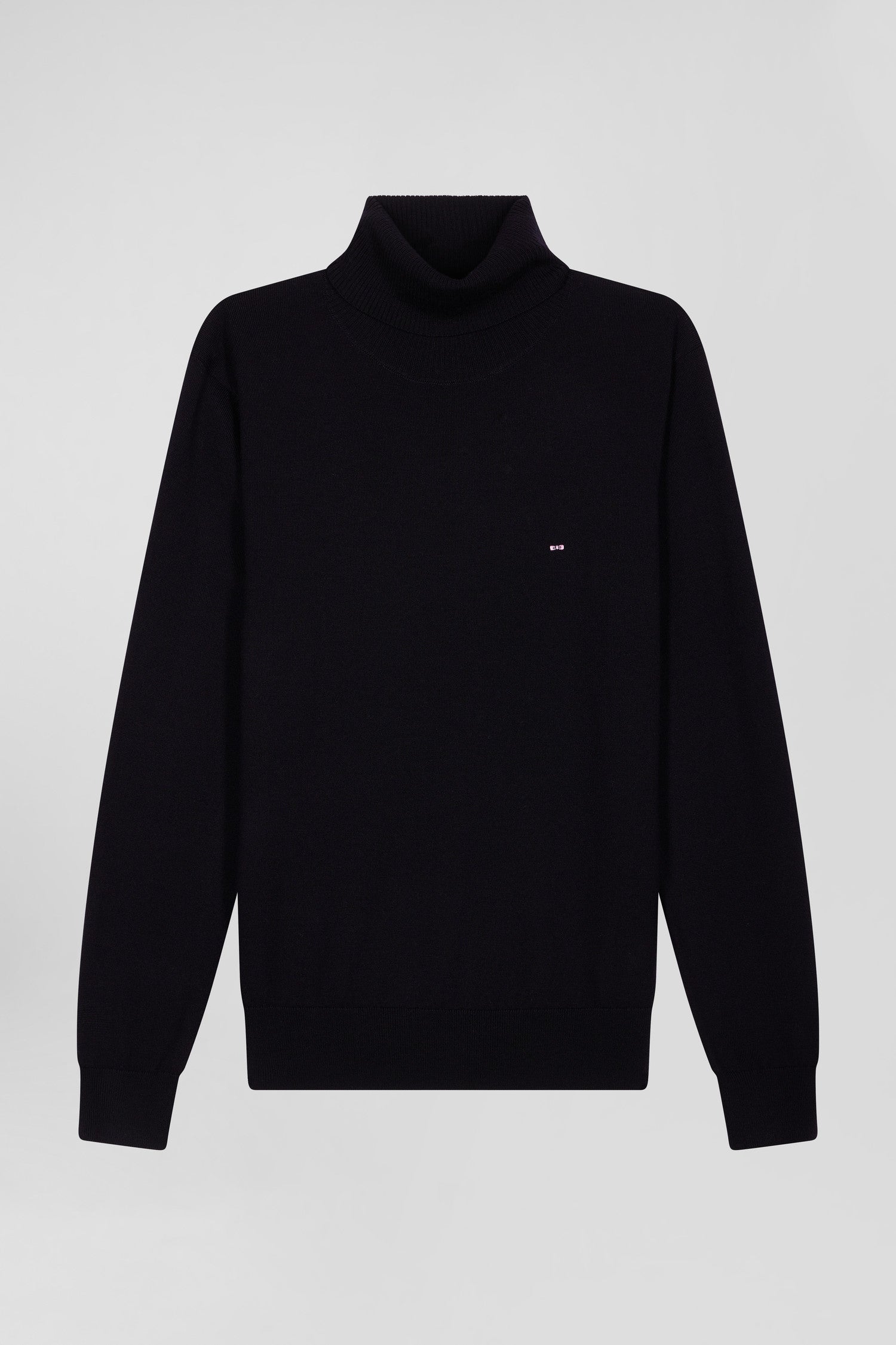 Pull col roulé en laine mérinos bleu marine coupe Regular