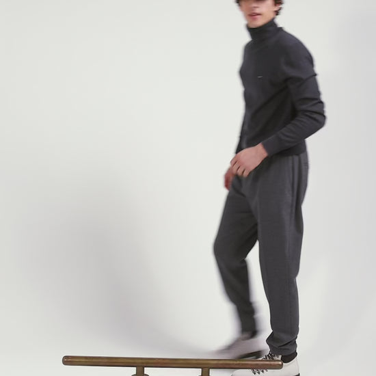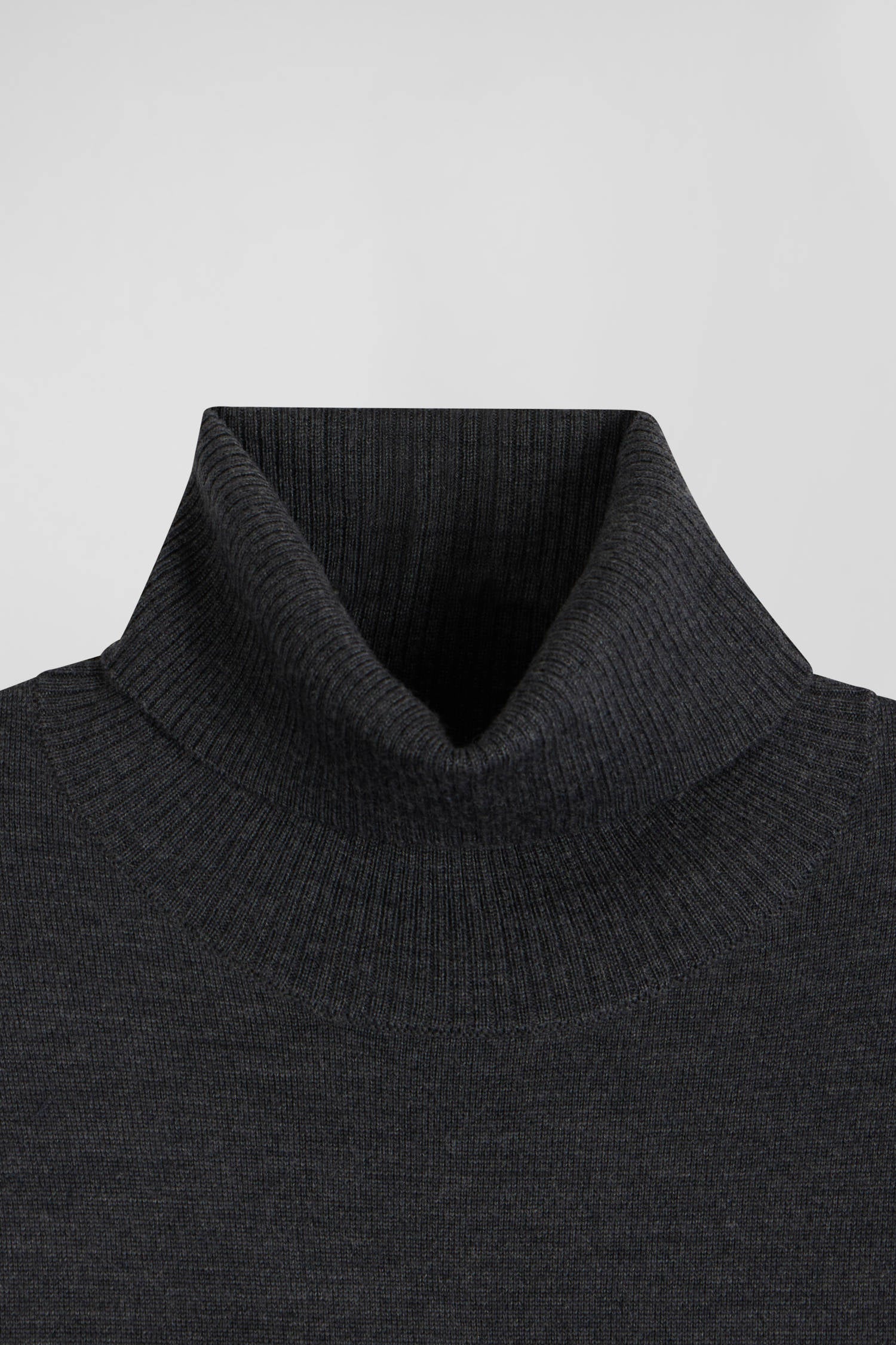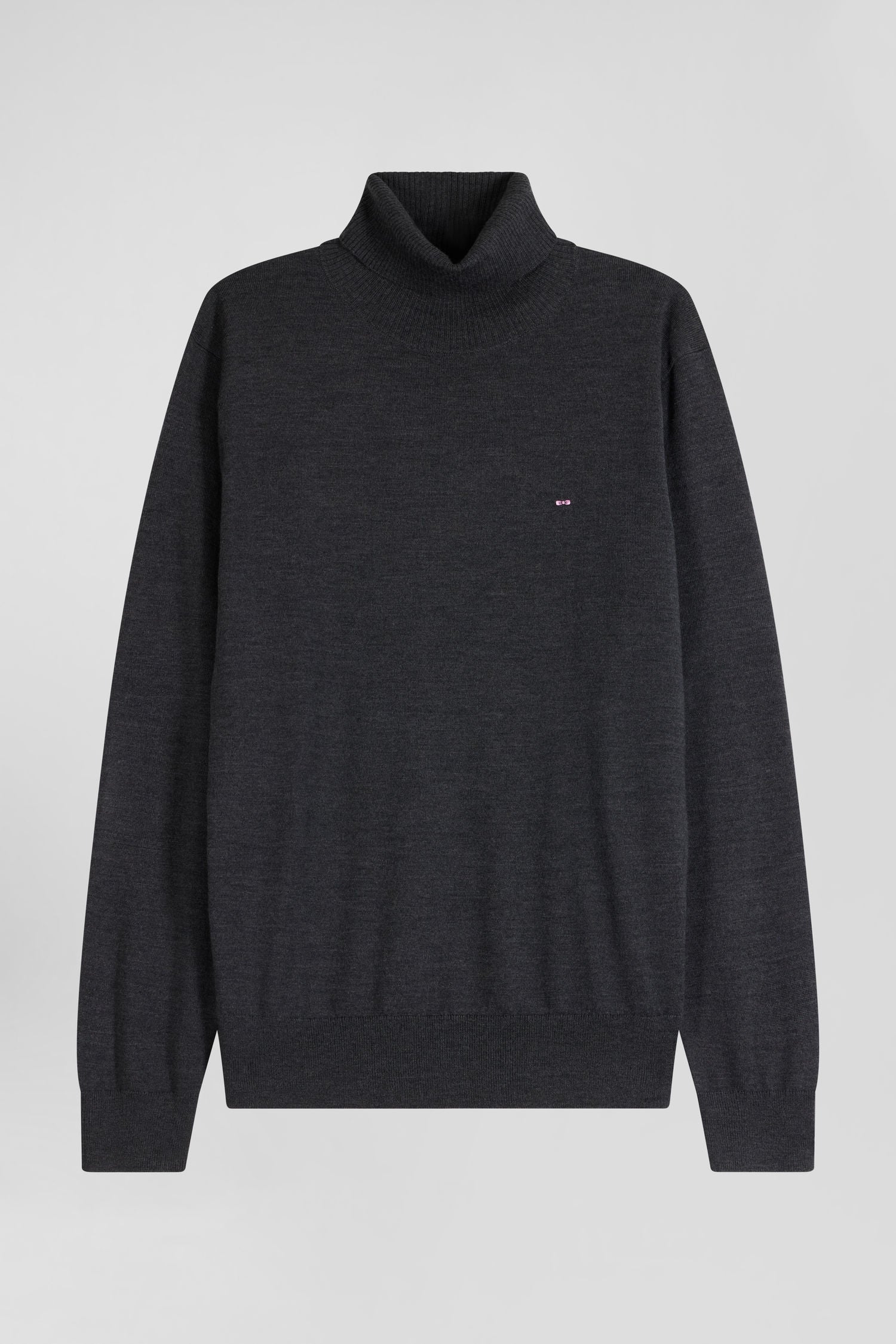 Pull col roulé en laine mérinos gris anthracite coupe Regular