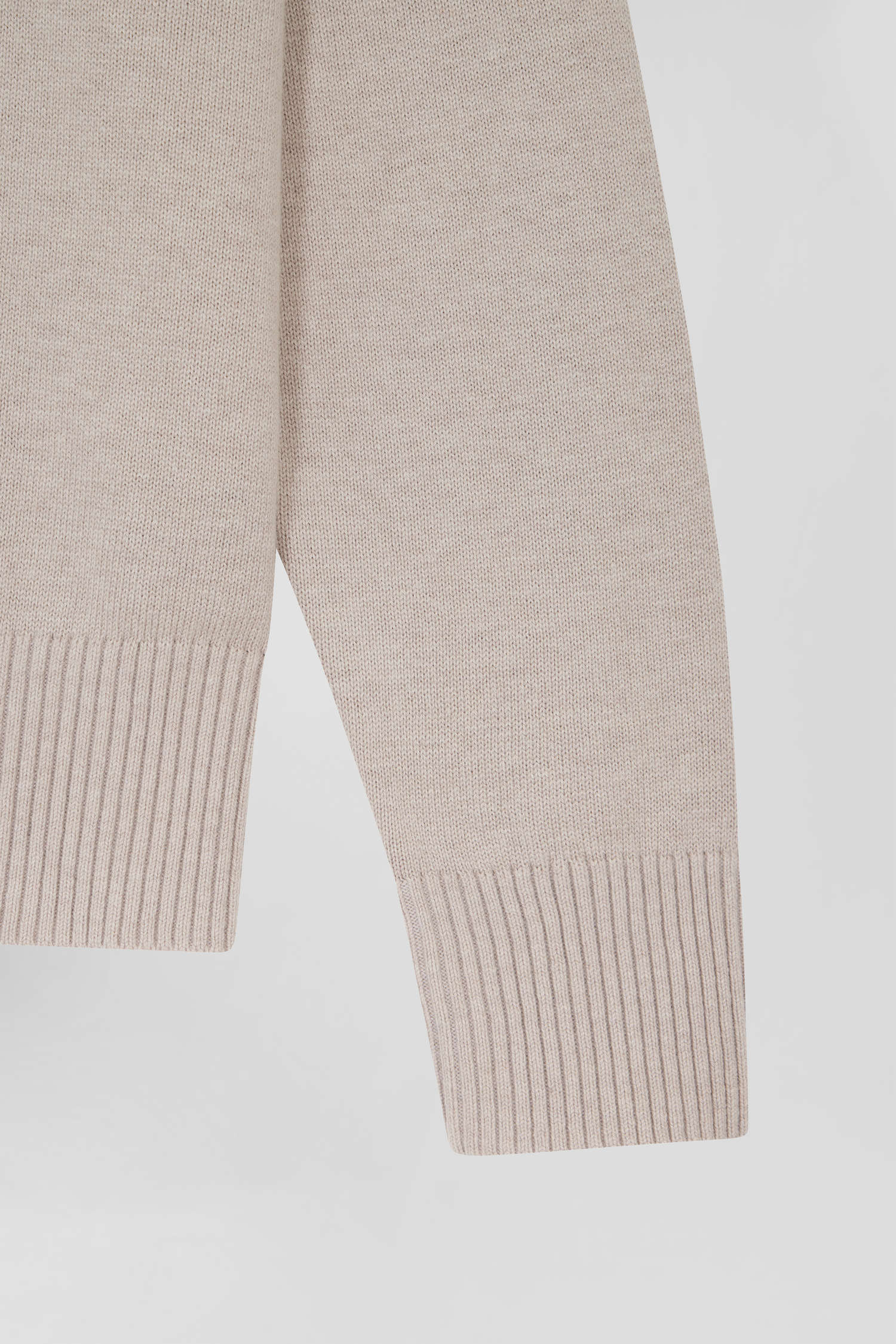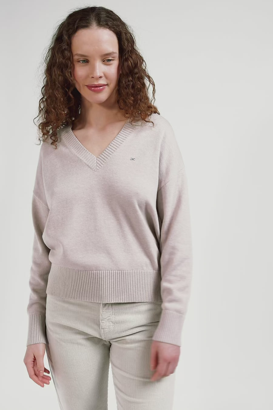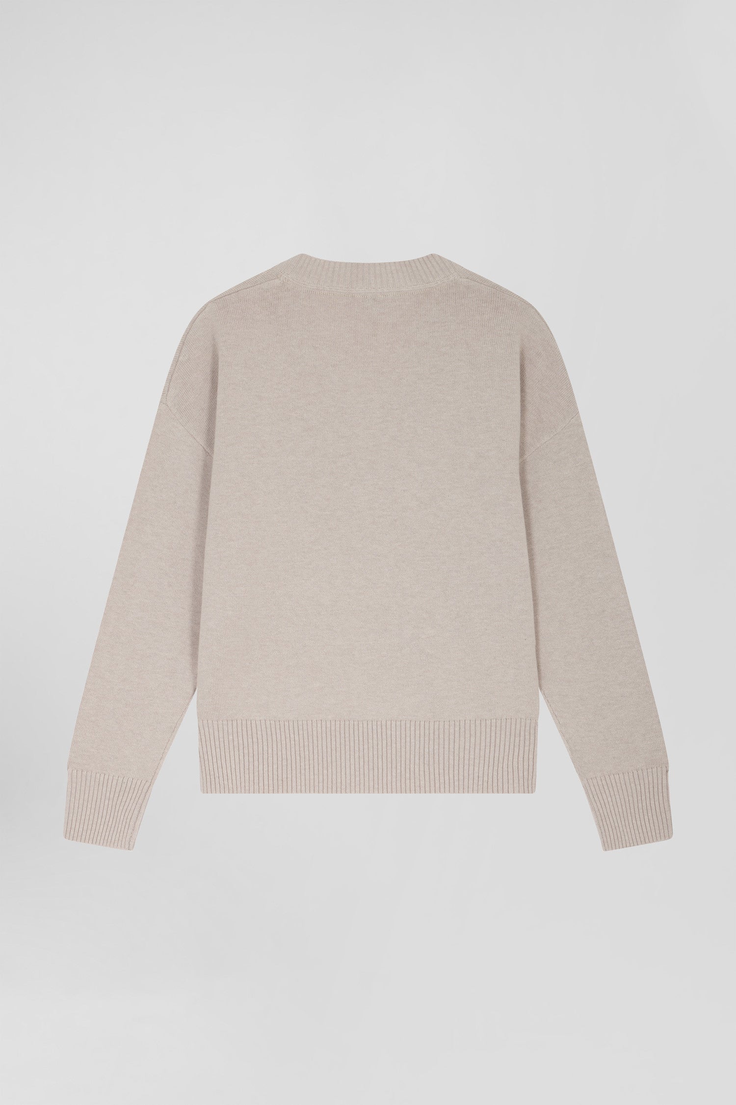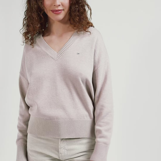 Pull col V en laine et coton beige coupe Relaxed