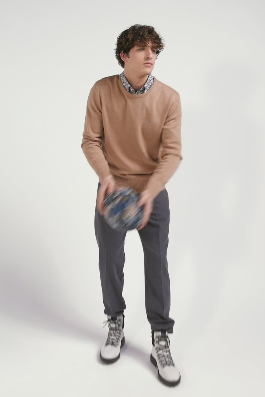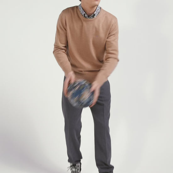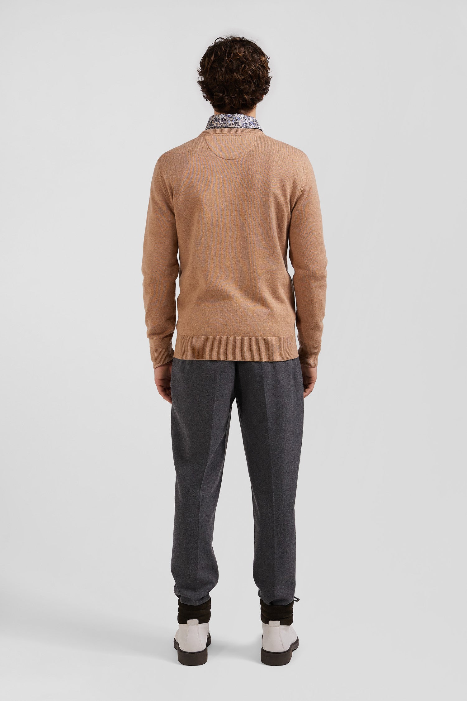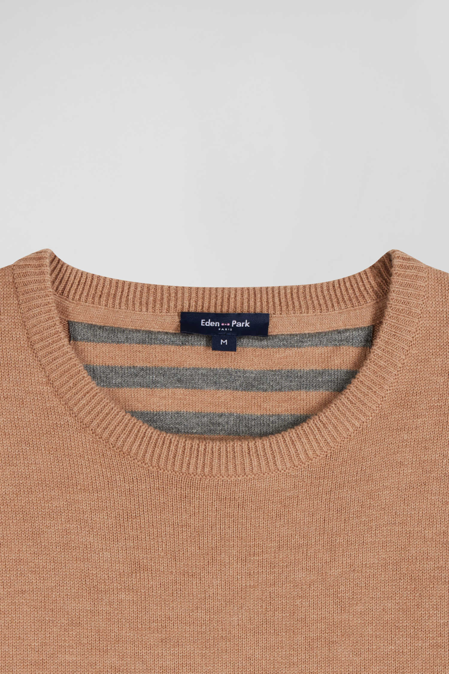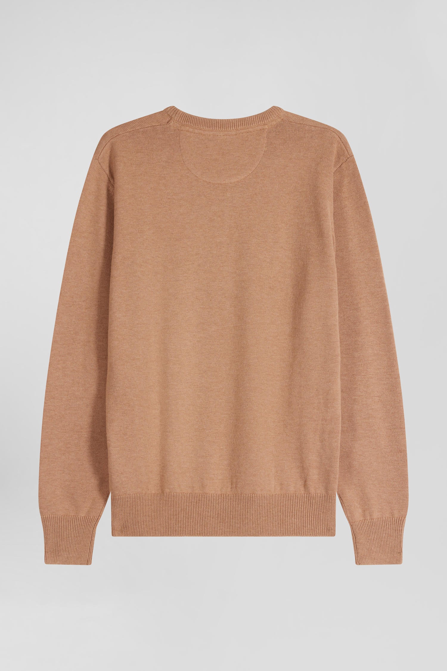 Pull col rond en laine et coton camel coupe Regular