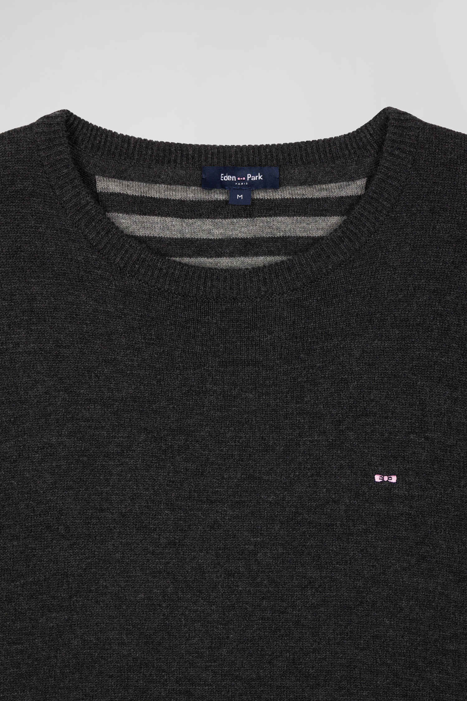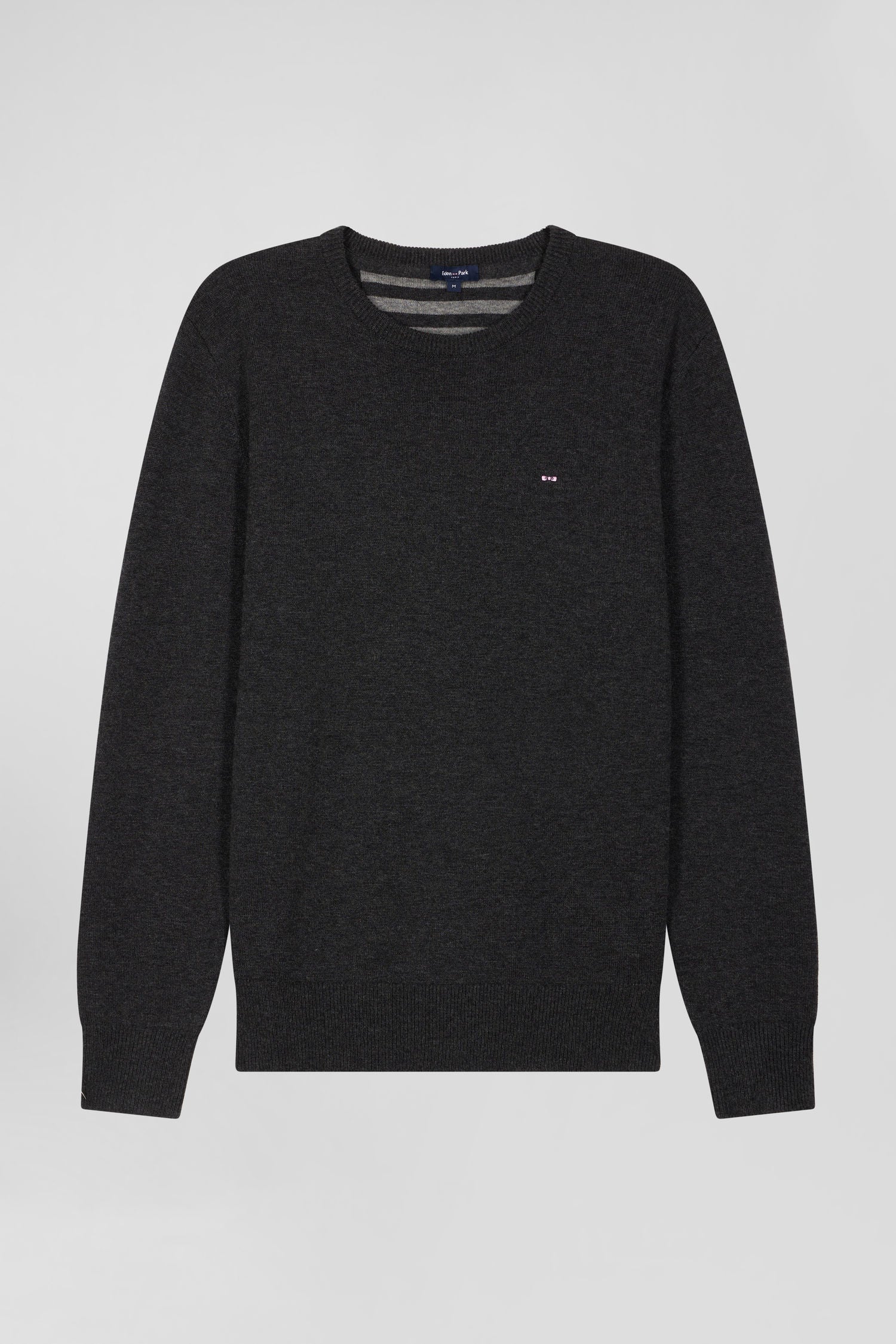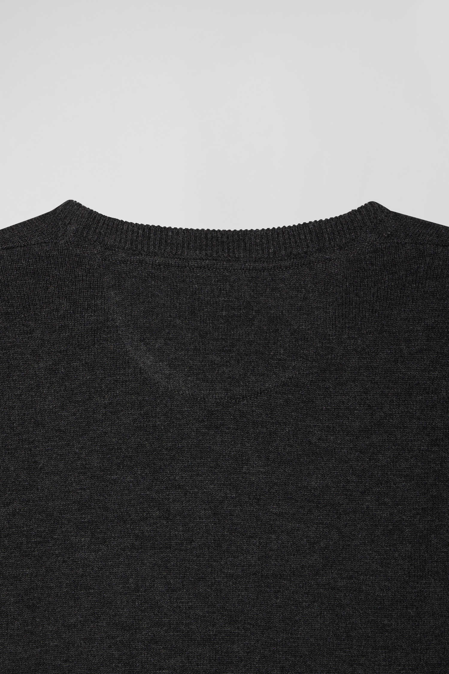 Pull col rond en laine et coton gris anthracite coupe Regular