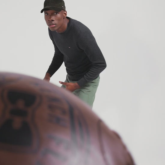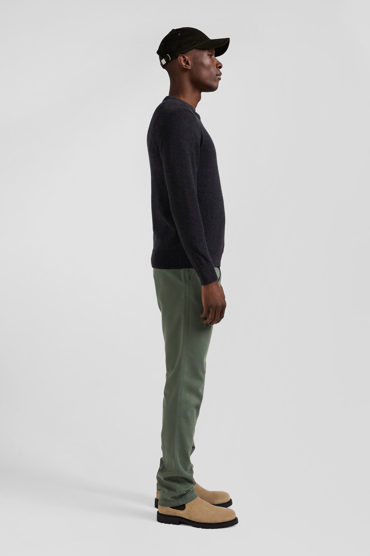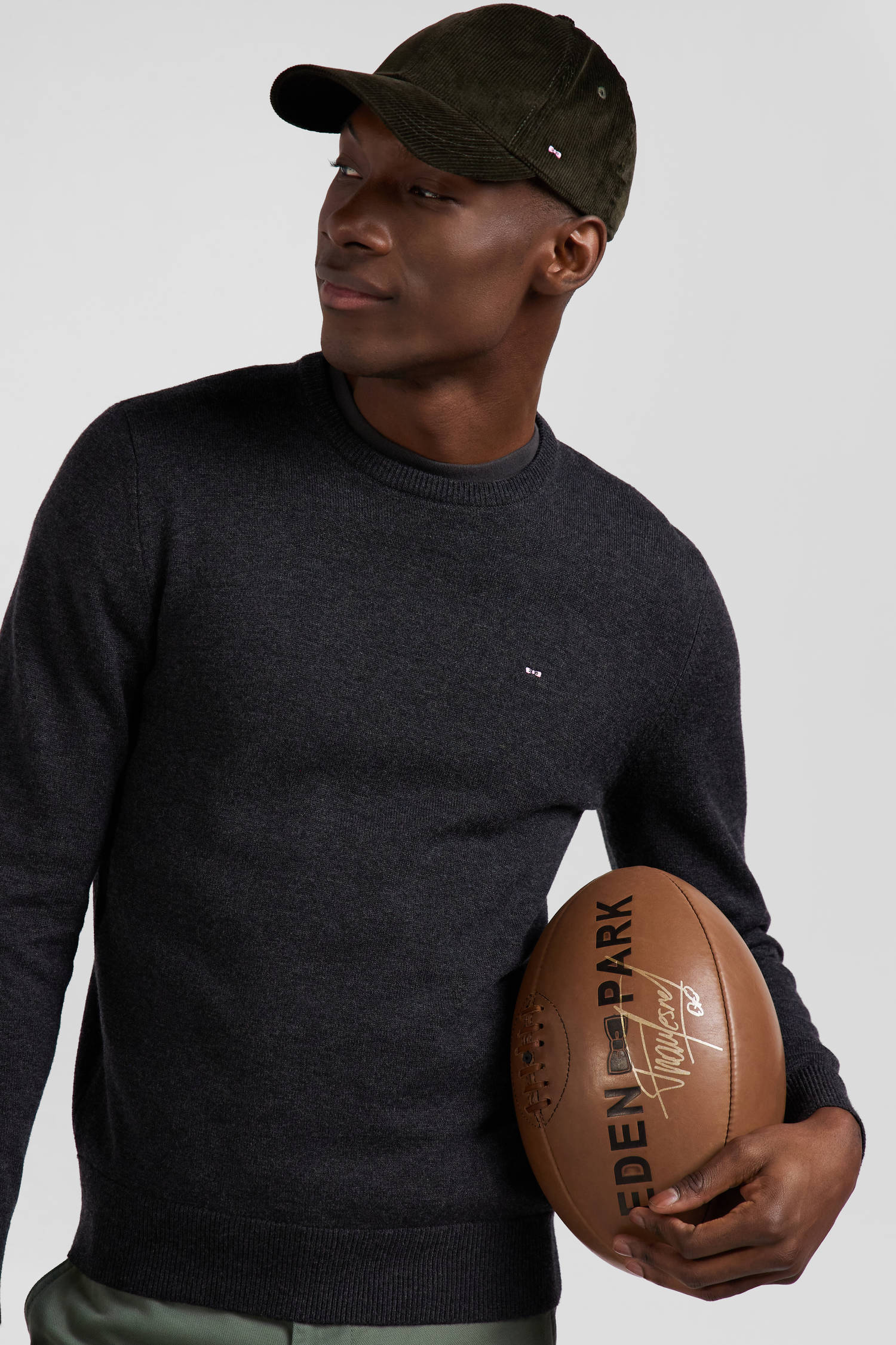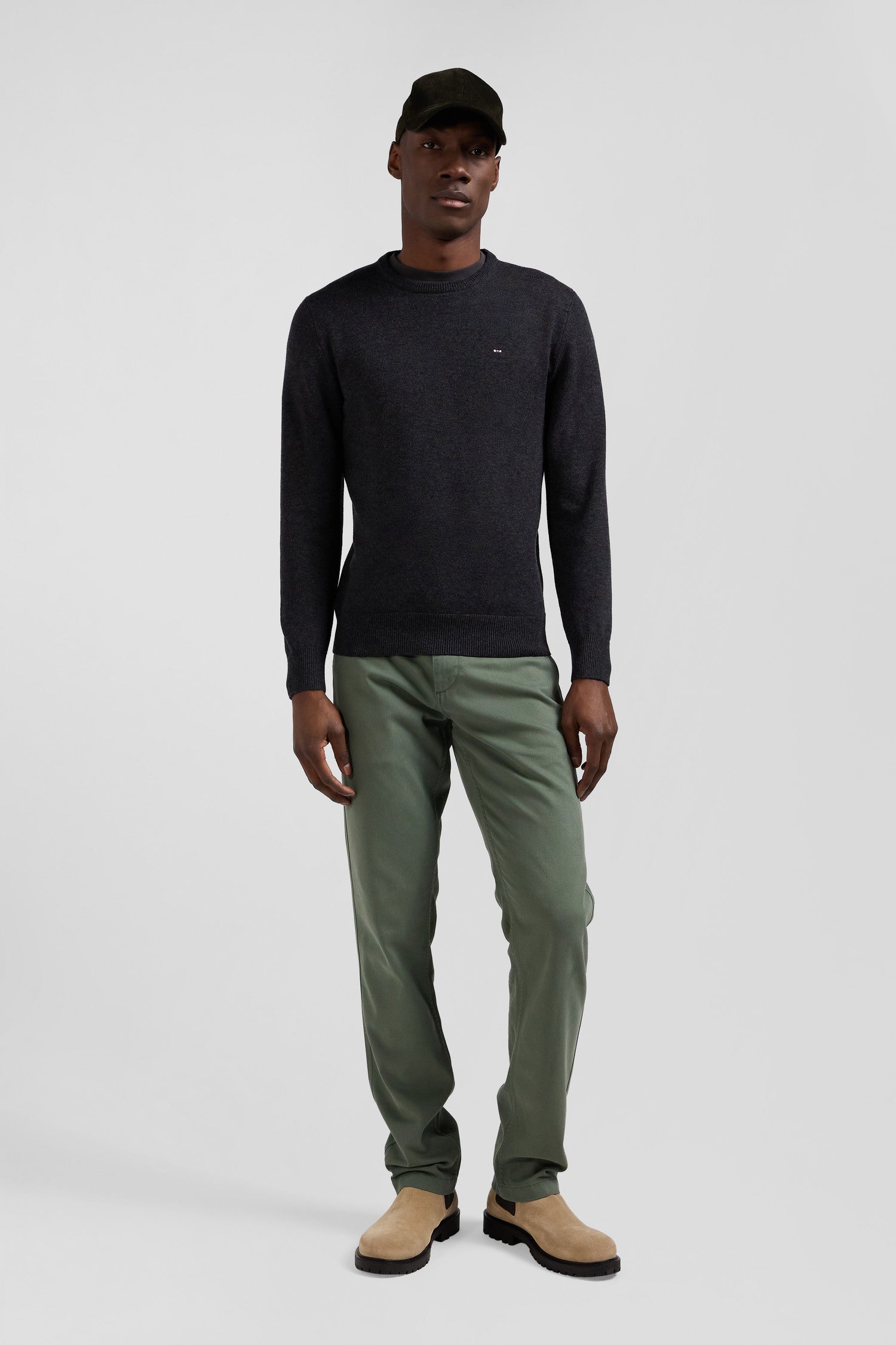 Pull col rond en laine et coton gris anthracite coupe Regular