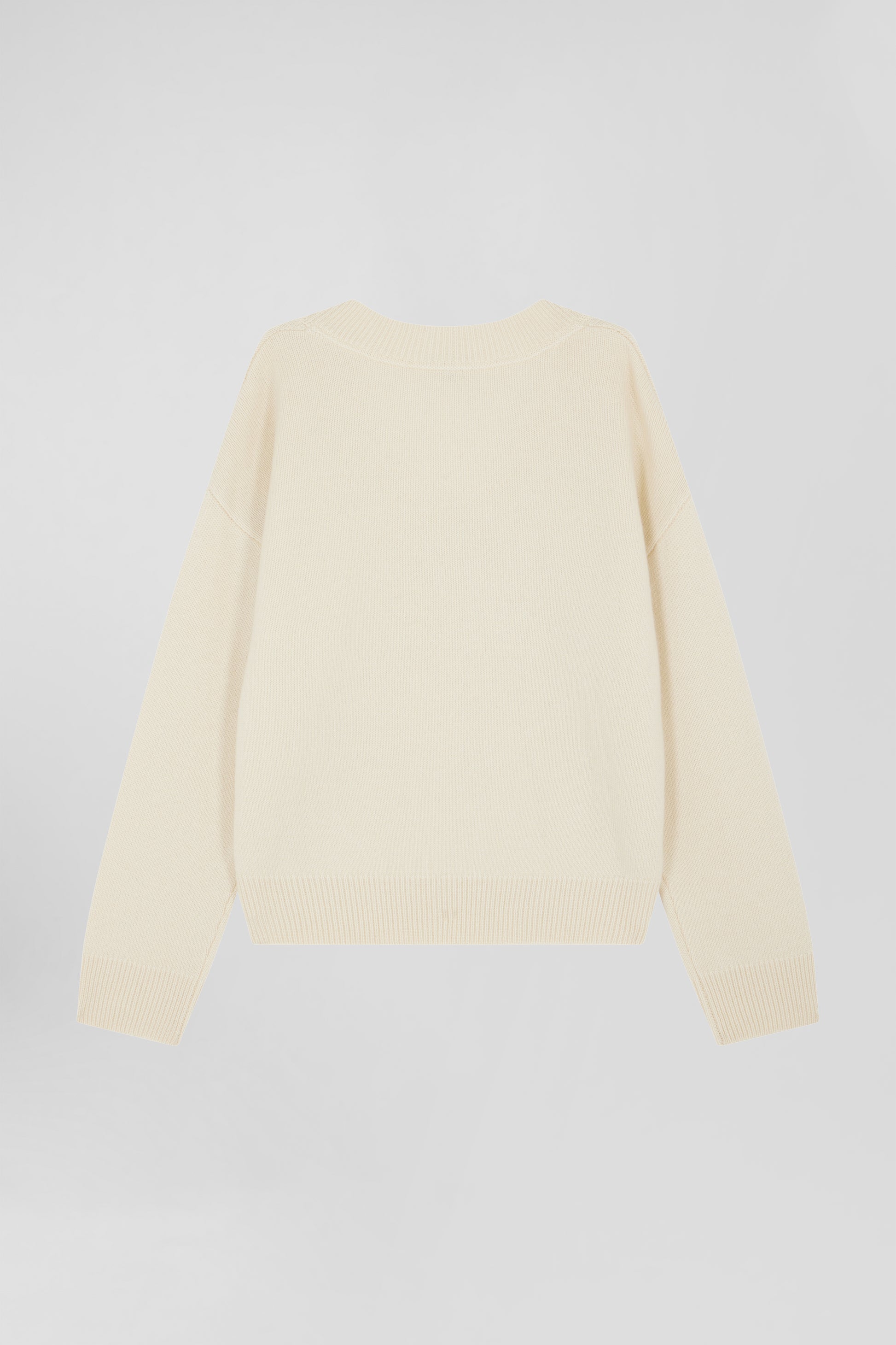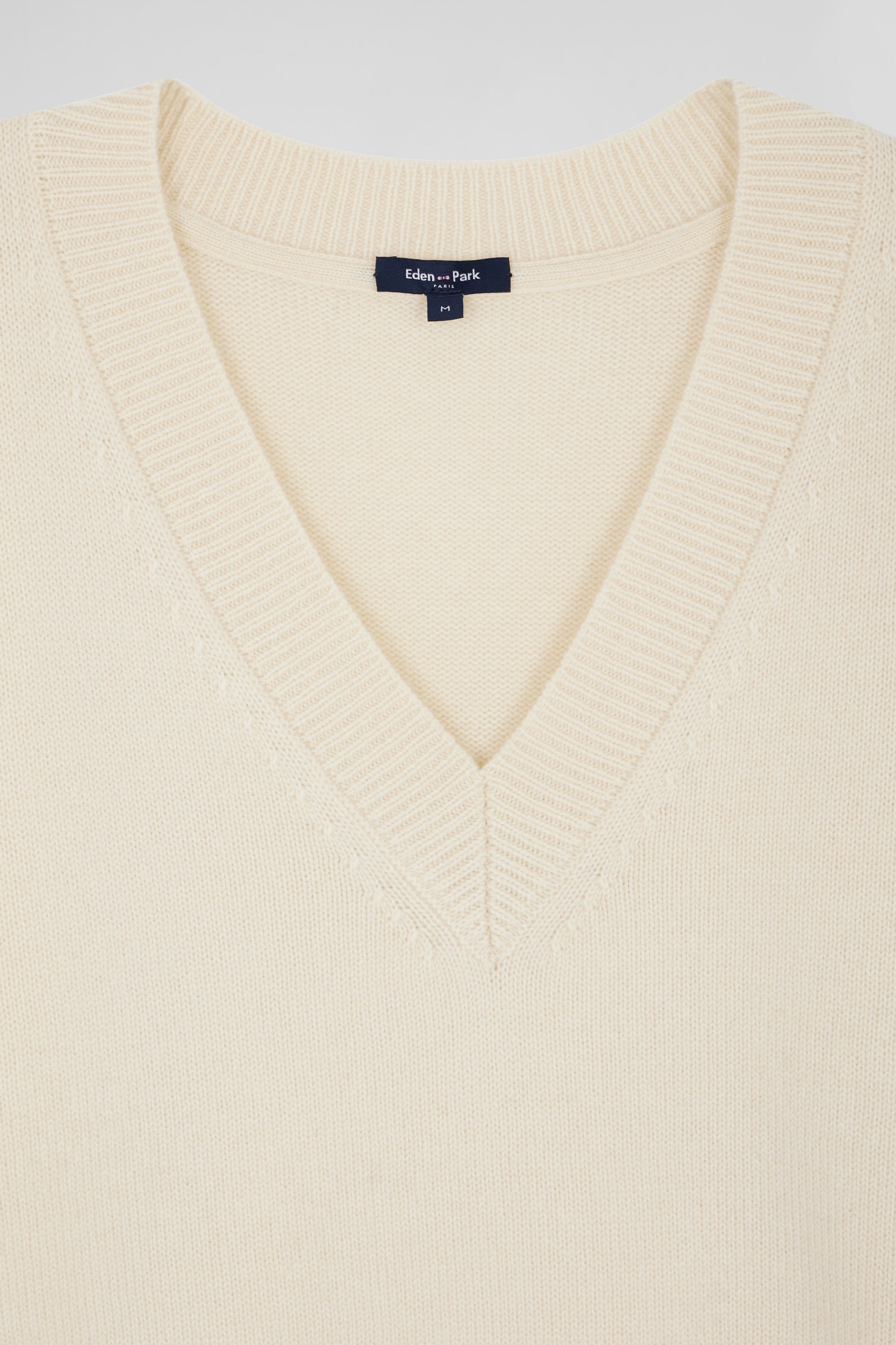 Apportez une touche de chic minimaliste à votre dressing avec ce pull femme écru à col V, l'alliance parfaite entre élégance et confort, fidèle à l’esprit Eden Park. Confectionné en laine et cachemire, il est conçu pour sublimer vos tenues du quotidien tout en assurant un style intemporel. Sa coupe féminine et ses finitions soignées en font une pièce essentielle.