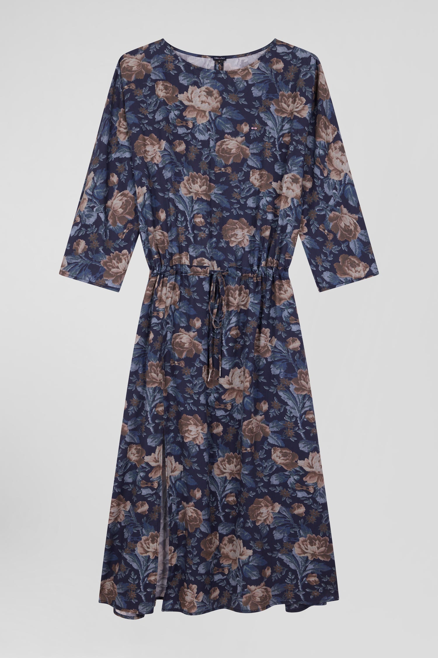 Robe en lyocell bleu marine manches longues à imprimé floral