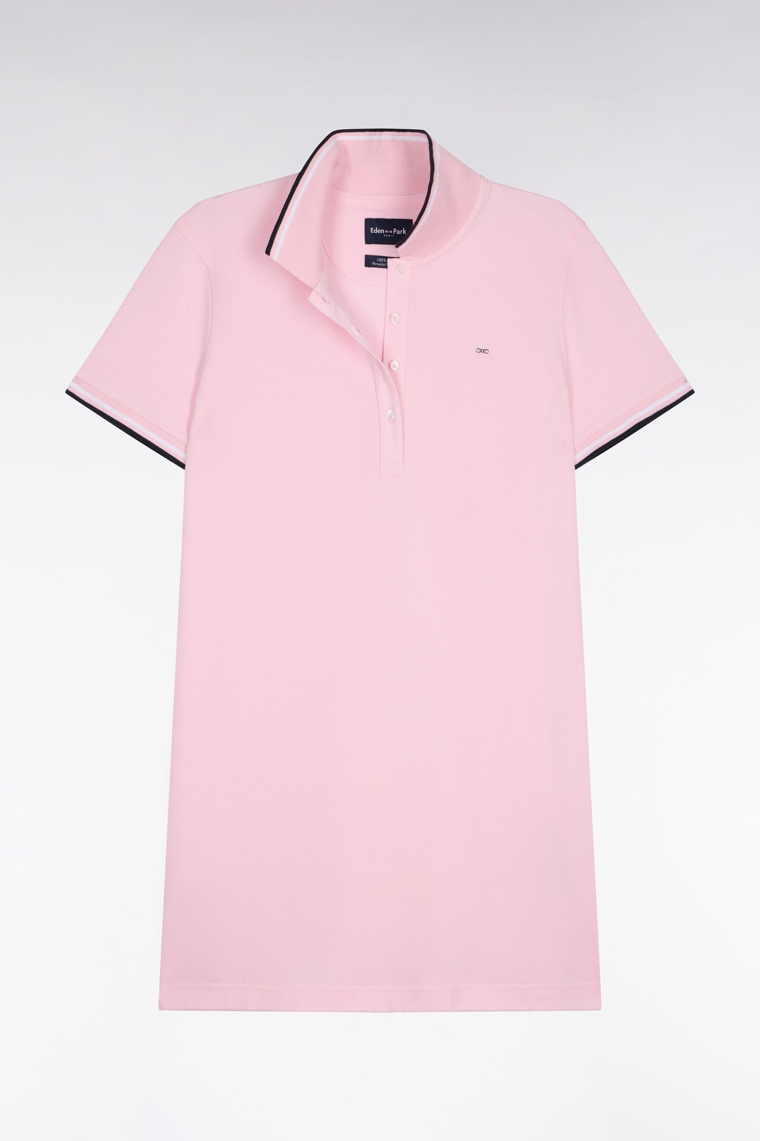 Notre iconique robe polo en pur coton est proposée en marine ou en rose, exemple parfait de l'élégance décontractée propre à nos collections de mode. Ses finitions rayées au col et aux bordures de manches ajoutent une touche sportive et sophistiquée à la fois. Parfaite pour les journées ensoleillées ou les moments de détente, cette pièce légère et confortable s’impose comme un incontournable du vestiaire féminin. À porter avec des baskets blanches ou des sandales pour une allure chic et estivale dans vos moments de détente, de la ville aux vacances. Un bel exemple de la manière dont laquelle le vestiaire sportif de notre Maison s'adapte à toutes les envies.