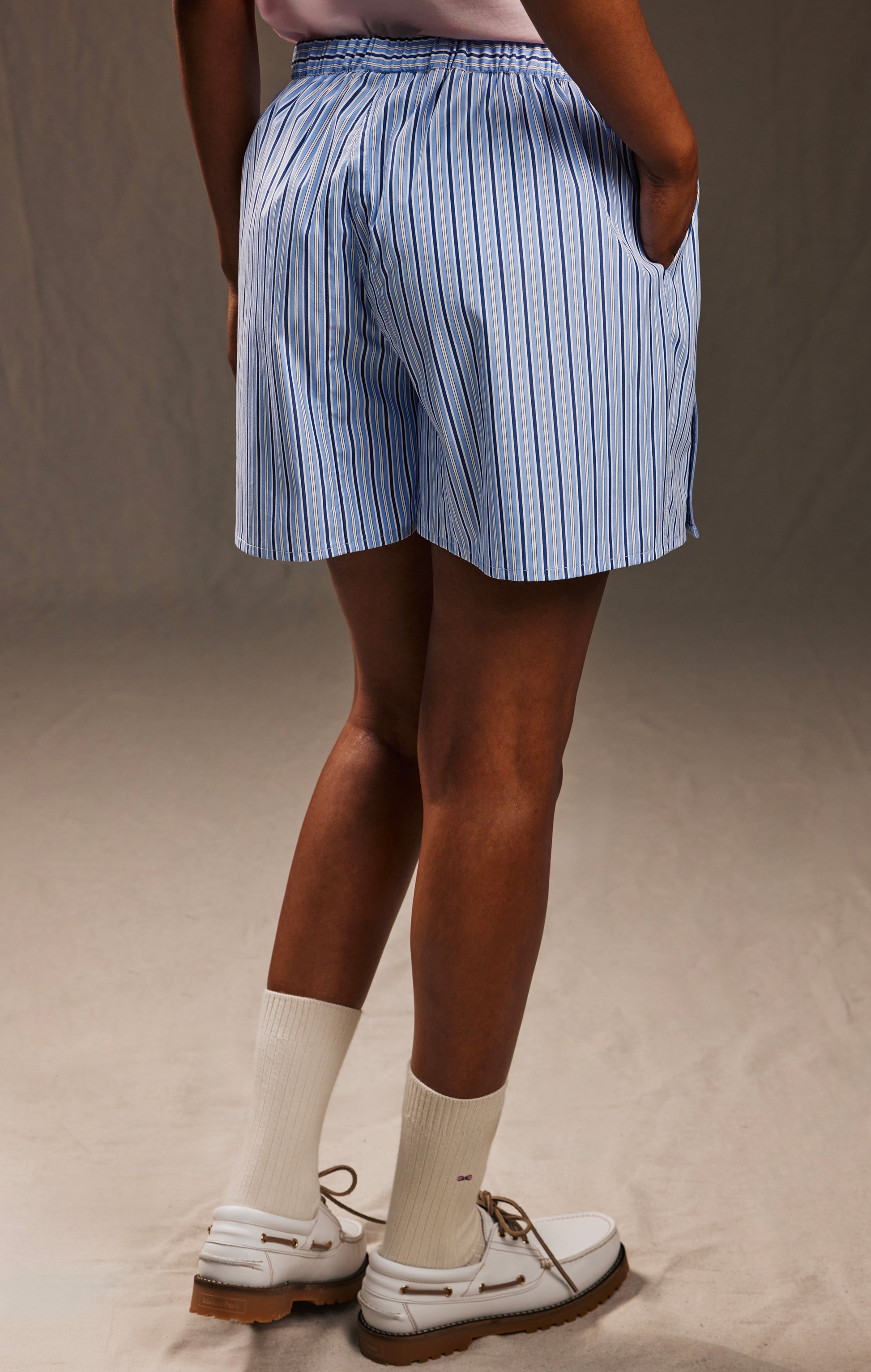 Short upcyclé en coton rayé ciel et blanc Pap'Atelier